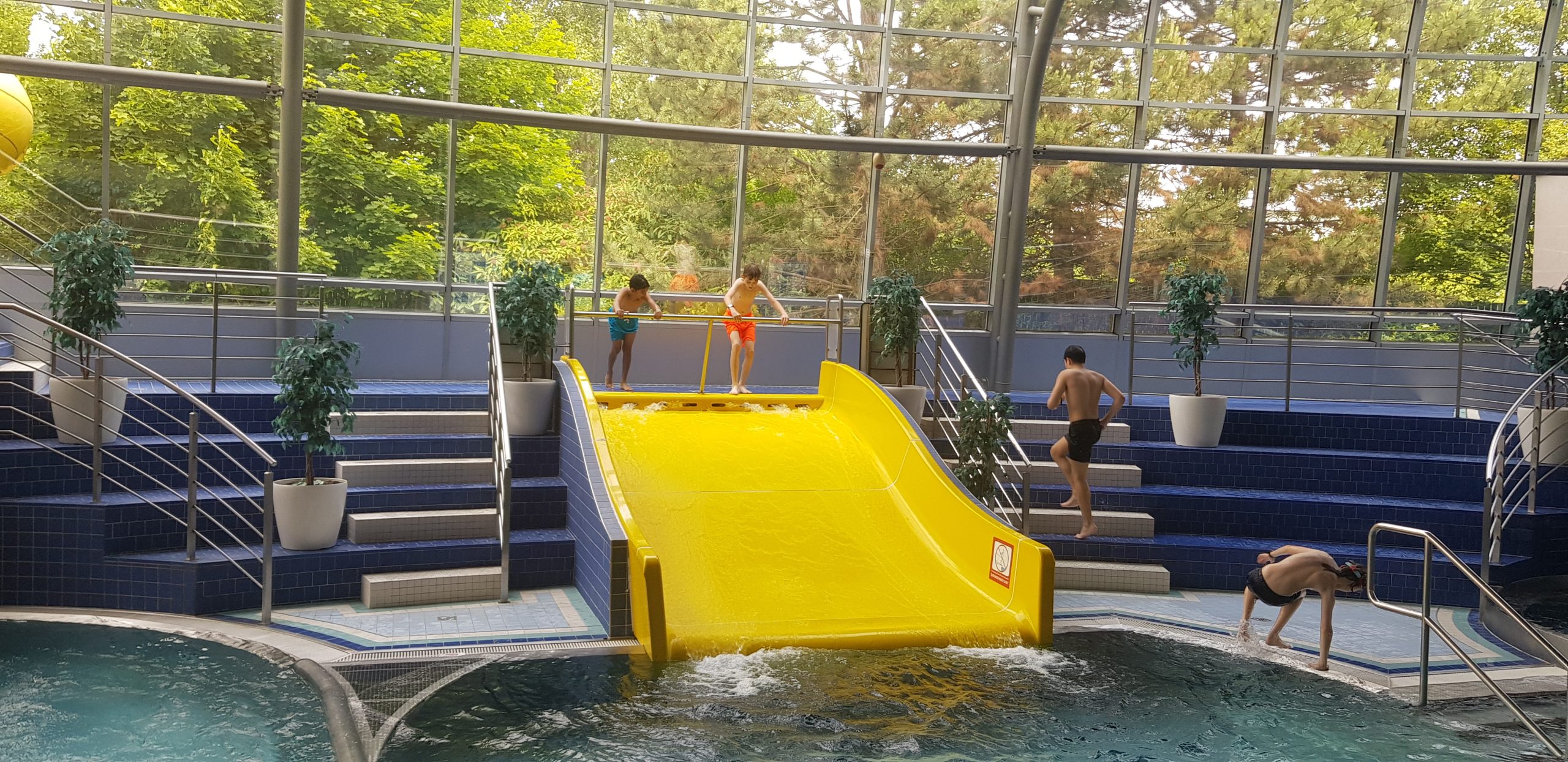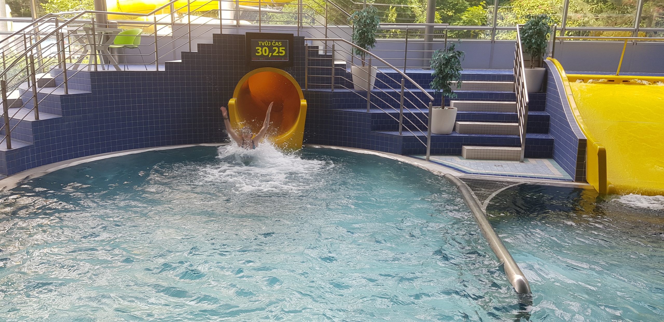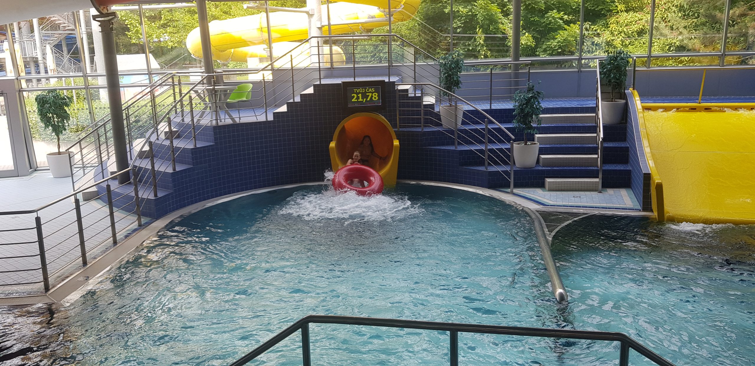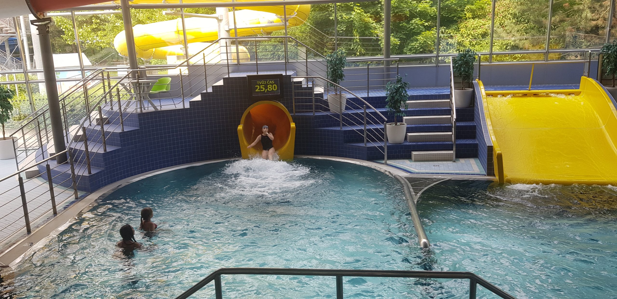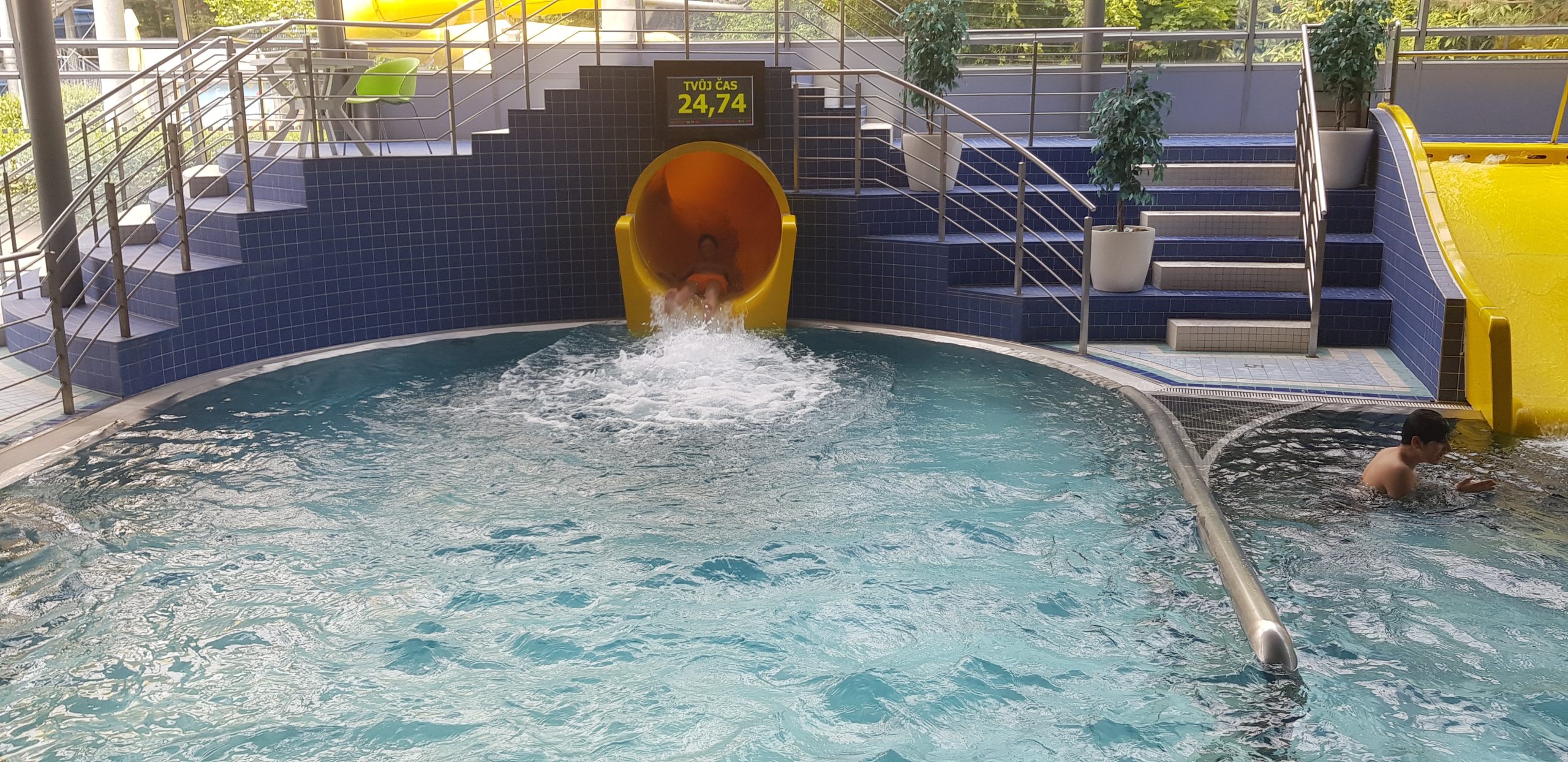 A potom jsme měli čas pro sebe a tak jsme se Šimonem byli na tobogánu a v divoké řece jsme si házeli. A pak jsme porád chodili na tobogán. Harris Waqas.