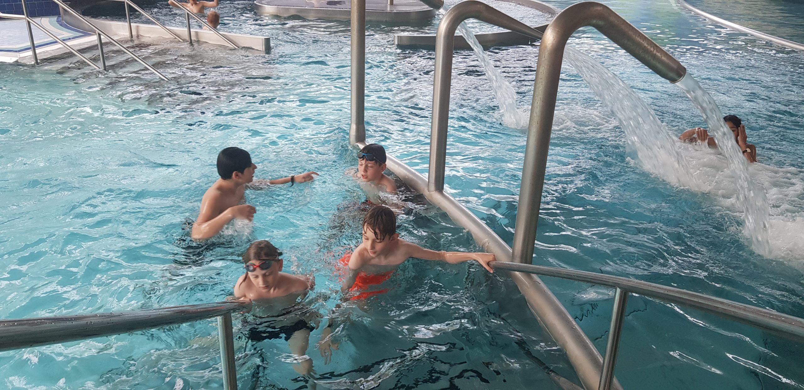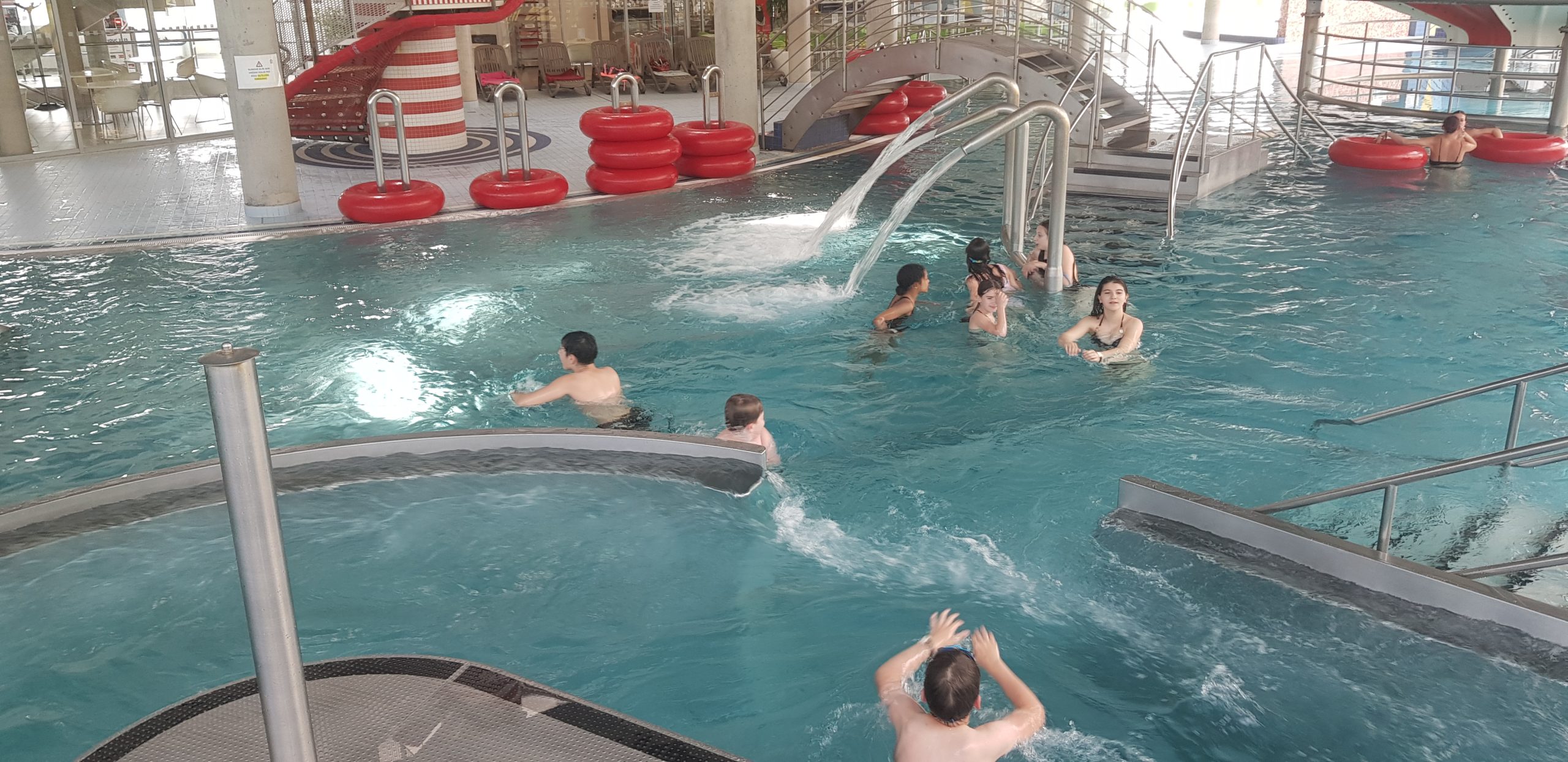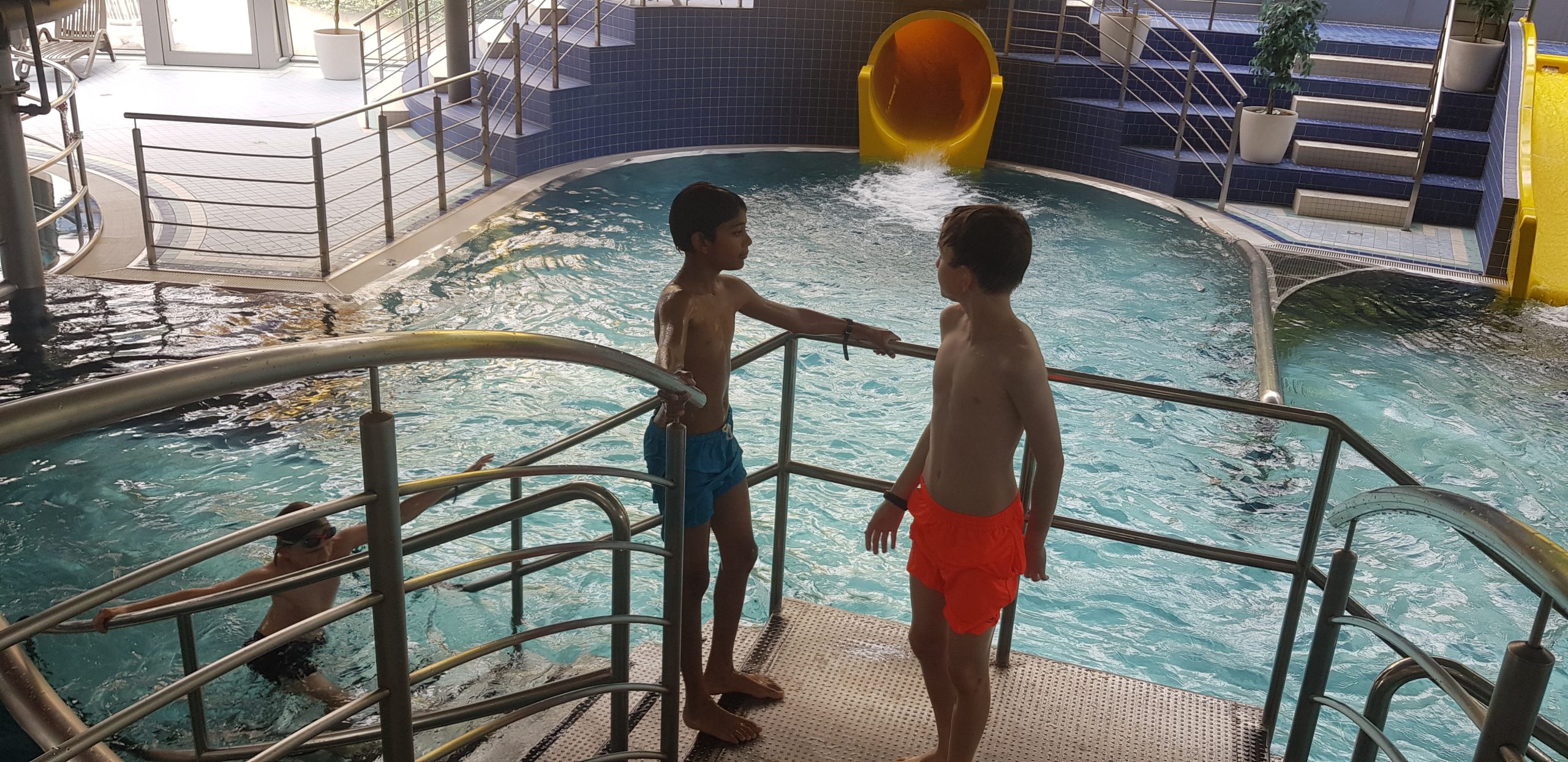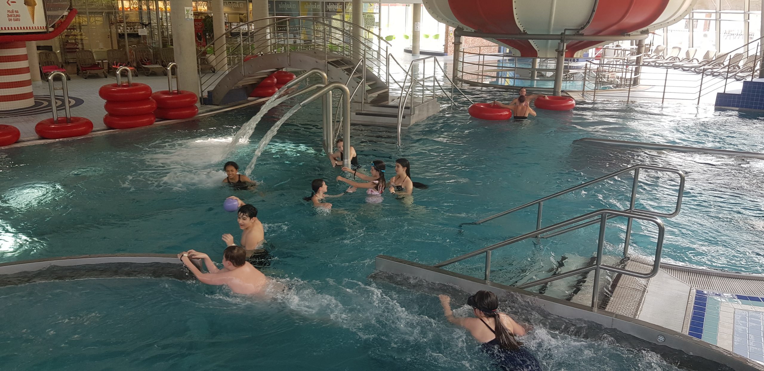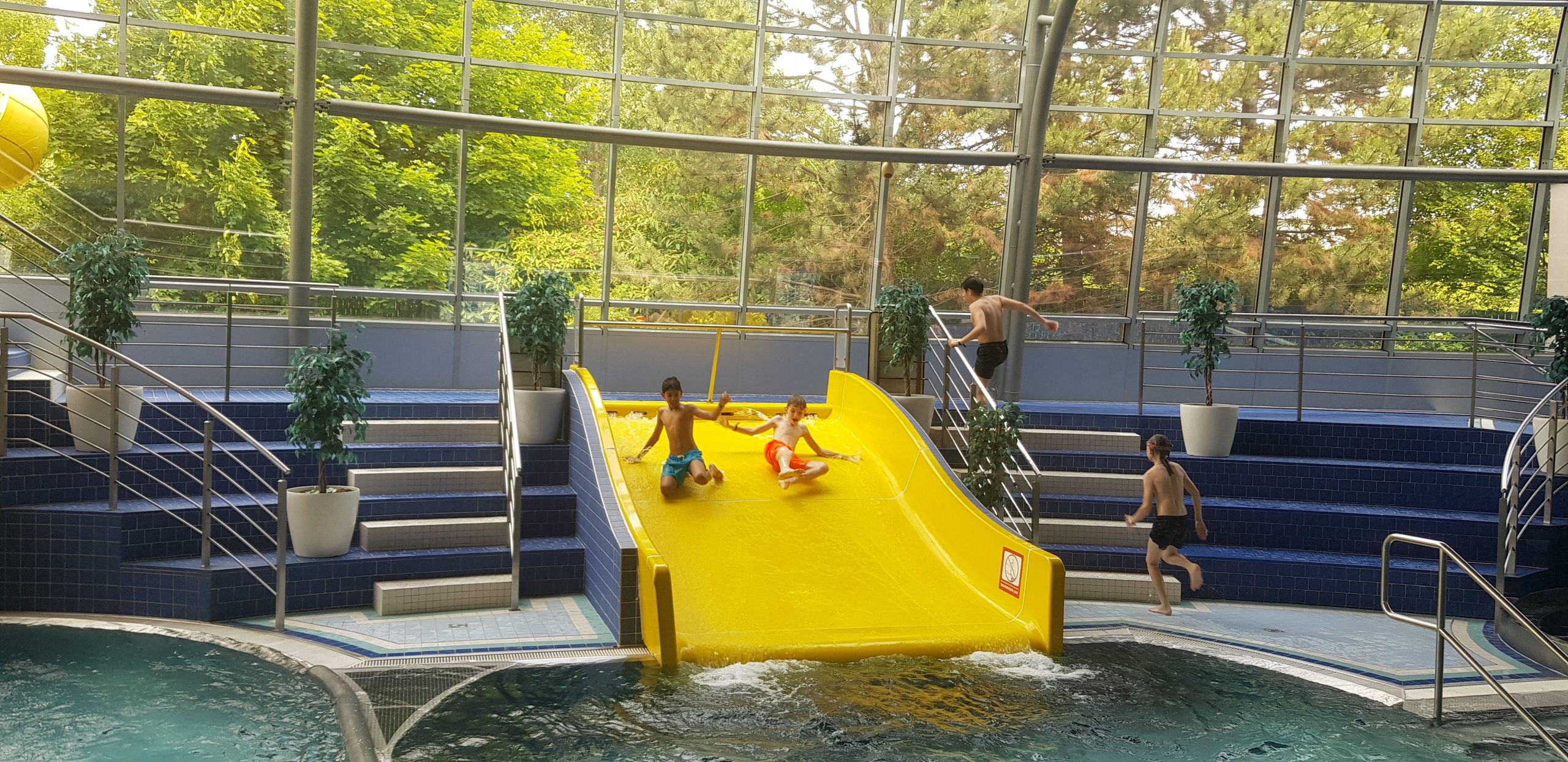 A potom jsme měli čas pro sebe a tak jsme se Šimonem byli na tobogánu a v divoké řece jsme si házeli. A pak jsme porád chodili na tobogán. Harris Waqas.