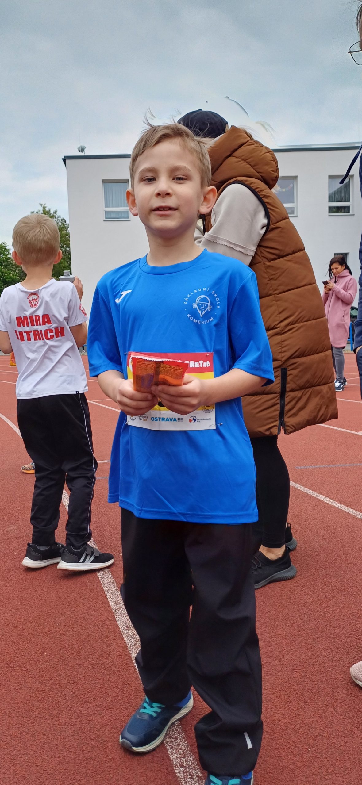 Zvláštní gratulace patří Honzíkovi Klabalovi z 1.C, který ve své kategorii vybojoval stříbrnou medaili a díky skvělému výkonu postoupil do sedmifinále, které se poběží v Ostravě v rámci prestižního mezinárodního mítinku Zlatá tretra. Držíme mu palce!