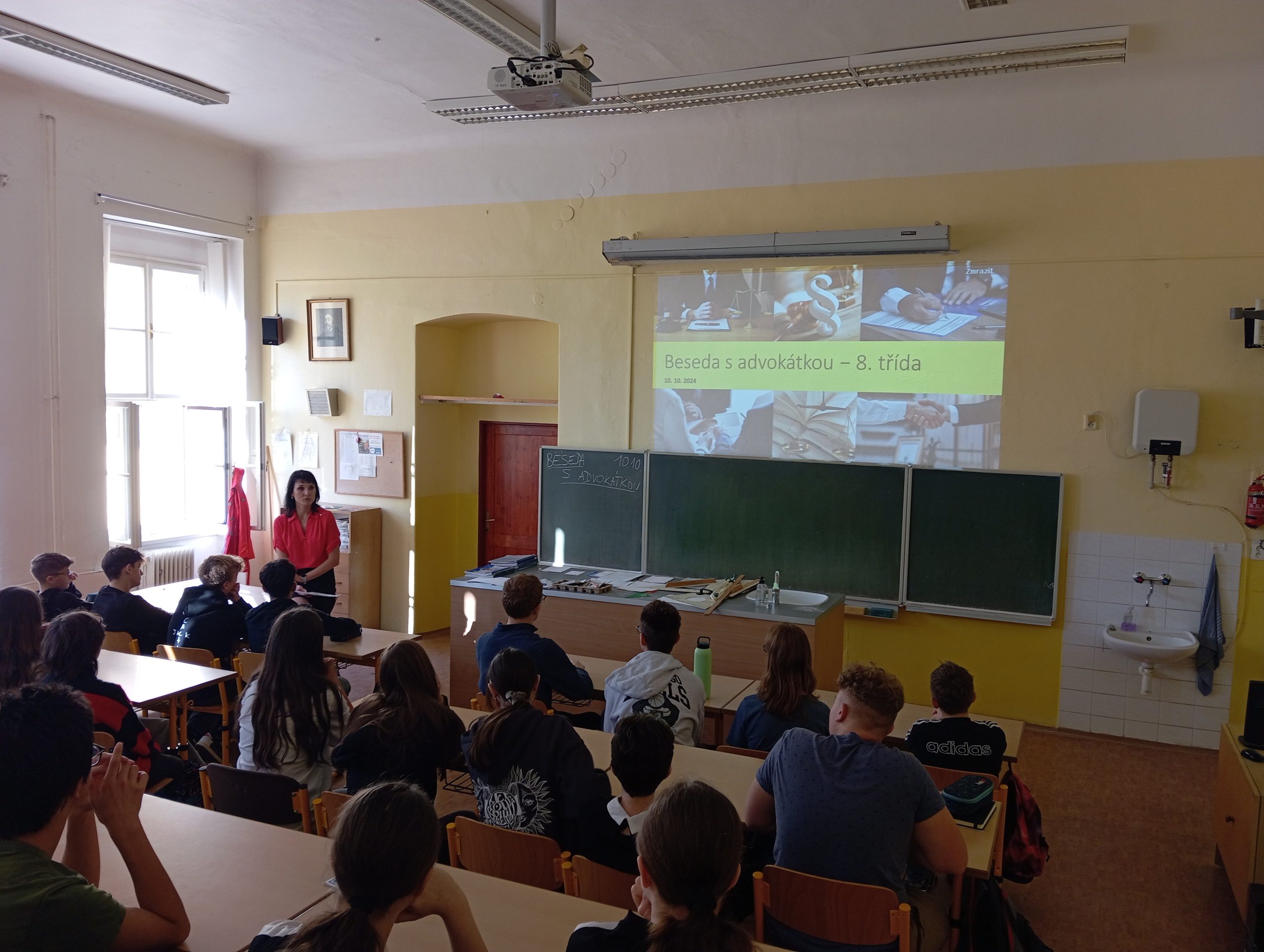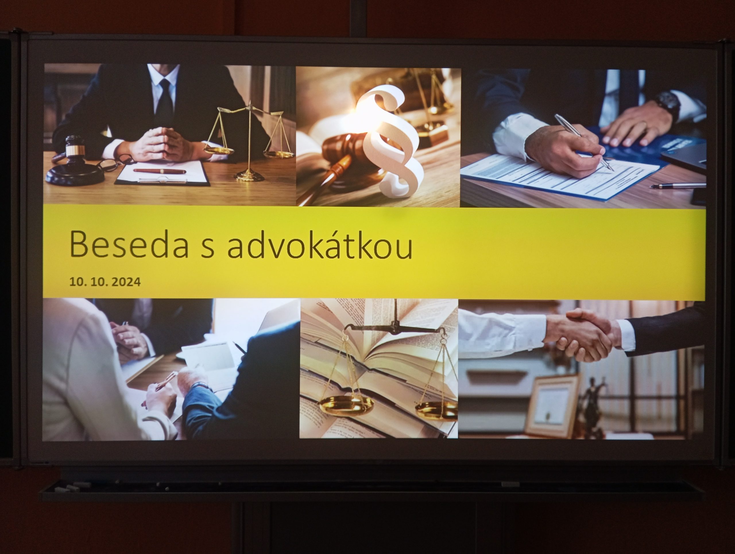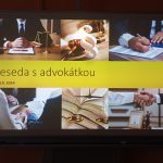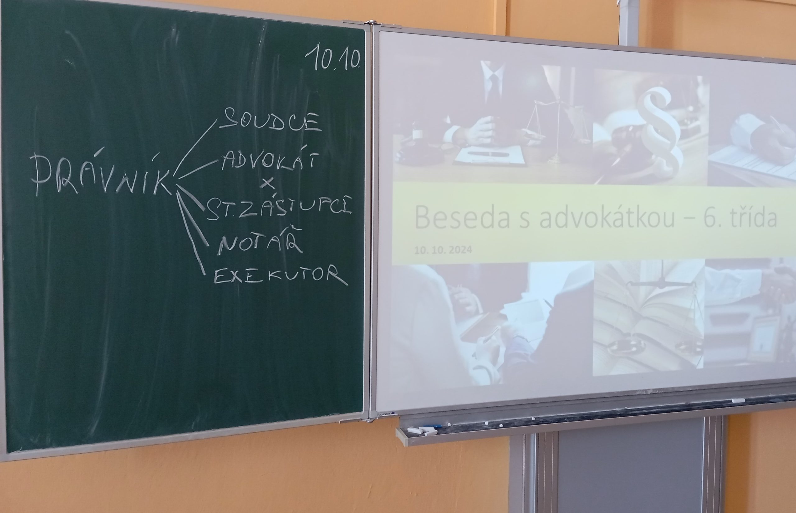 Ve čtvrtek 10. října žáci šestého a osmého ročníku absolvovali díky výchovnému poradci jedinečnou besedu s advokátkou, která má již dlouholetou praxi se specializací na pacientské a trestní právo. V první části se náš host krátce představil, v druhé části pak odpovídal na připravené, ale i improvizované otázky posluchačů. Žáky zaujalo například to, že povolání právníka a advokáta neznamená totéž. Na základě kuriózních příkladů ze soudní síně si připomněli, jakou mají občané České republiky trestní odpovědnost a že je důležité řídit se právními normami, které ovlivňují život všech. Beseda sloužila také jako setkání s odborníkem z praxe, protože někteří žáci začali zvažovat, že by se jednou mohli stát právníky. Děkujeme za skvělý zážitek.