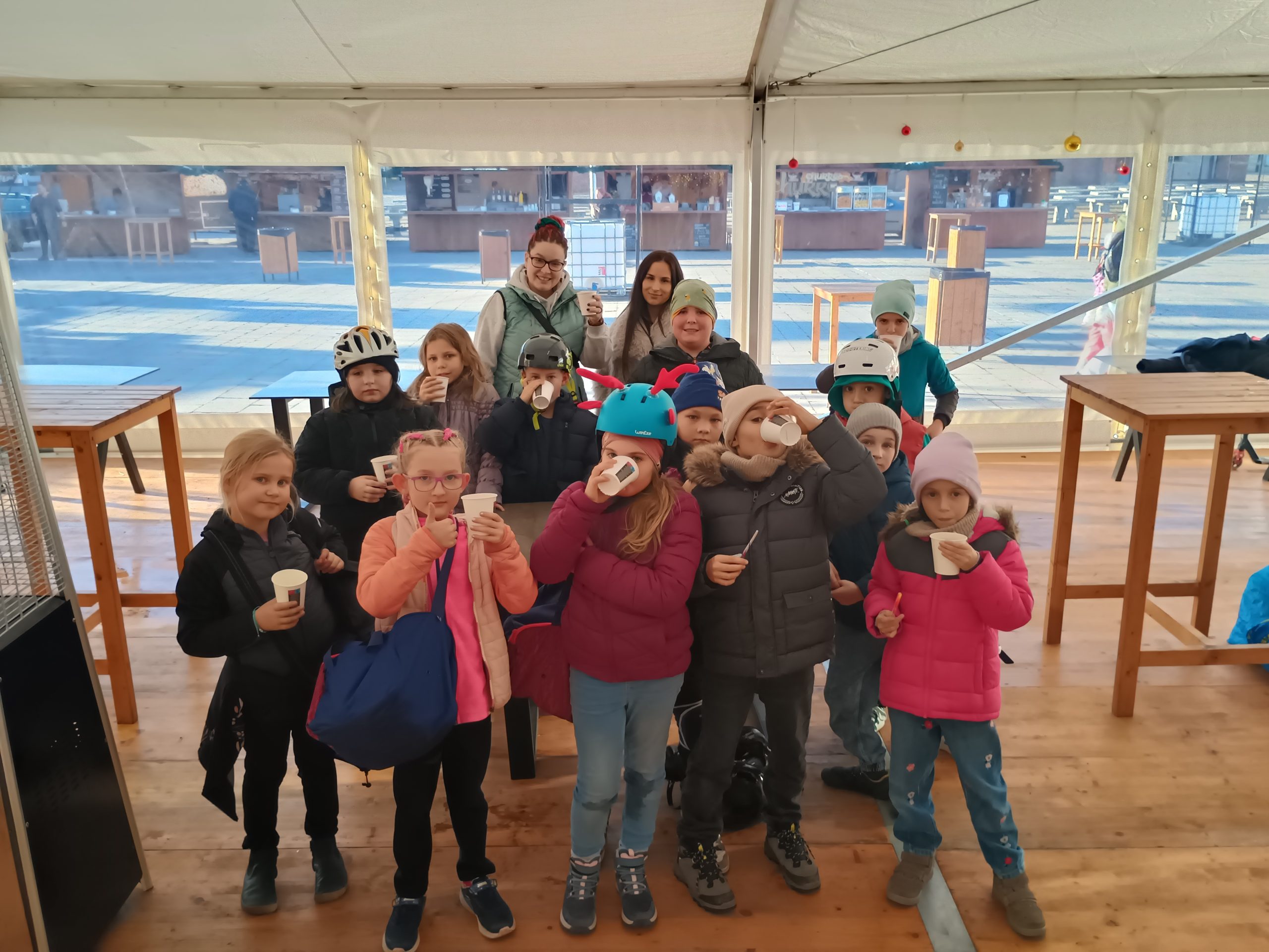 Společně jsme si užili spoustu zábavy a blbinek na ledě a pak, po tak náročném odpoledni jsme si vždy po cestě zpět dali dětský punč na zahřátí. Po zahájení Vánočních trhů na náměstí jsme chodili podpořit různé organizace na Dopropunč.