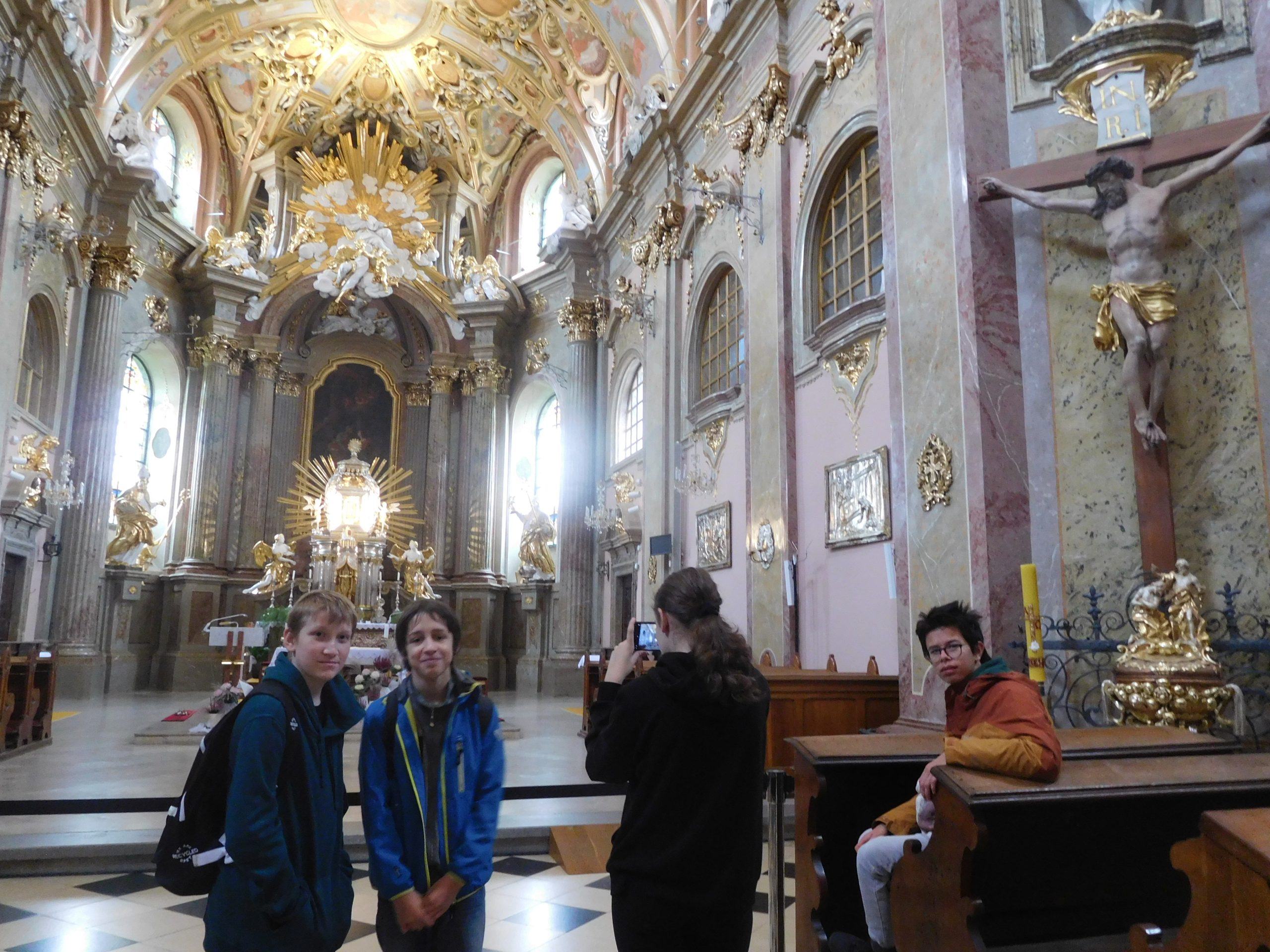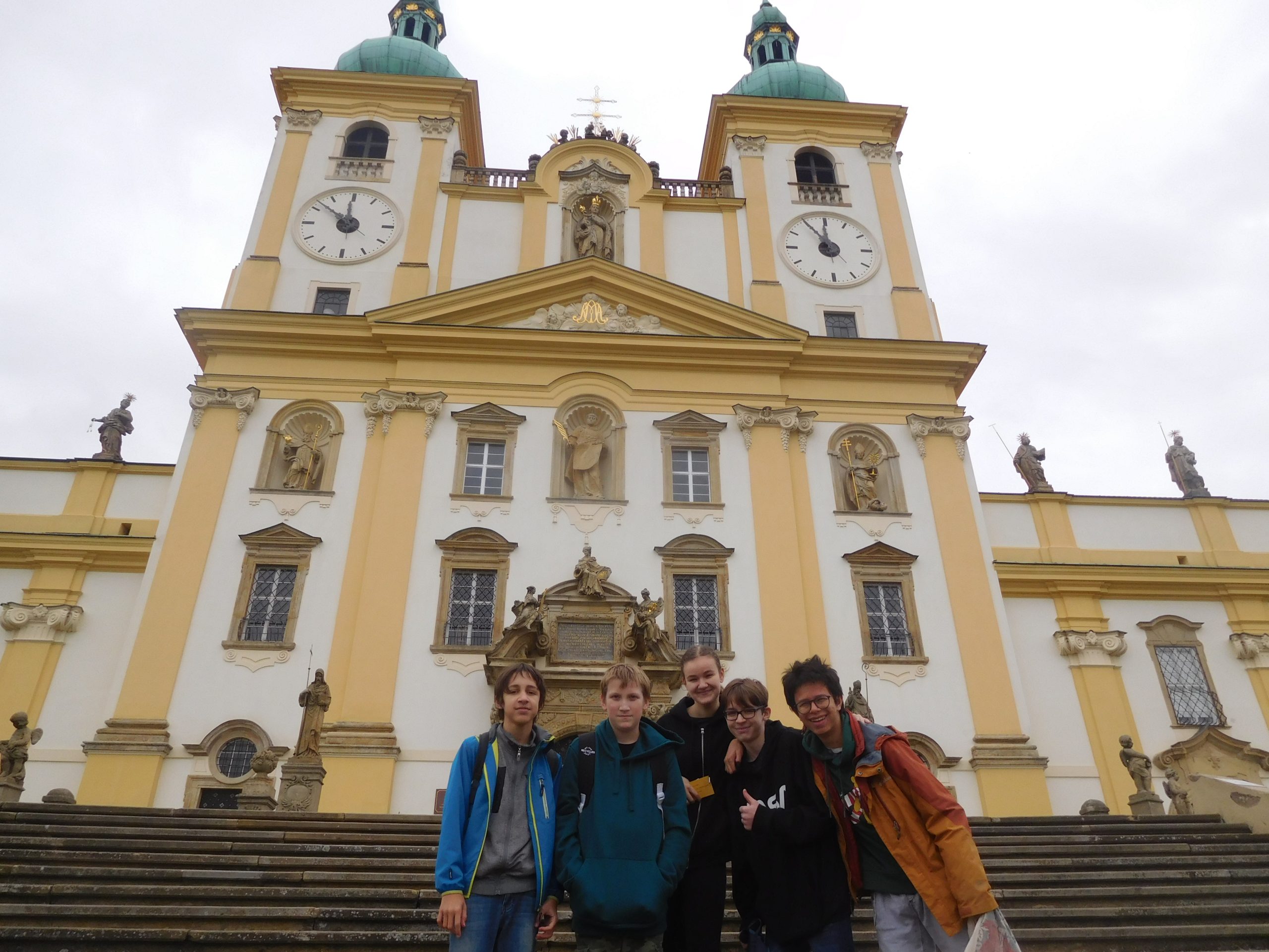 Je státní svátek 28. října, následují podzimní prázdniny a ti členové dějepisného kroužku, kteří nikam neodjeli a chtěli prožít zajímavé dopoledne, se spolu s paní učitelkou Radkou Kašparovou vydali na blízký Svatý Kopeček, kde si prohlédli barokní prostory baziliky a navštívili Svatokopecké muzeum. Ujala se nás výborná paní průvodkyně, vše nám velmi poutavě vysvětlila a ukázala. Odjížděli jsme plni zajímavých zážitků a nových poznatků. Tento sváteční den se nám opravdu vydařil.