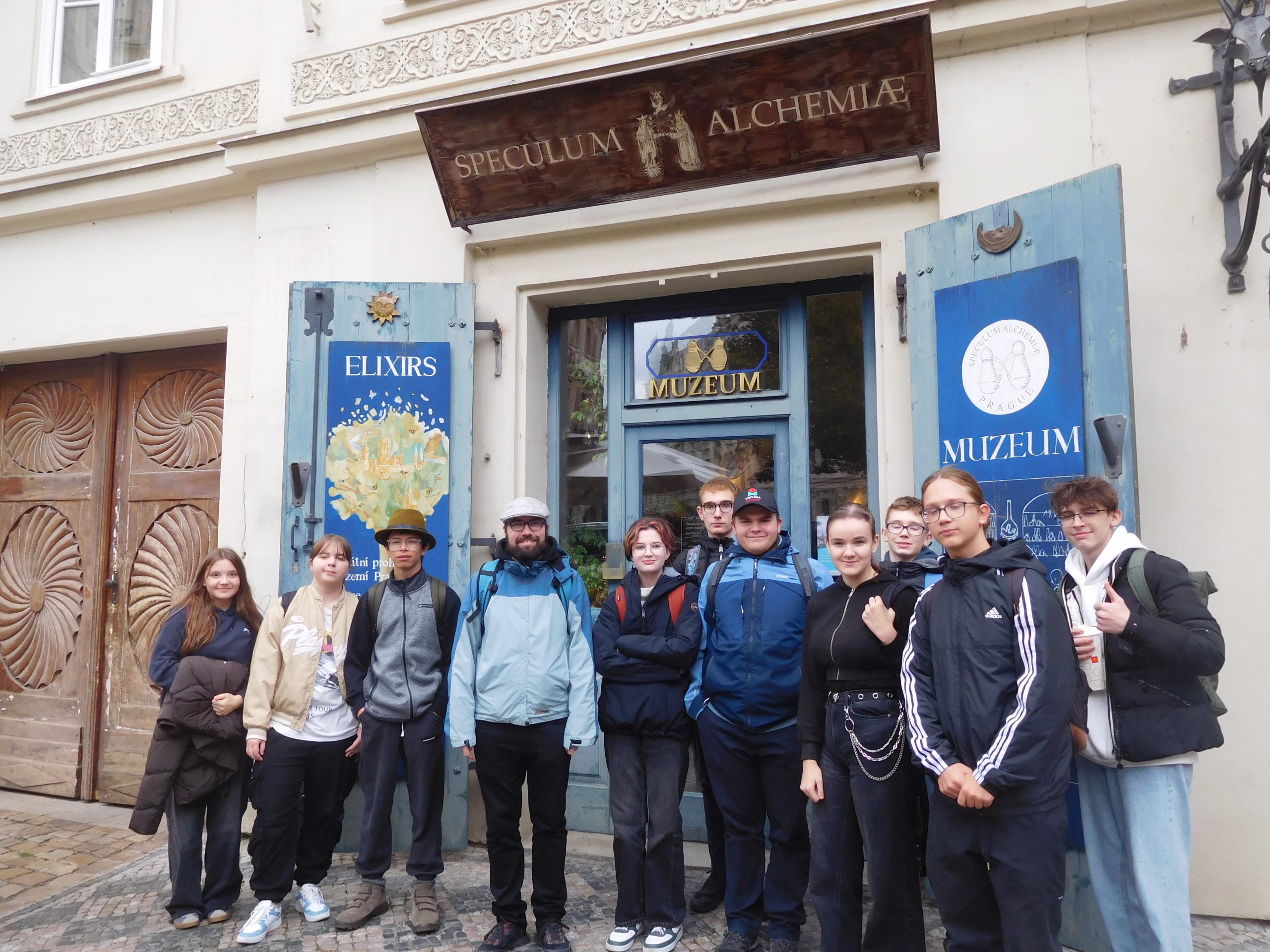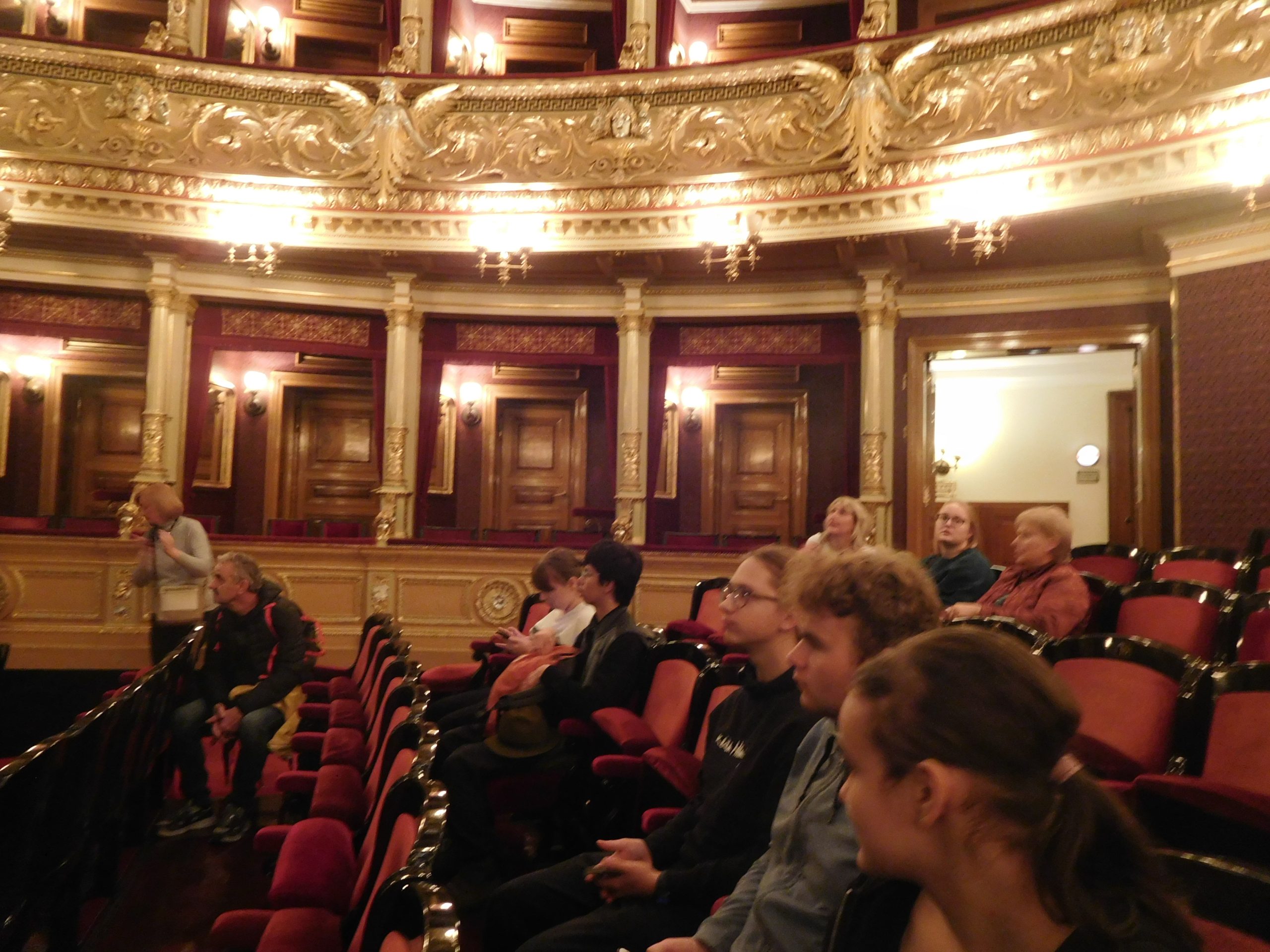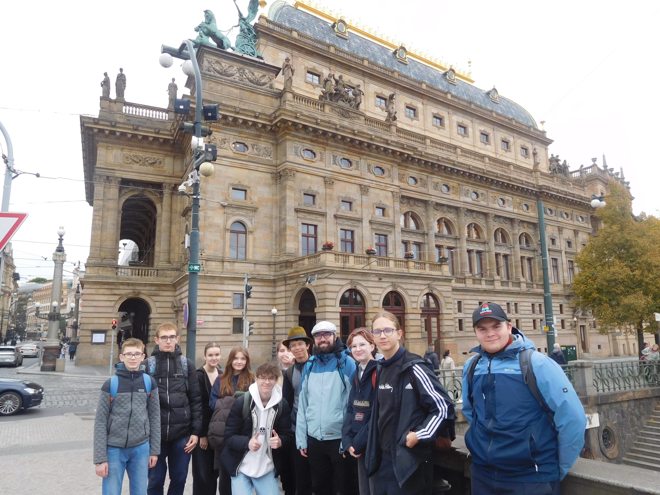 V sobotu 11. října již podruhé zavítal náš dějepisný kroužek do Prahy. Poprvé to bylo v květnu, kdy jsme se prošli po Královské cestě až na Pražský hrad a prohlédli si všechno kolem ní. I tentokrát jsme si naplánovali atraktivní program. Nejprve jsme se přes „Václavák“ vydali na Karlovo náměstí a tady si prohlédli Novoměstskou radnici a v Resslově ulici si u kostela Cyrila a Metoděje připomněli události spojené se smrtí atentátníků na Reinharda Heydricha. Pak už nás čekala komentovaná prohlídka interiérů Národního divadla. A byla úžasná! Neméně zajímavá byla i výstava z doby vlády císaře Rudolfa II. „Speculum alchymiae“ ve sklepení středověkého domu, kde byla po povodních 2002 náhodně nalezena alchymistická dílna. Nakonec jsme si nechali budovu České národní banky, kde je instalována výstava Lidé a peníze. Domů jsme si odvezli mnoho zážitků a nových poznatků. Sobotní výlet jsme si náležitě všichni užili!