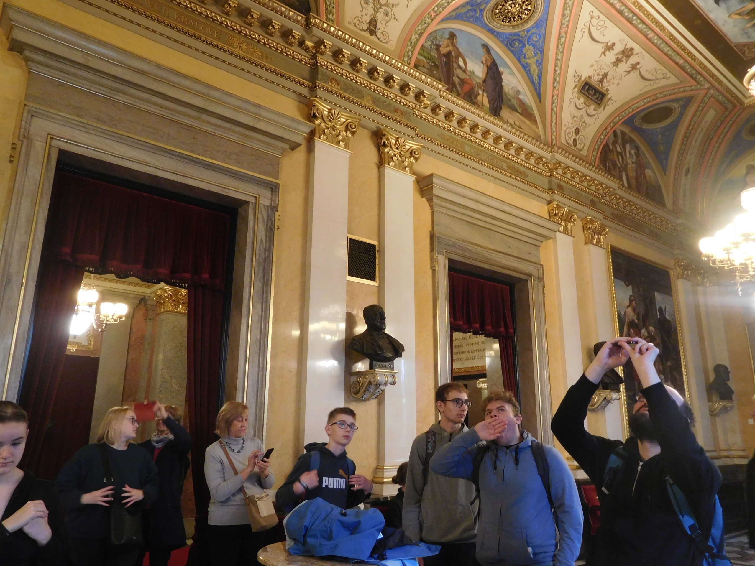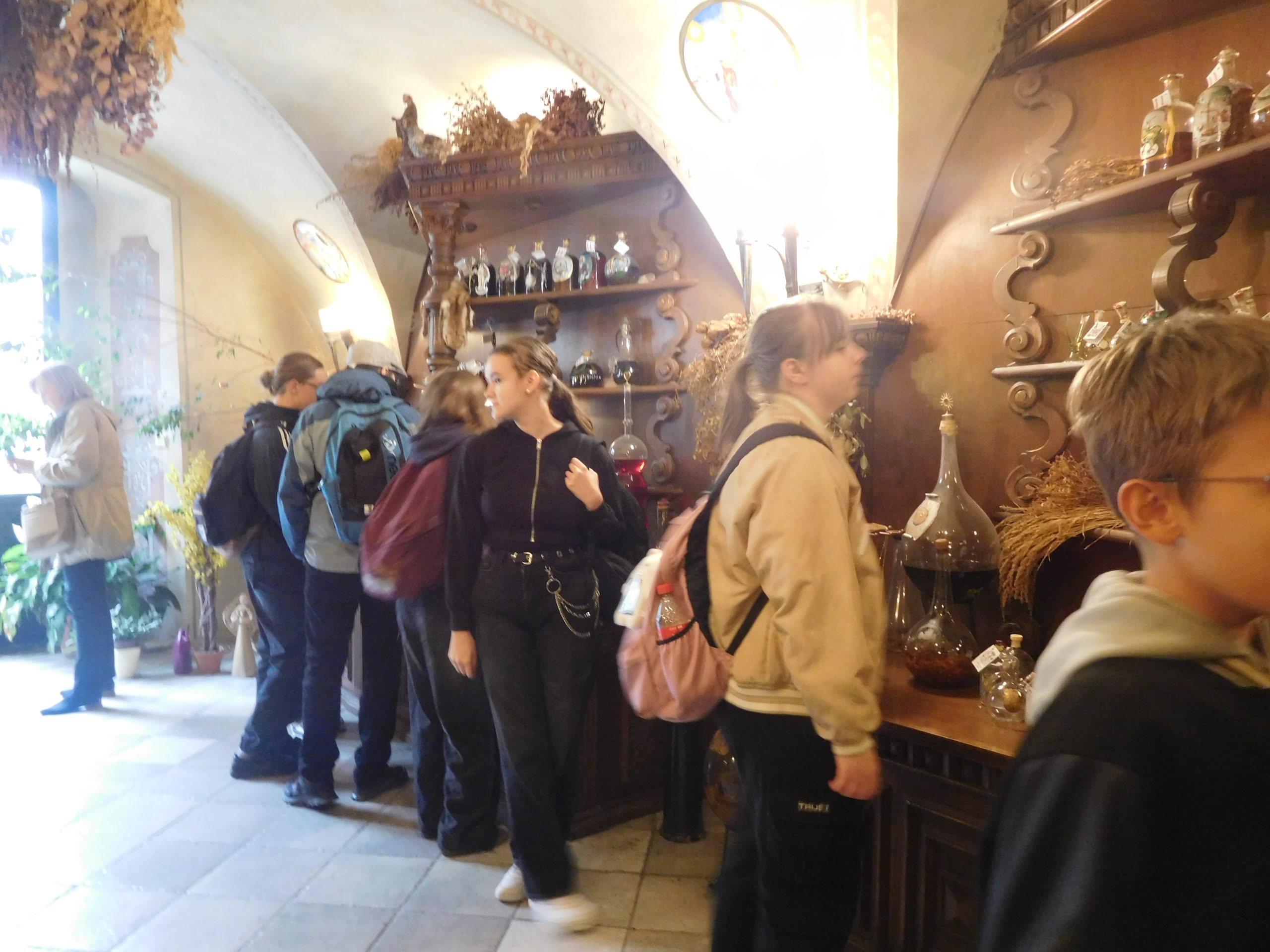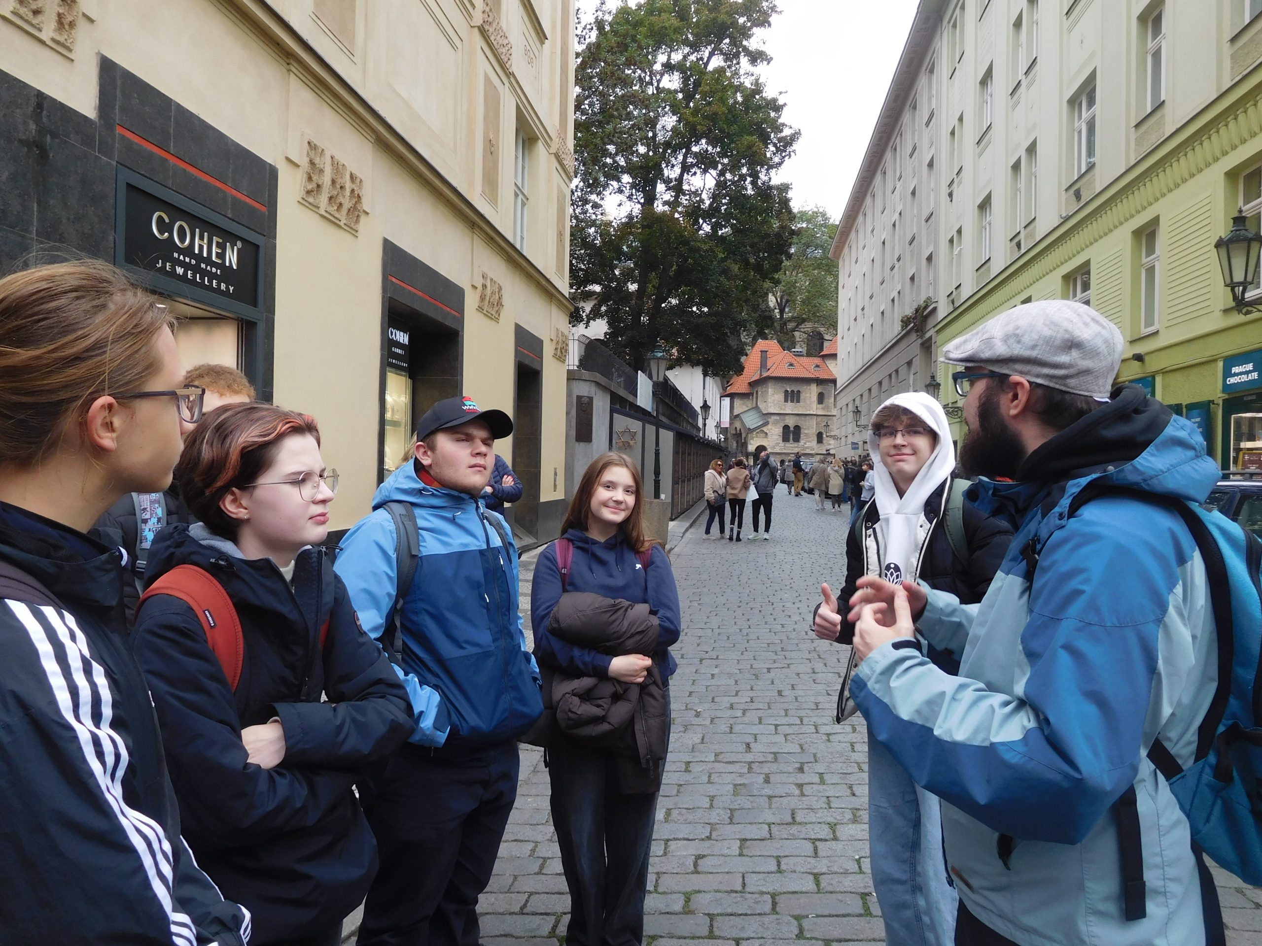 V sobotu 11. října již podruhé zavítal náš dějepisný kroužek do Prahy. Poprvé to bylo v květnu, kdy jsme se prošli po Královské cestě až na Pražský hrad a prohlédli si všechno kolem ní. I tentokrát jsme si naplánovali atraktivní program. Nejprve jsme se přes „Václavák“ vydali na Karlovo náměstí a tady si prohlédli Novoměstskou radnici a v Resslově ulici si u kostela Cyrila a Metoděje připomněli události spojené se smrtí atentátníků na Reinharda Heydricha. Pak už nás čekala komentovaná prohlídka interiérů Národního divadla. A byla úžasná! Neméně zajímavá byla i výstava z doby vlády císaře Rudolfa II. „Speculum alchymiae“ ve sklepení středověkého domu, kde byla po povodních 2002 náhodně nalezena alchymistická dílna. Nakonec jsme si nechali budovu České národní banky, kde je instalována výstava Lidé a peníze. Domů jsme si odvezli mnoho zážitků a nových poznatků. Sobotní výlet jsme si náležitě všichni užili!