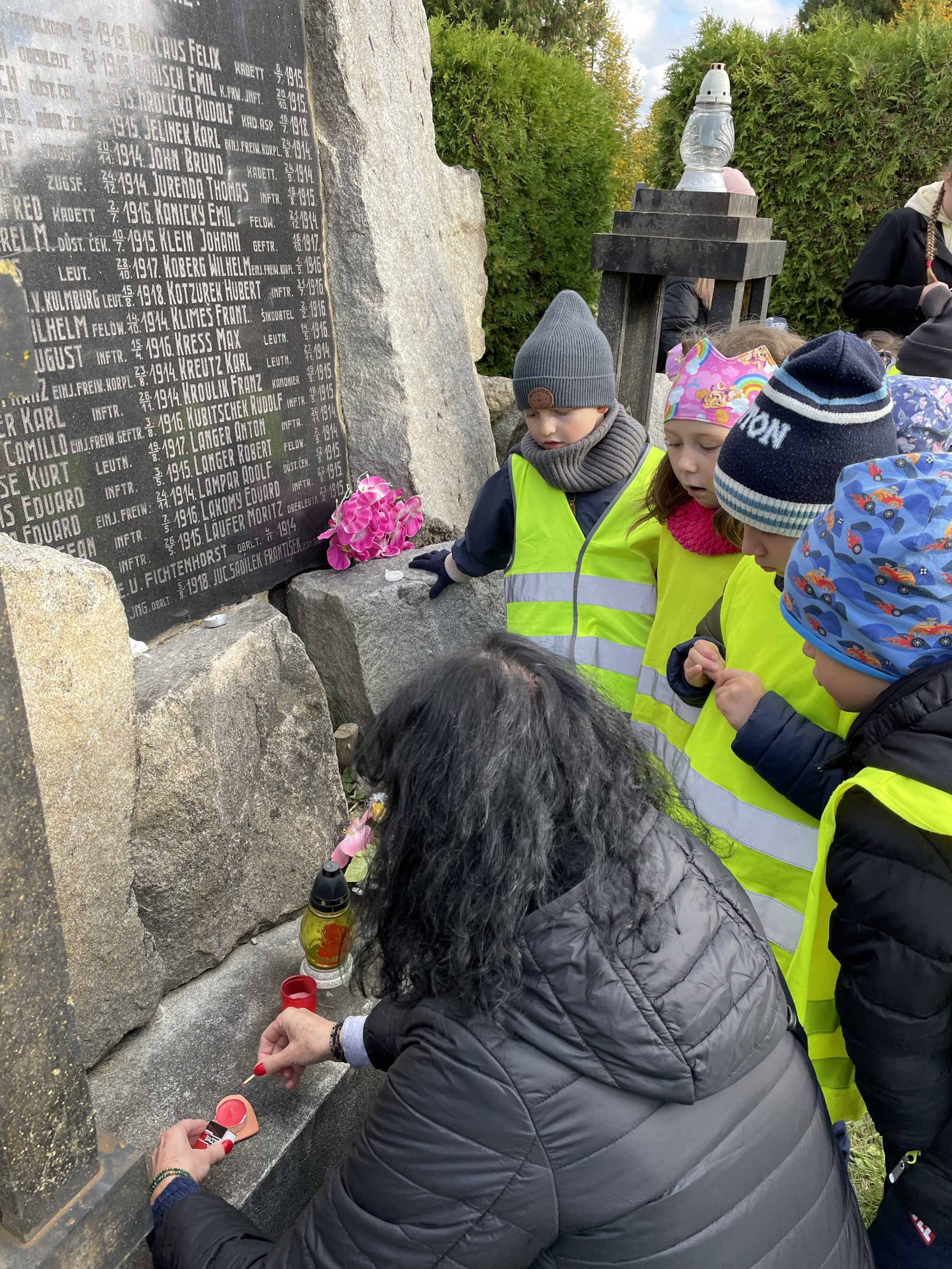 Ve čtvrtek (2.11. 2023) na Památku zesnulých se naše mateřská škola vydala na ústřední olomoucký hřbitov v Neředíně. Zde jsme s dětmi rozmístili vlastnoručně vyrobené svícny a zapálili svíčky. Zavzpomínali jsme tak na všechny ty, kteří už tu s námi nemohou být.
