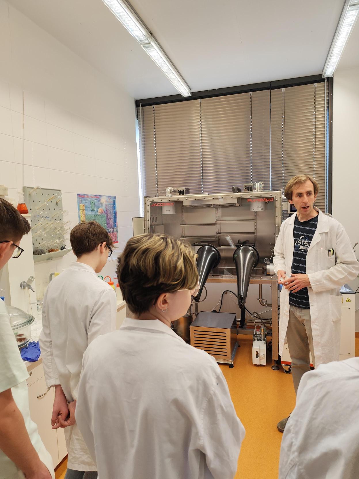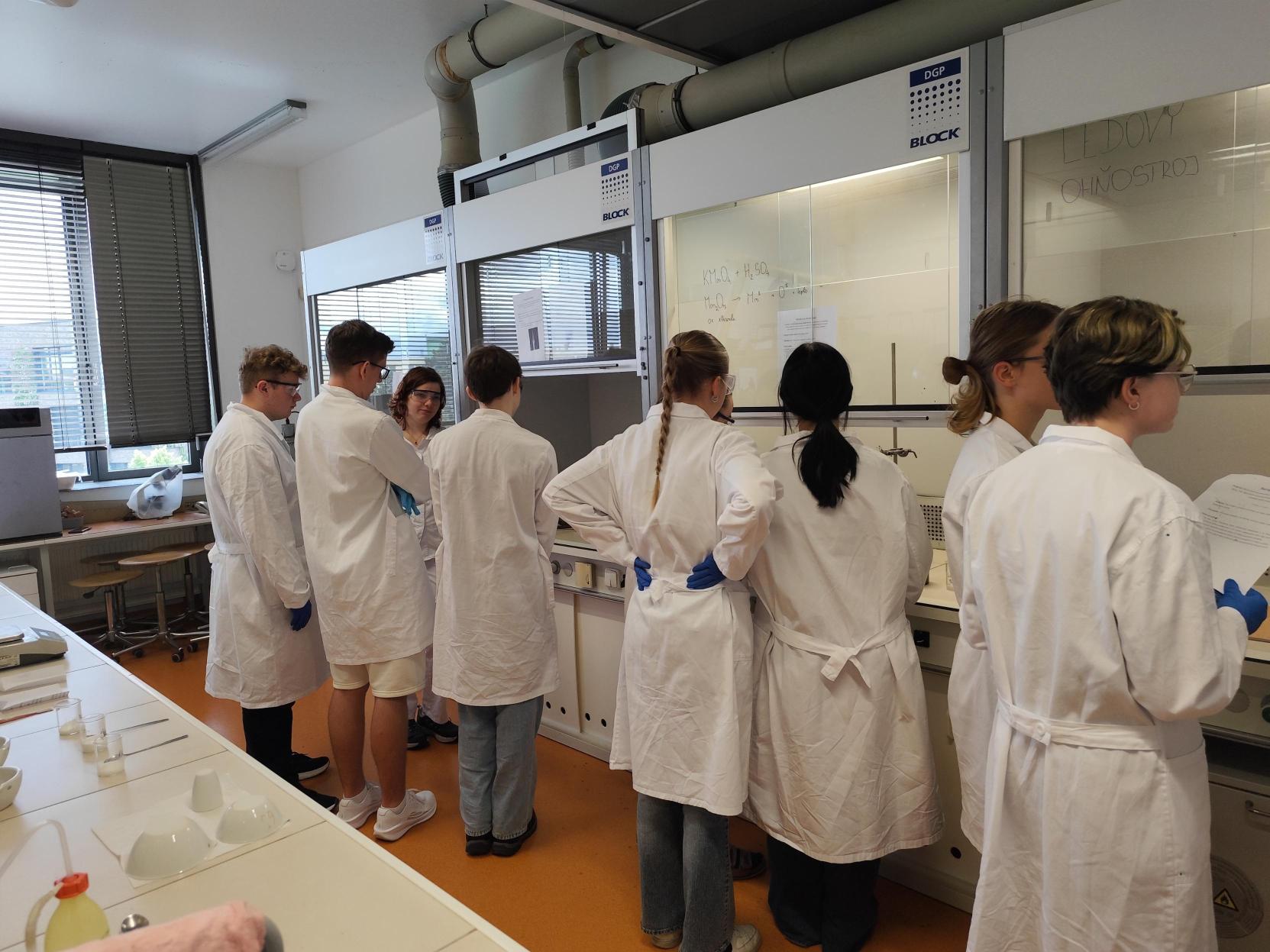 Ve čtvrtek 29. května se členové našeho chemického kroužku vydali na exkurzi na Katedru anorganické chemie Přírodovědecké fakulty Univerzity Palackého v Olomouci. Program byl pestrý a interaktivní. V úvodu si žáci vyzkoušeli několik praktických pokusů ve skupinách, při kterých si mohli ověřit své znalosti i zručnost. Následně se přesunuli k demonstračním pokusům, kde pozorovali pokročilejší chemické reakce v podání odborníků z katedry. Závěrečnou částí byla komentovaná prohlídka specializovaných laboratoří a výzkumných prostor, která všem přiblížila prostředí vysokoškolské vědy v praxi. Děkujeme celému týmu Katedry anorganické chemie UP za inspirativní a obohacující dopoledne plné chemie!