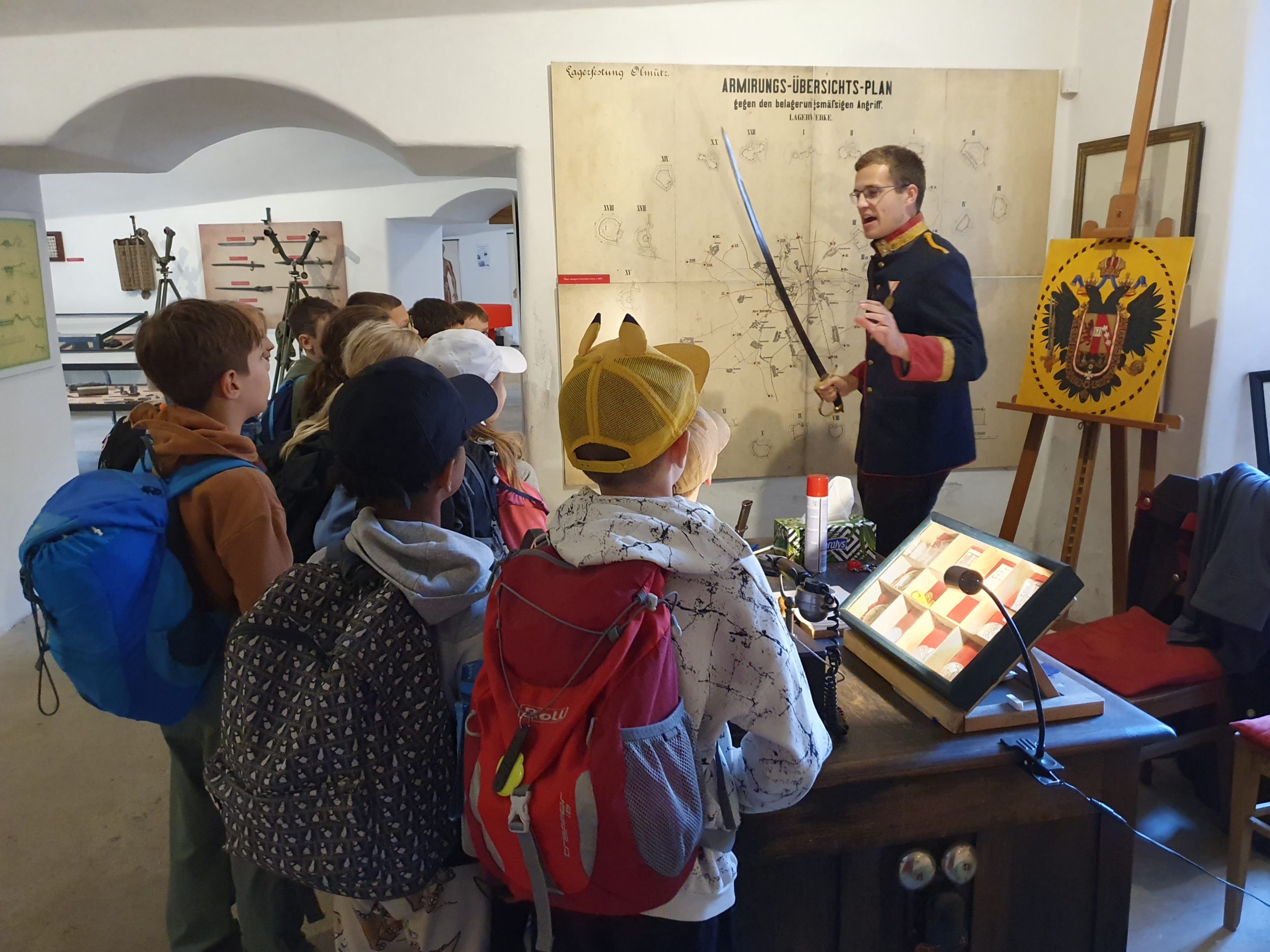 V pátek 27. 9. 2024 navštívili naši třeťáčci a čtvrťáčci pevnost v Křelově. Proč vlastně tato pevnost vznikla? K čemu sloužila? Děti se dozvěděly něco z historie této stavby, ale také spoustu zajímavostí. Například to, že pevnost byla postavena za pouhý jeden rok z 13 milionů cihel. Během prohlídky se děti aktivně zapojovaly do diskusí, během výkladu dostaly do rukou dělovou kouli i šavli. Děti si vlastnoručně vyrazily minci, kterou si odnesly domů. V tkalcovně získaly základy tkalcovství, které si hned vyzkoušely při práci na drobném výrobku. Kromě prohlídky útrob pevnosti a kaponiéry na děti čekalo velké překvapení. S lucernou v ruce se prošly úzkými, tmavými chodbami (tzv. kasematy) pevnosti, k čemuž bylo zapotřebí velké odvahy!