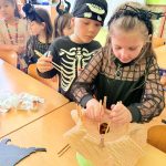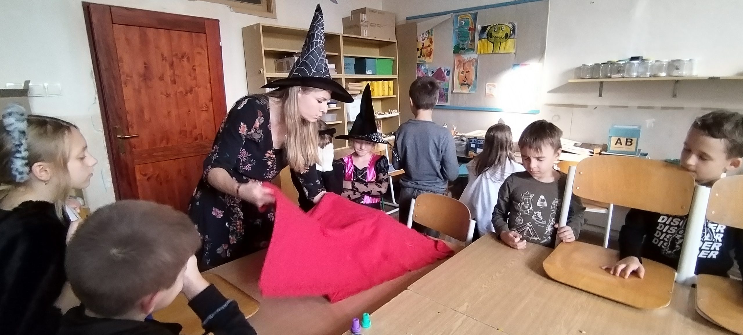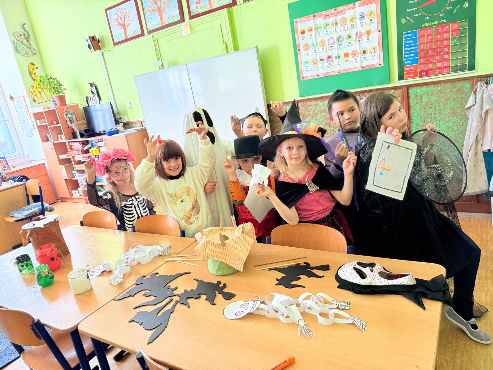 Poslední říjnový den patřil ve školní družině kouzlům, strašidlům a hlavně radosti ze společné zábavy. Na děti čekalo Halloweenské putování, během kterého plnily různé tematické úkoly na stanovištích rozmístěných po celé družině i v šatnách školy. Děti tančily strašidelný tanec, lovily „oběd“ čínskými hůlkami, trefovaly se míčky, řešily doplňovačku a získávaly razítka a drobné odměny. Všichni měli skvělé kostýmy, dobrou náladu a družina se proměnila v kouzelný svět plný čarodějnic, duchů a kostlivců. Velké poděkování patří všem vychovatelkám za nápaditou přípravu celé akce, ale zejména dětem, které se s chutí zapojily a dokázaly, že Halloween může být veselý a plný přátelství.