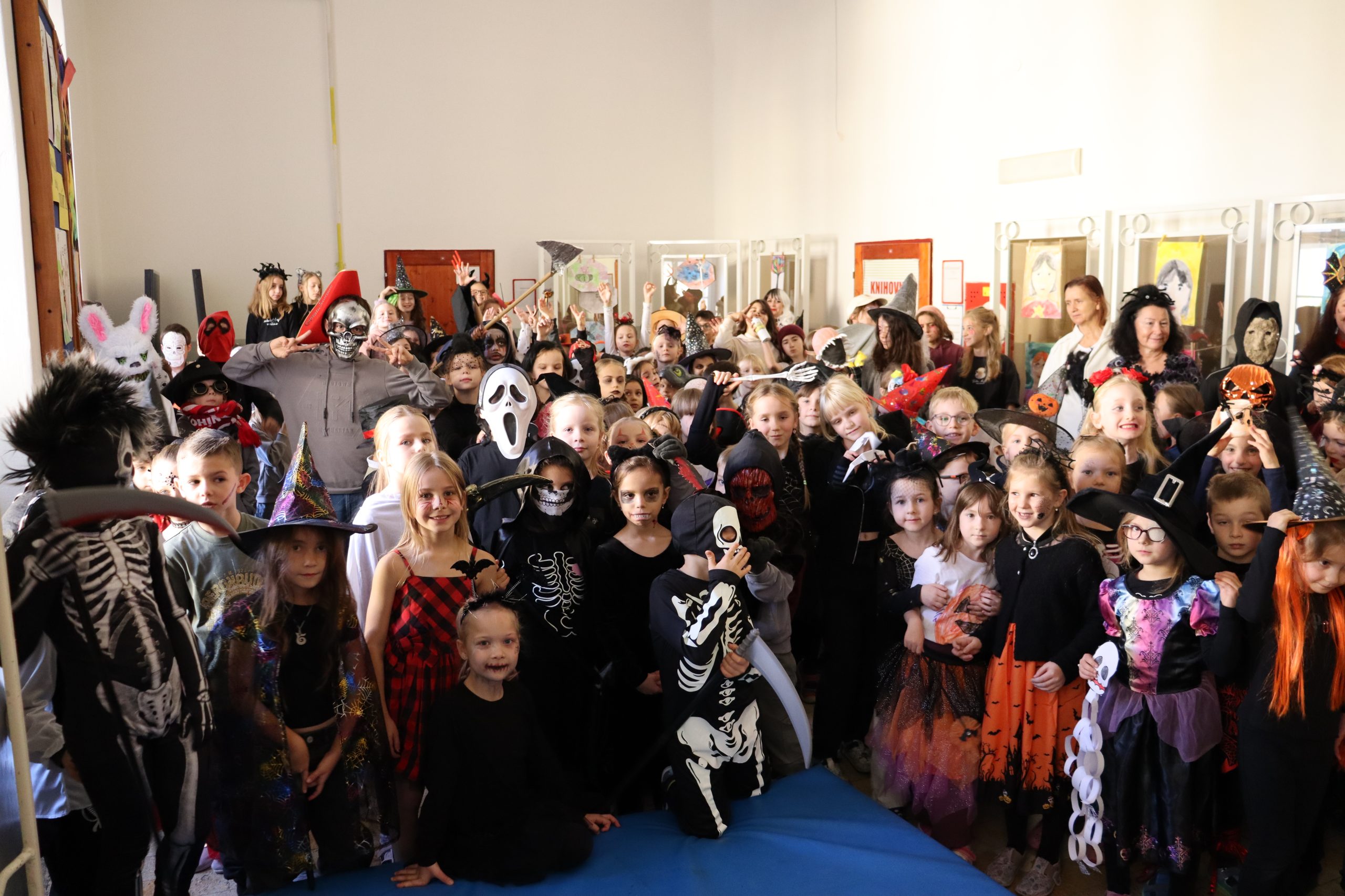 Ve čtvrtek 30. října se pro žáky druhého stupně uskutečnilo halloweenské odpoledne plné zábavných aktivit v angličtině. Děti si procvičily jazyk hravou formou, soutěžily, tvořily a samozřejmě nechyběly ani sladké odměny. V pátek pokračovala halloweenská atmosféra tradičním srazem a následným průvodem masek po škole. Chodby zaplnily nejrůznější strašidelné i vtipné kostýmy, které opět potvrdily, že Halloween patří mezi nejoblíbenější školní akce roku. Děkujeme všem žákům i učitelům za skvělou atmosféru a těšíme se na Halloween zase za rok!