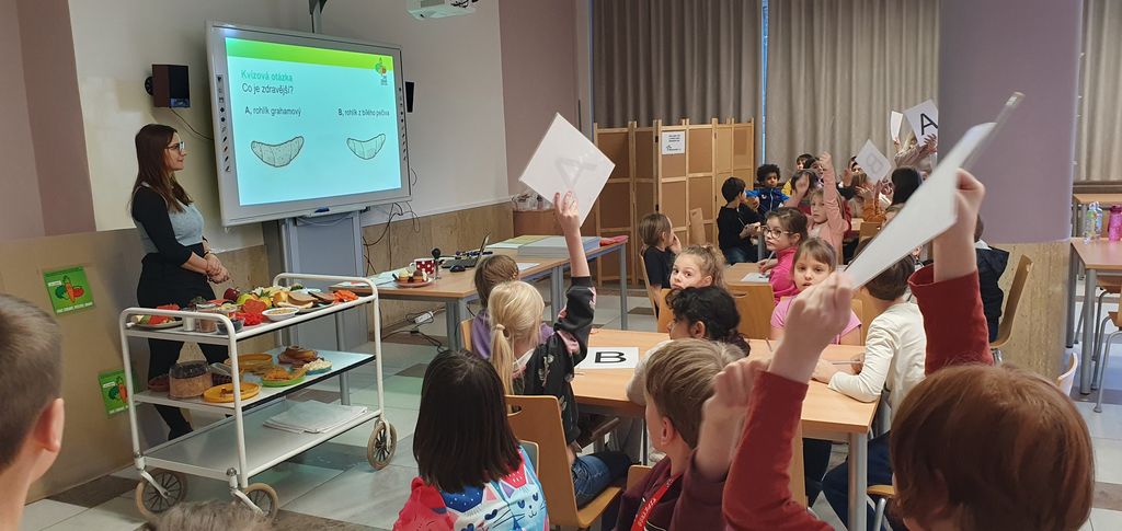 Prostřednictvím různých úkolů, soutěží a skupinových aktivit se děti seznámily se základními pravidly zdravého stravování.