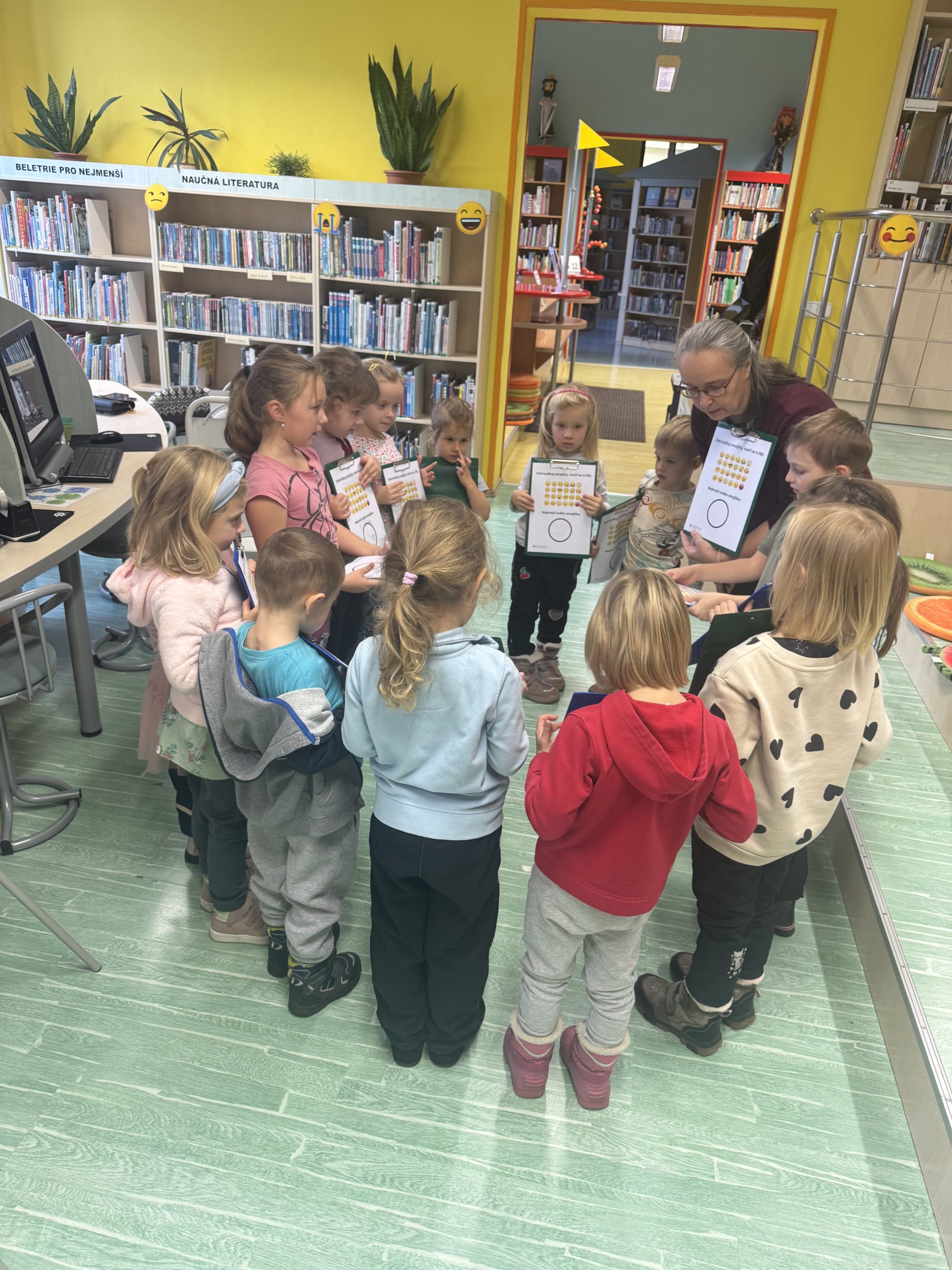 19. listopadu jsme měli možnost navštívit knihovnu a zúčastnit se vzdělávacího programu s názvem Smolný den. Paní knihovnice děti provedla příběhem Krtečka, který měl smolný den. Děti si vyslechly pohádku a zapojily se do příběhu, poté se bavily o emocích a hrály různé hry.