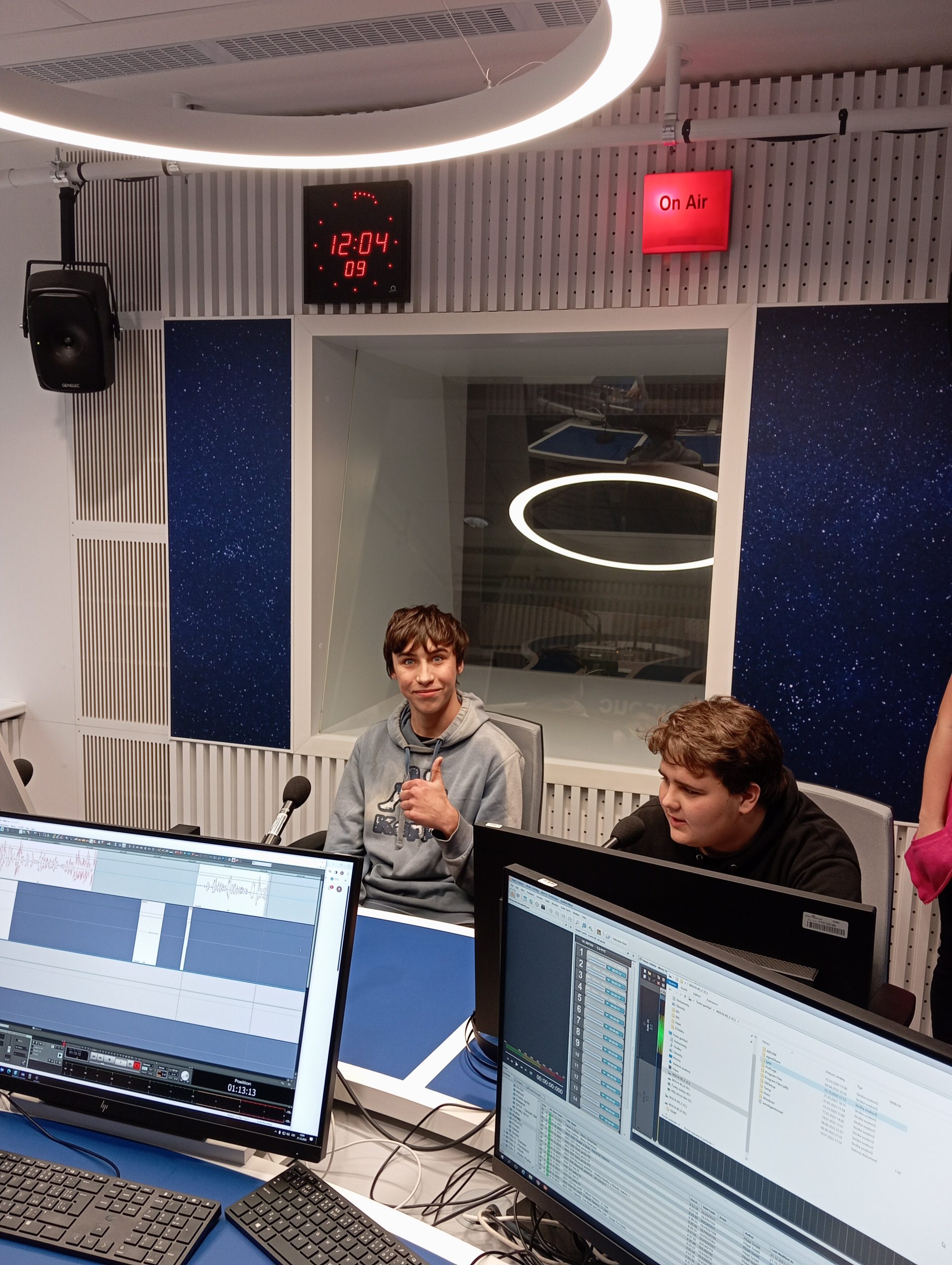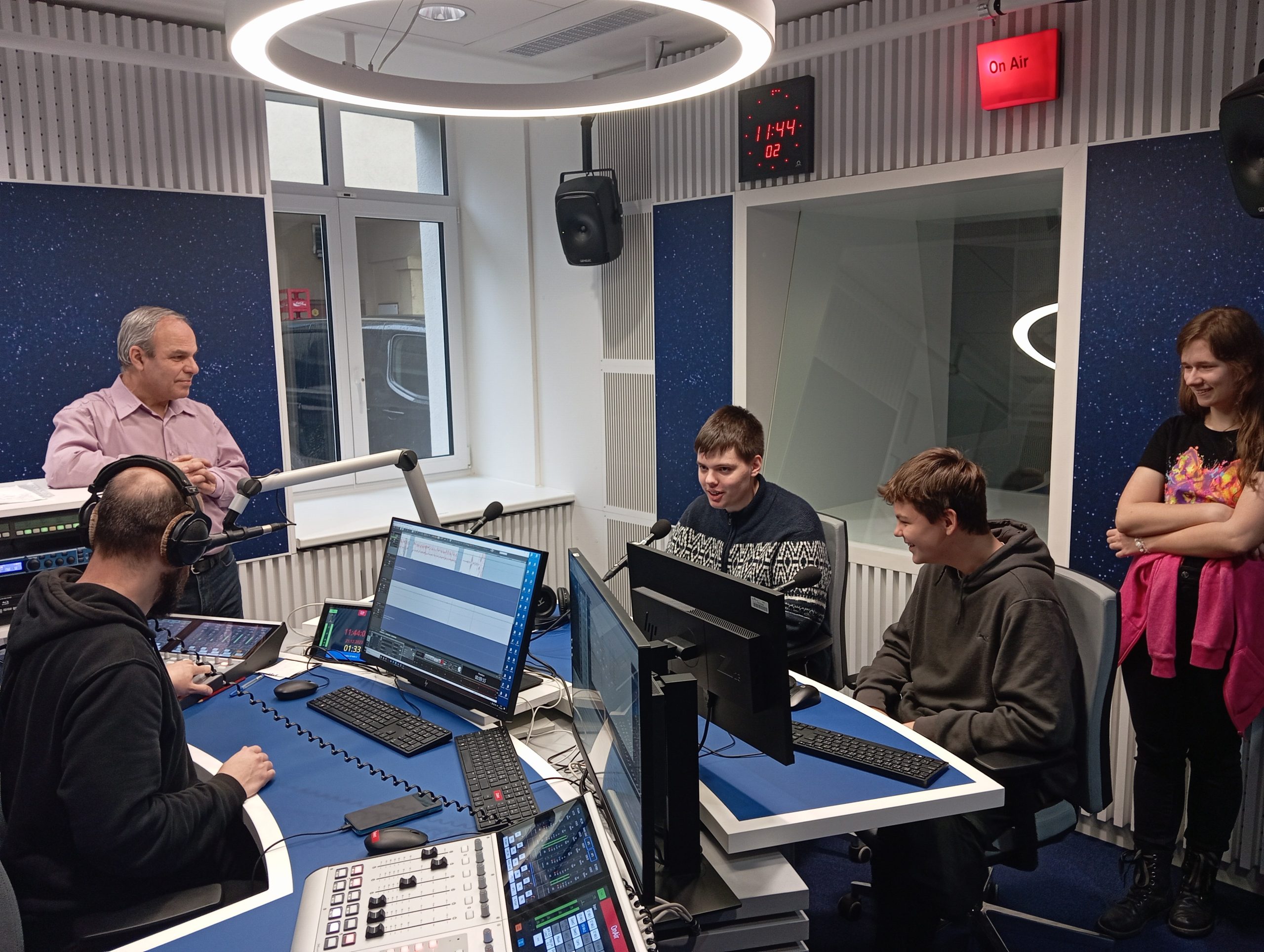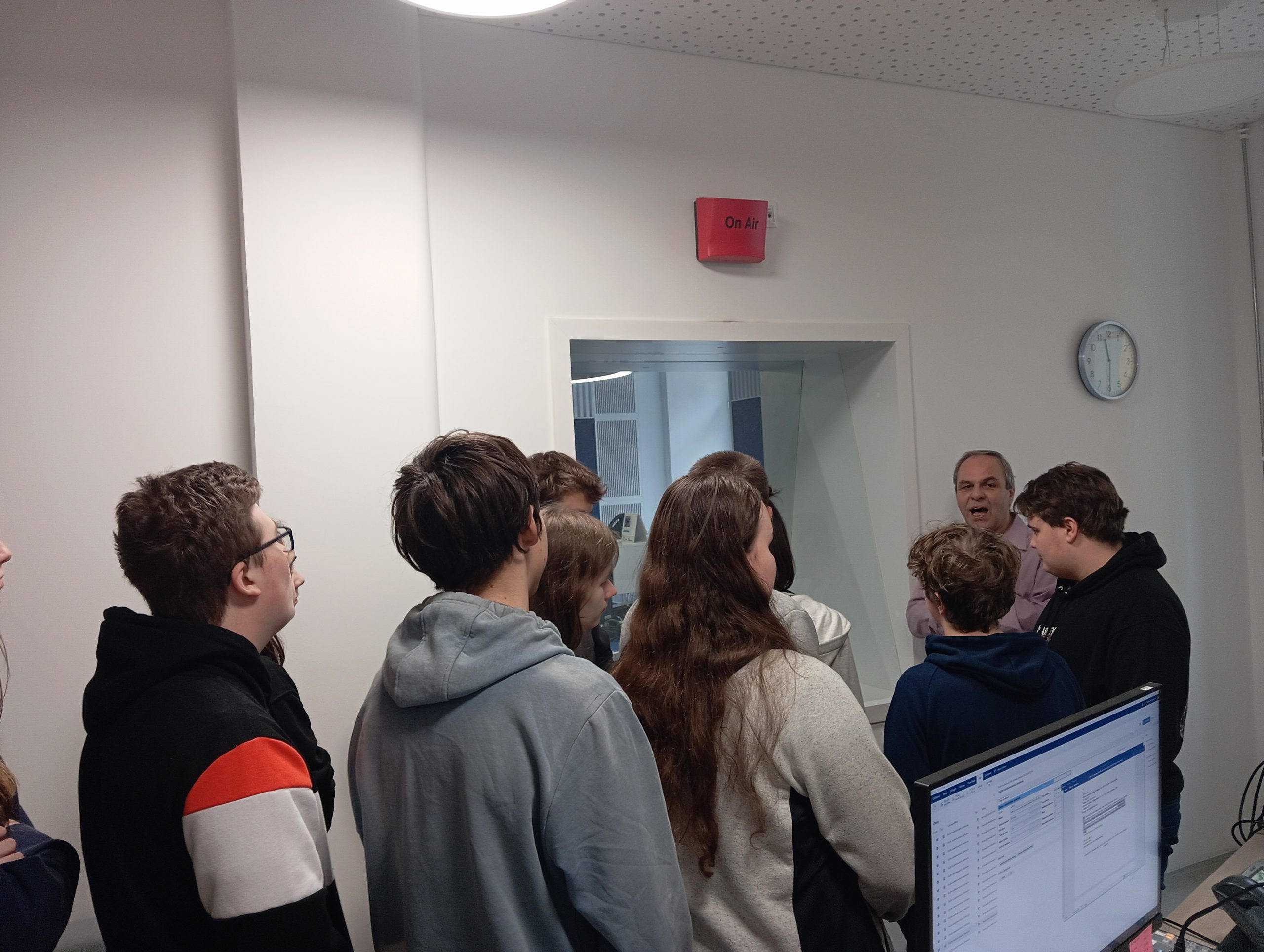 Ve čtvrtek 21. prosince se žáci deváté třídy s výchovným poradcem zúčastnili netradiční exkurze do Českého rozhlasu Olomouc. V průběhu návštěvy se dozvěděli o historii této instituce, dále pak i o zákulisí přípravy rozhlasového vysílání. Nejvíce je zaujala jednotlivá studia, kde mohli vidět, jak vypadá práce různých lidí – moderátora, redaktora, editora nebo technika. Mediálními hvězdami se alespoň na chvíli stali někteří stateční žáci a dokonce i sám pan učitel. Šlo o pěkné zpestření předvánoční atmosféry a příjemnou realizaci kariérního poradenství přímo v terénu.