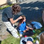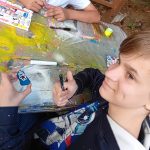 V týdnu od 13. do 16. května sedmé třídy společně absolvovaly již tradiční krajinářský kurz. Do penzionu jsme dorazili v pondělí v 11,00 v počtu 31 žáků po příjemné cestě vlakem. Děti se ubytovaly a hned po obědě jsme si mohli začít užívat krásného počasí. Děti s učiteli sportovali a hráli hry, zatímco si paní učitelka Komoňová volala po skupinkách žáky k výtvarné činnosti – sprejování barevnými spreji přes přírodniny na veliký papír. Děti vytvářely roztodivné kompozice a barevné kreace.