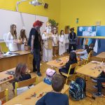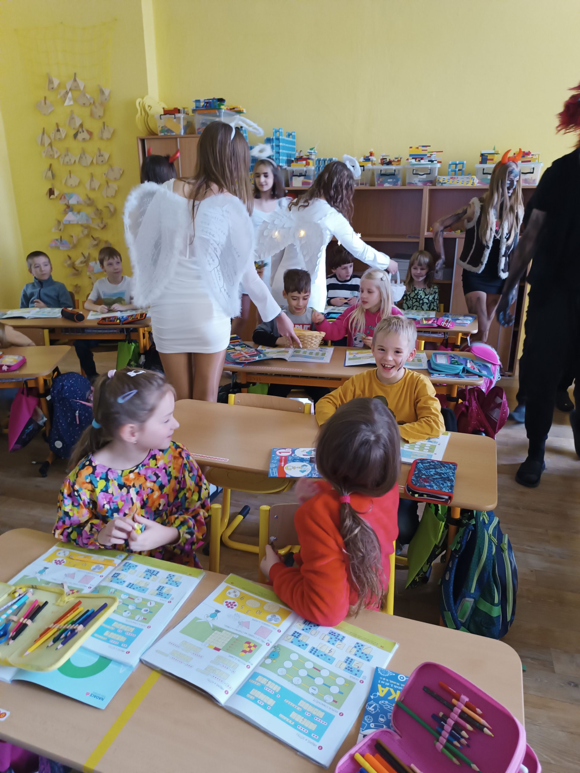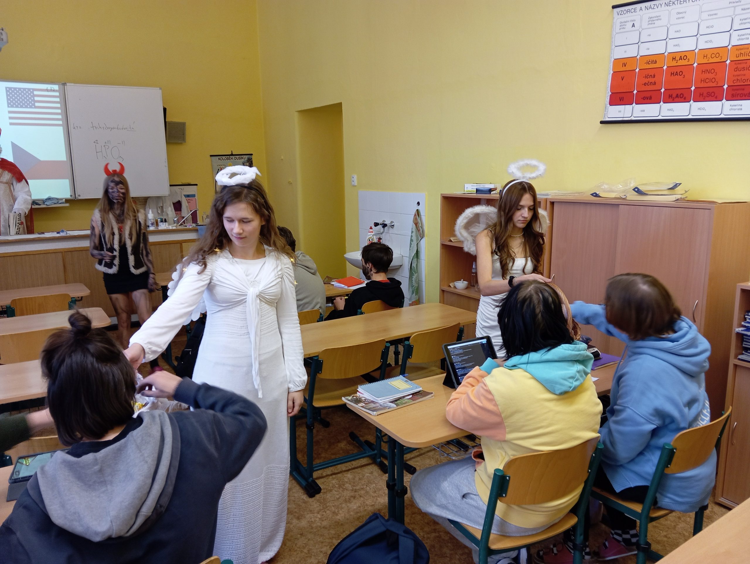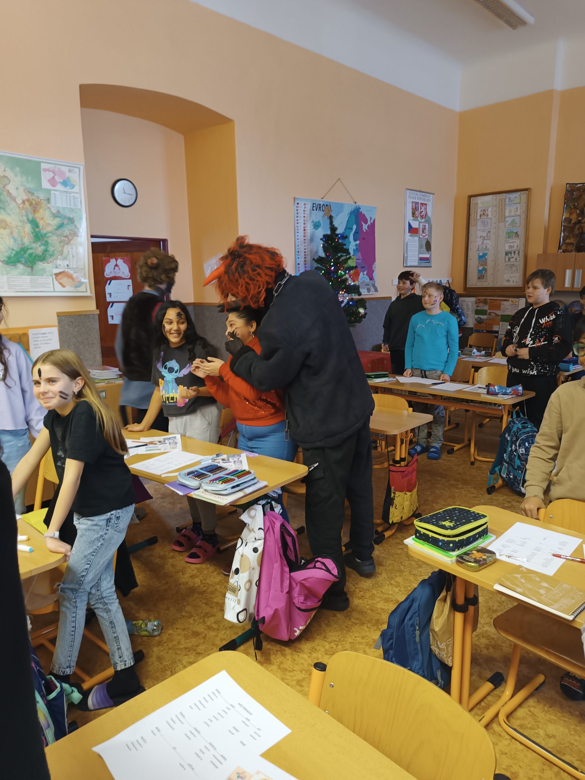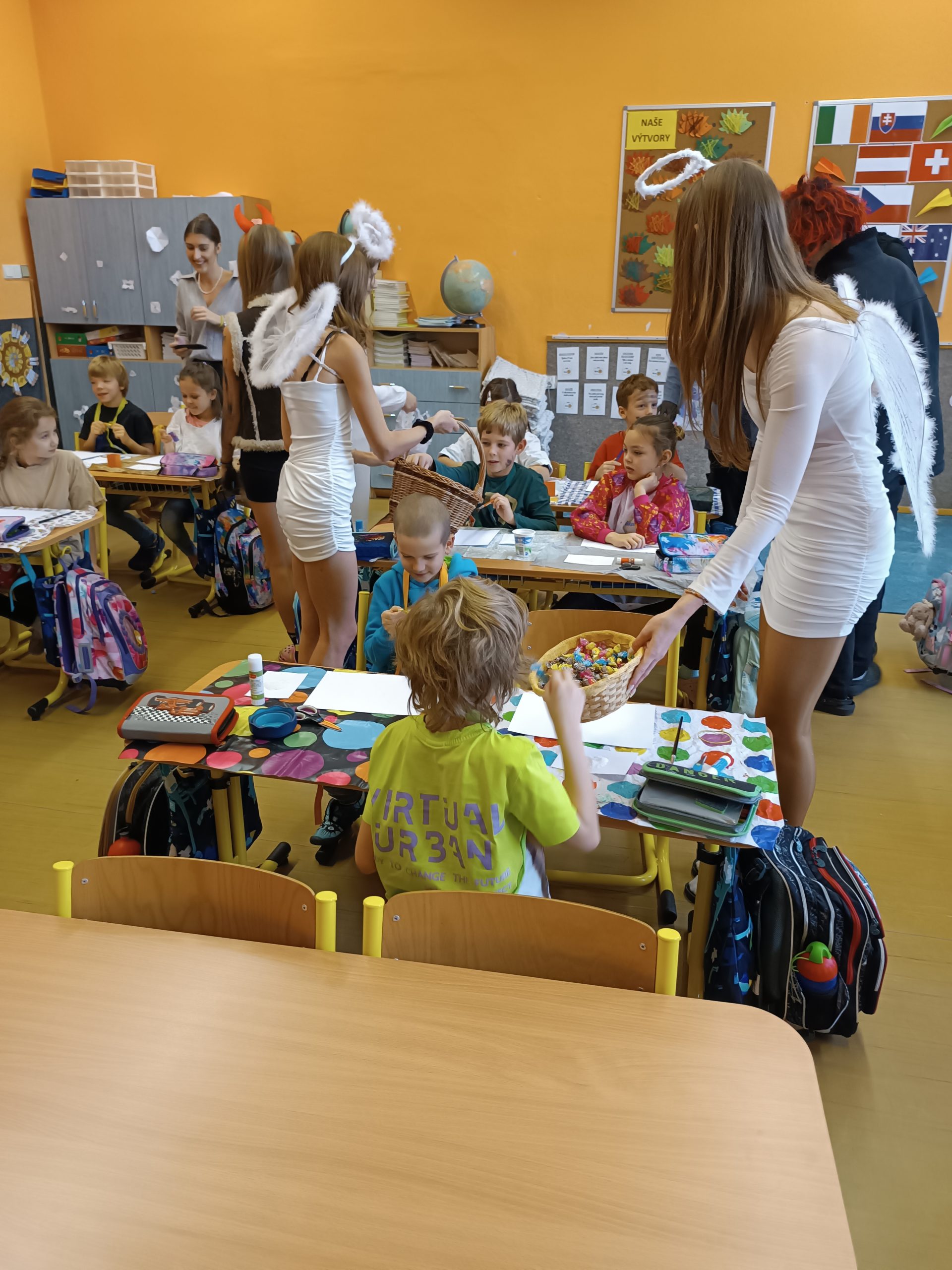 V úterý 5. prosince jsme na naší škole přivítali vzácnou návštěvu, a to samotného Mikuláše. Přivedl s sebou i hodné anděly a zlobivé čerty. Všichni, kdo byli celý uplynulý rok poslušní, dostali drobnou sladkost. Naopak malí i velcí hříšníci z každé třídy odešli s prázdnou. Neunikli ani žáci, ani učitelé. Vše proběhlo v příjemné atmosféře a domů odcházela valná většina z nás s úsměvem na tváři.