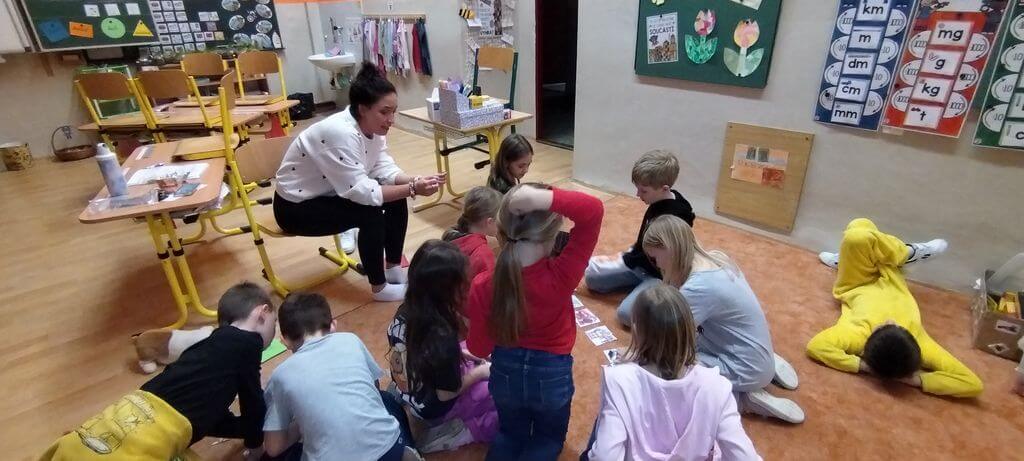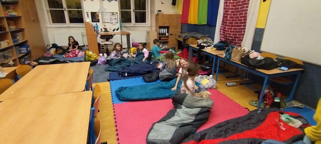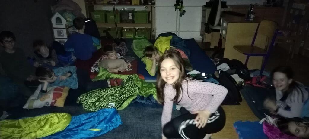 Následovala zábavná týmová hra. Děti spolupracovaly ve skupinách, plnily různé úkoly a ukázaly, jak dokážou táhnout za jeden provaz. Hra byla nejen zábavná, ale také posílila jejich vzájemné vztahy. Večer pak vyvrcholil společným přespáním ve škole.