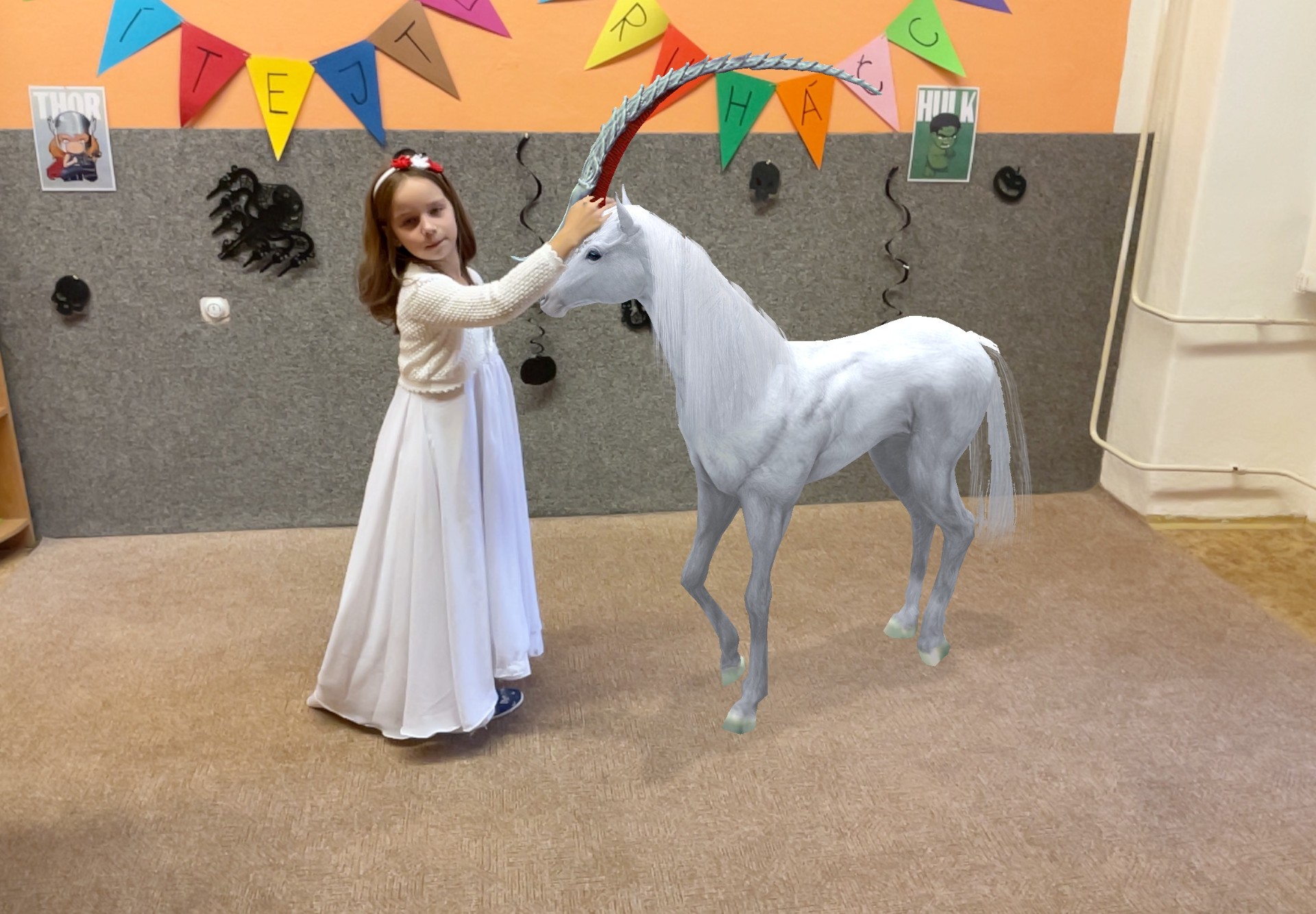 V dalších hodinách našeho kroužku iŠikulů jsme se s dětmi ponořili do fascinujícího světa rozšířené reality (AR). Ta nám umožnila propojit digitální svět s reálným. V prostorách naší školy se tak najednou objevila zvířata, významné stavby a nebo jsme se naopak nechali vyslat do vesmíru. Děti se v těchto hodinách seznámily s aplikacemi AR Makr a ARvid, které si mohly vyzkoušet.