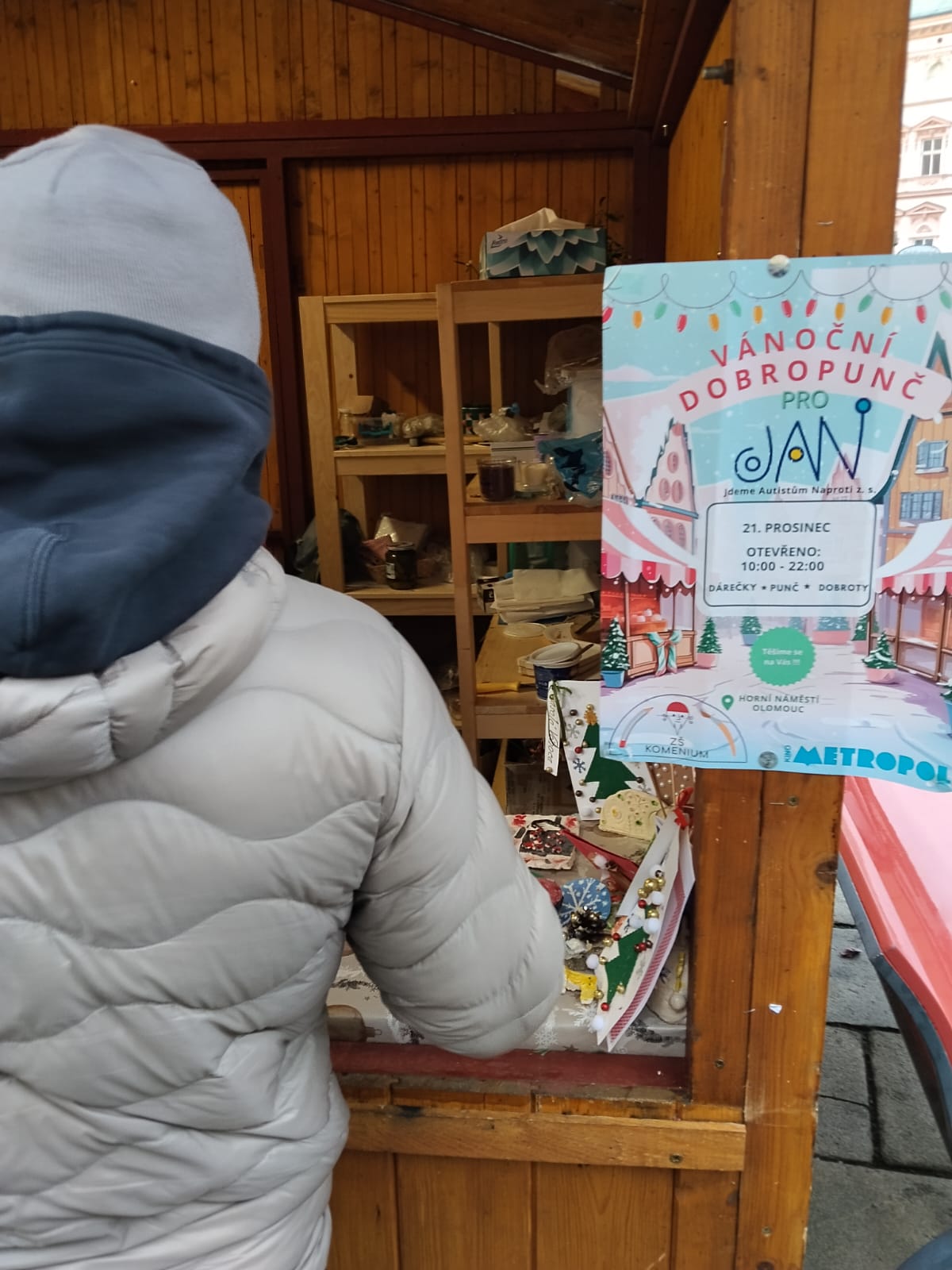 Součástí adventního dění byla také charitativní aktivita, kdy paní vychovatelky a učitelky prodávaly punč ve stánku Dobrého místa pro život. Výtěžek z prodeje byl věnován Centru „Jdeme autistům naproti“.