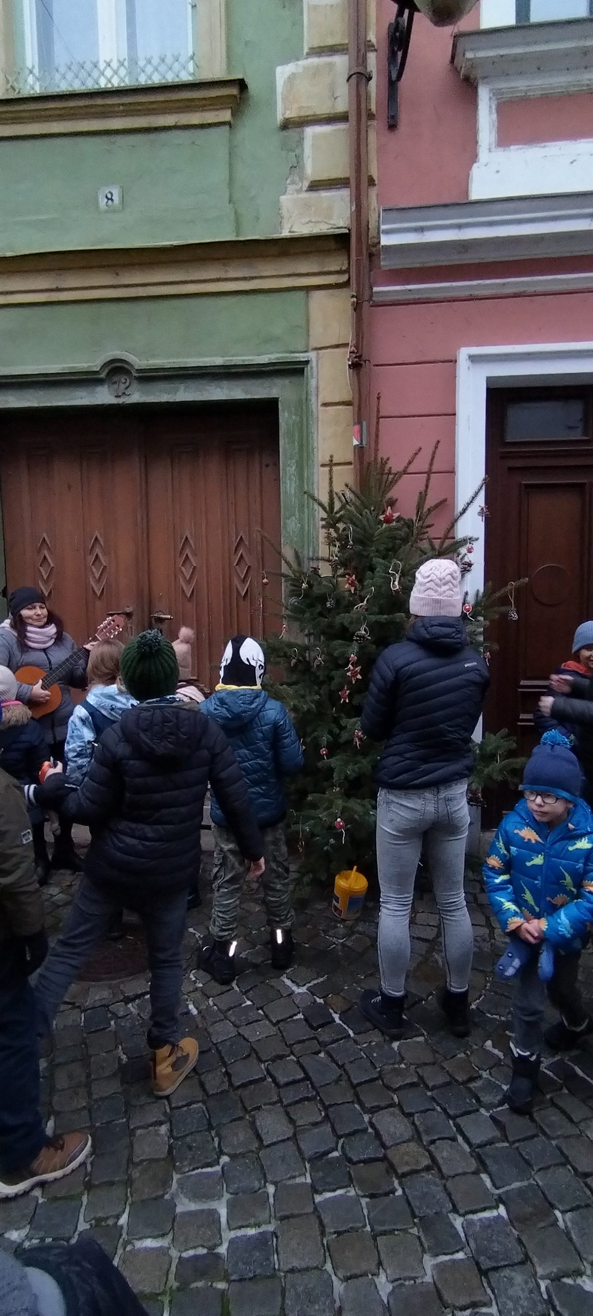 Za zpěvu koled jsme ozdobili vánoční stromeček v Šemberově ulici, který se stal milým symbolem blížících se svátků.