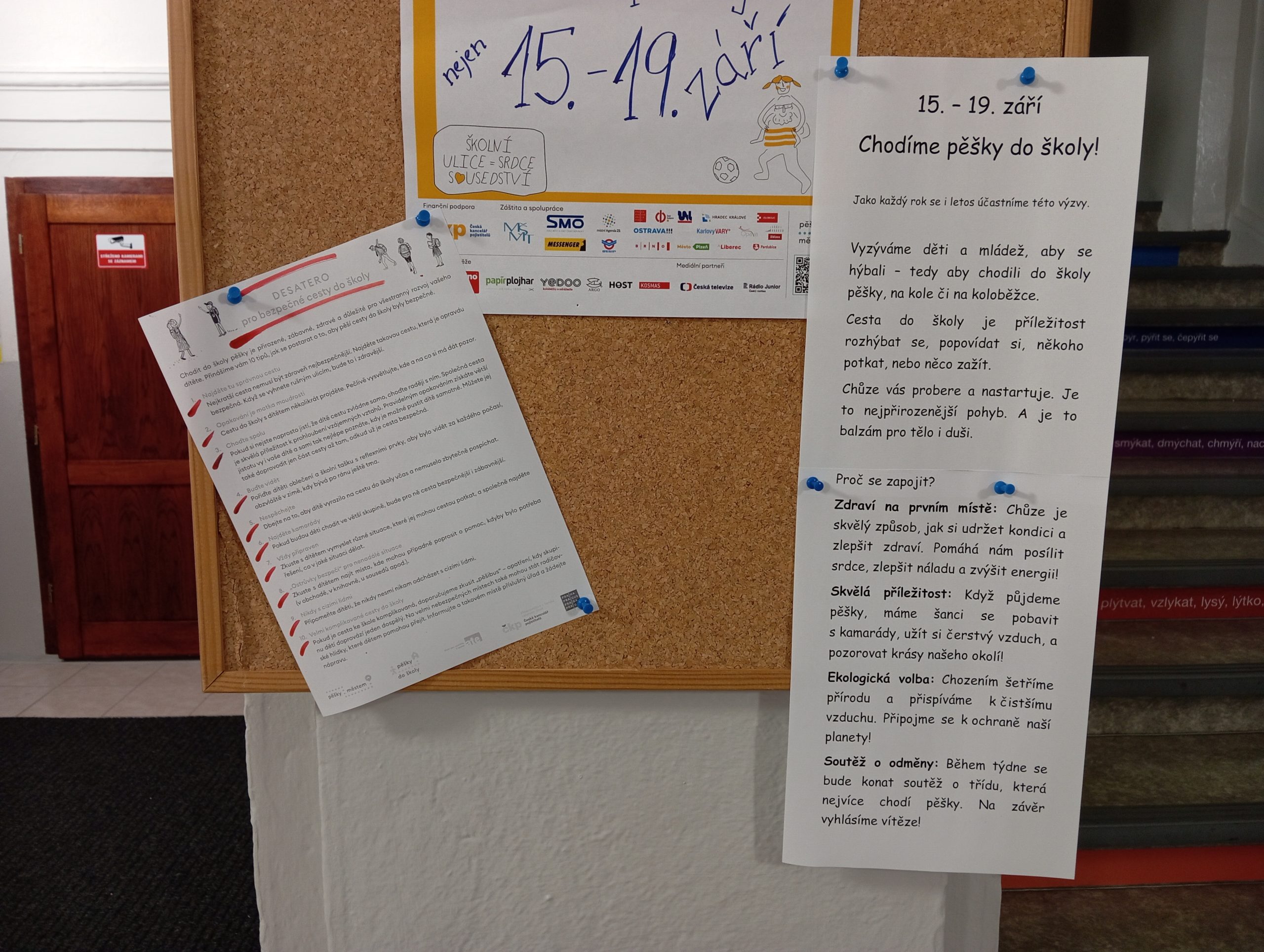 Týden s tématem „Pěšky do školy“ proběhl na naší škole od 15. do 19. 9. 2025. Každá třída se zapojila dle svých možností. Na celkovém prvním místě se umístila třída 2. C, na druhém 5. B a na třetím 9. B. Důležitější než umístění je ale rozvoj pohybových schopností po celý život. Děkujeme všem zúčastněným žákům za aktivní zapojení.