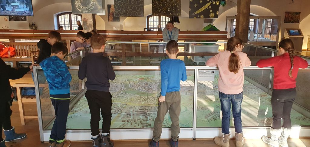 Společně si o povodních popovídali u exponátu zátopového modelu Olomouce Také si vyzkoušeli, jak postupovat v případě hrozícího nebezpečí a nutnosti evakuace.