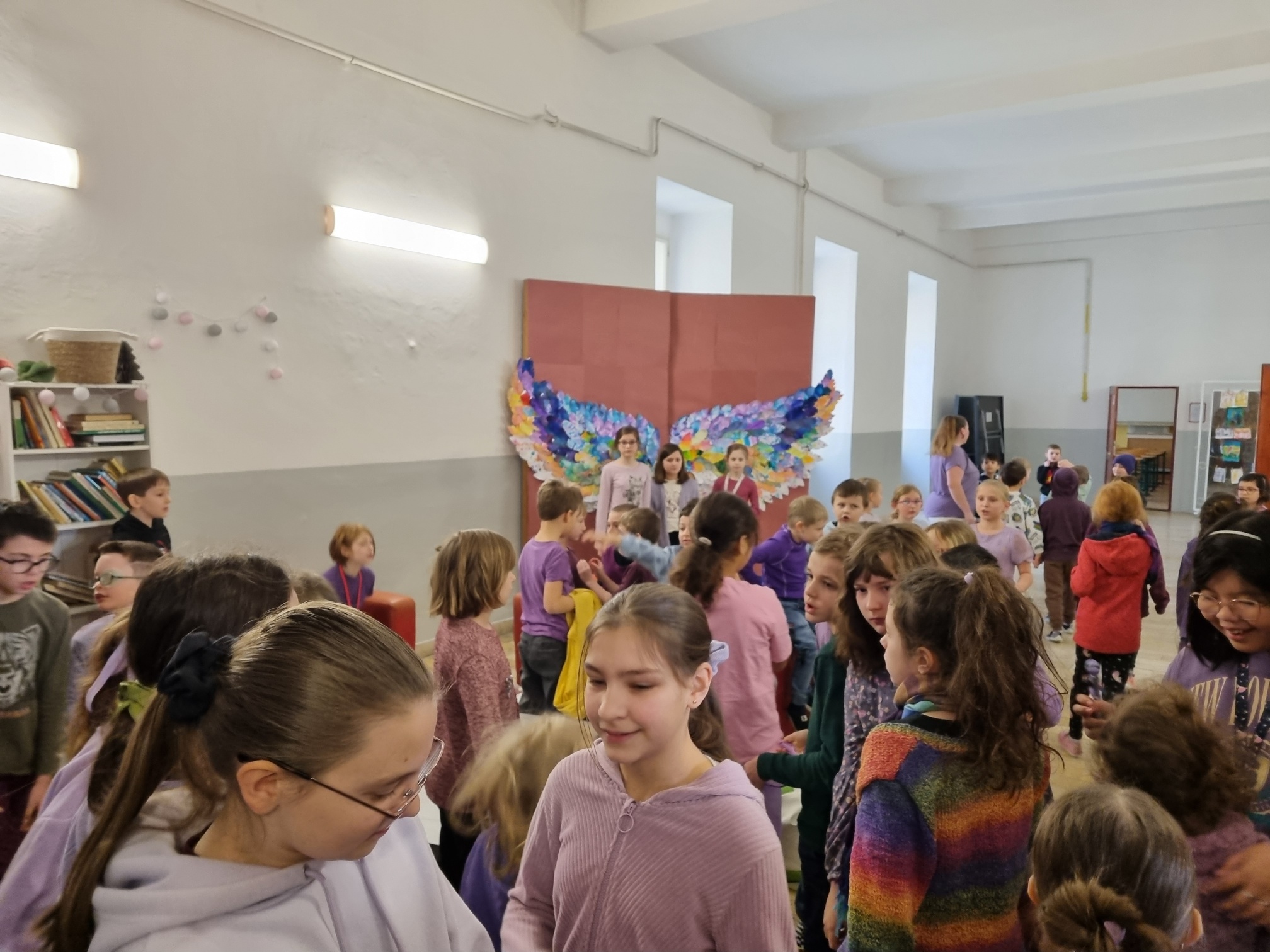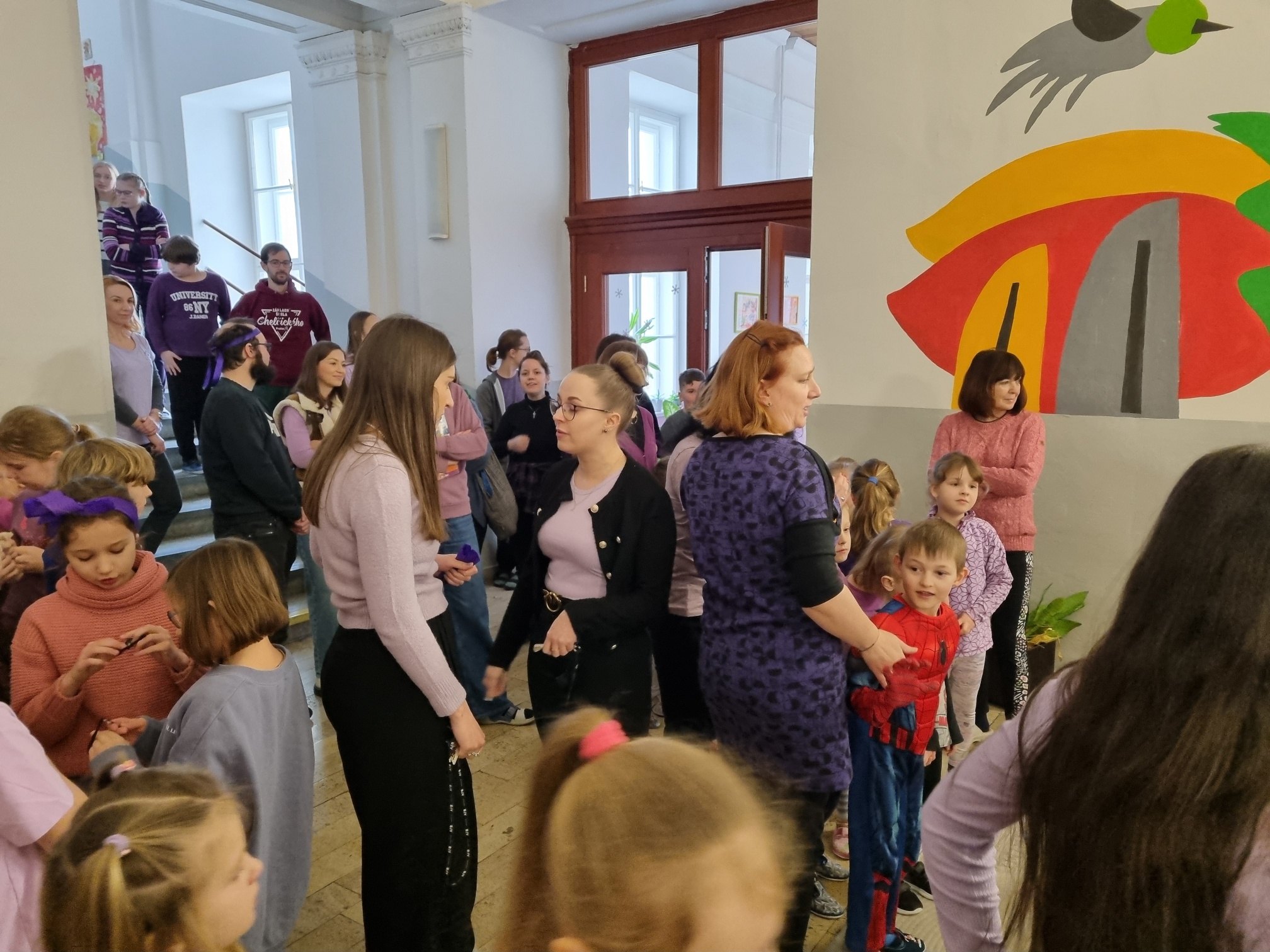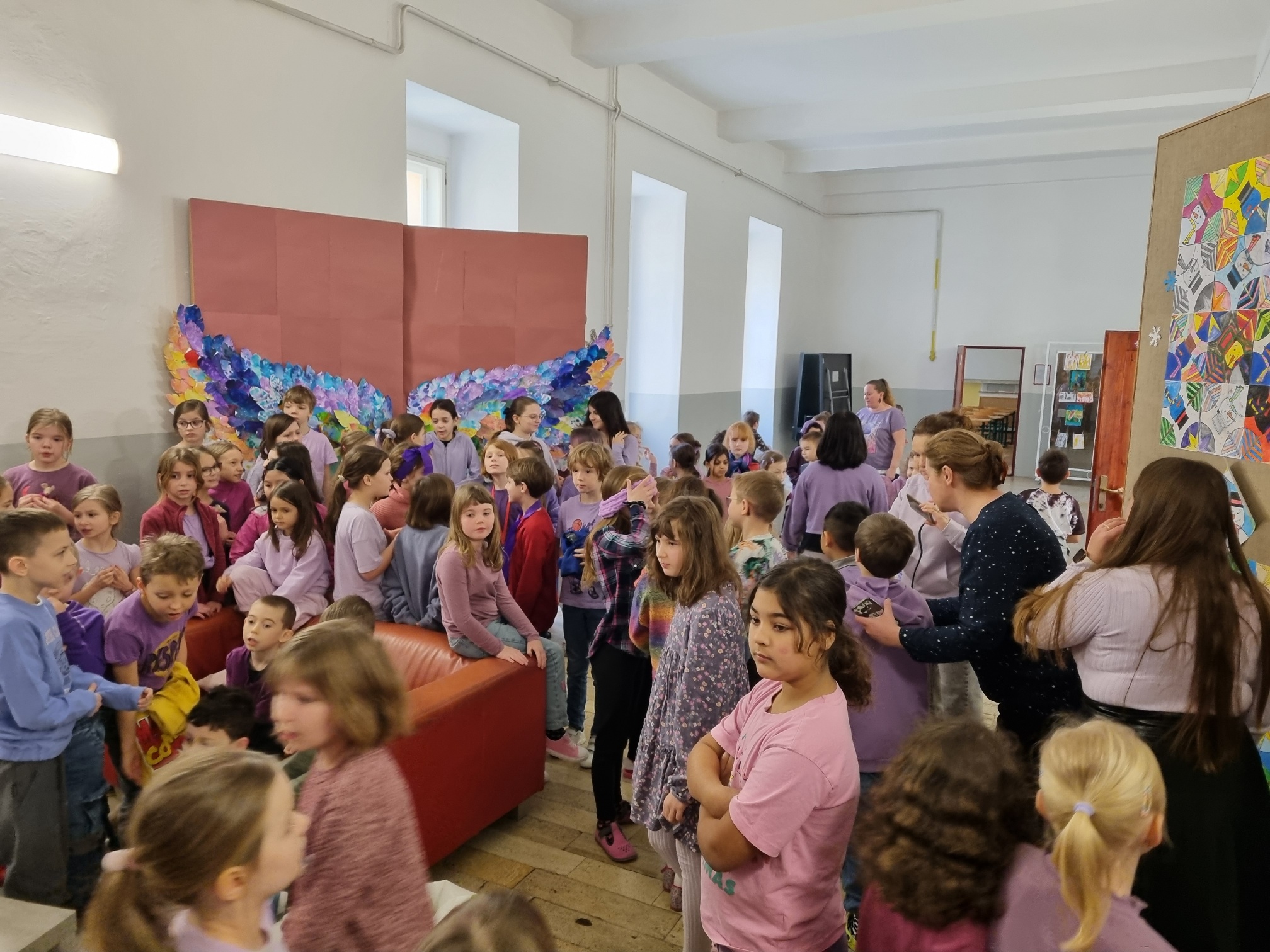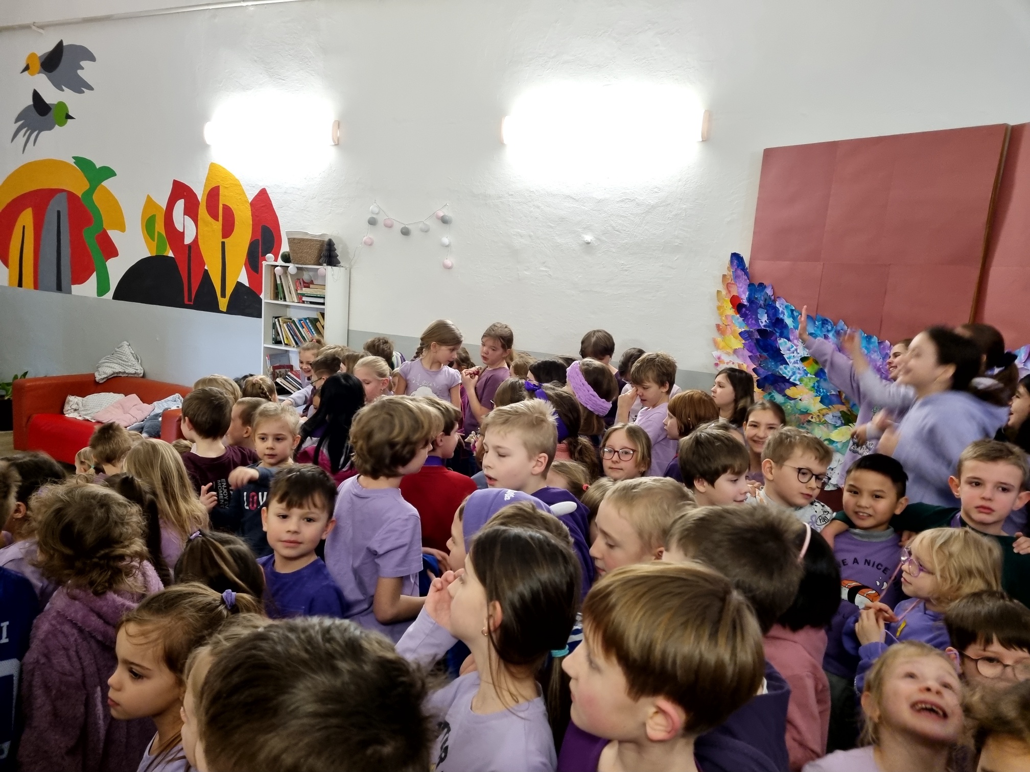 V pondělí 10.2.2025 proběhl na naší škole fialový den na podporu well-beingu ve škole. Žáci a pedagogičtí pracovníci vyjádřili podporu tím, že přišli oblečení do fialové barvy.