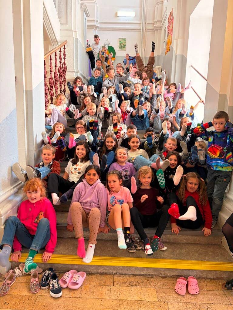 Děti dorazily v nejrůznějších ponožkách – pruhovaných, puntíkatých, každá jiná a všechny originální. Povídali jsme si také o tom, co obnáší život s tímto syndromem, a děti měly možnost se s touto problematikou blíže seznámit. Společně jsme si připomněli, jak důležitá je tolerance, respekt a sounáležitost k druhými.