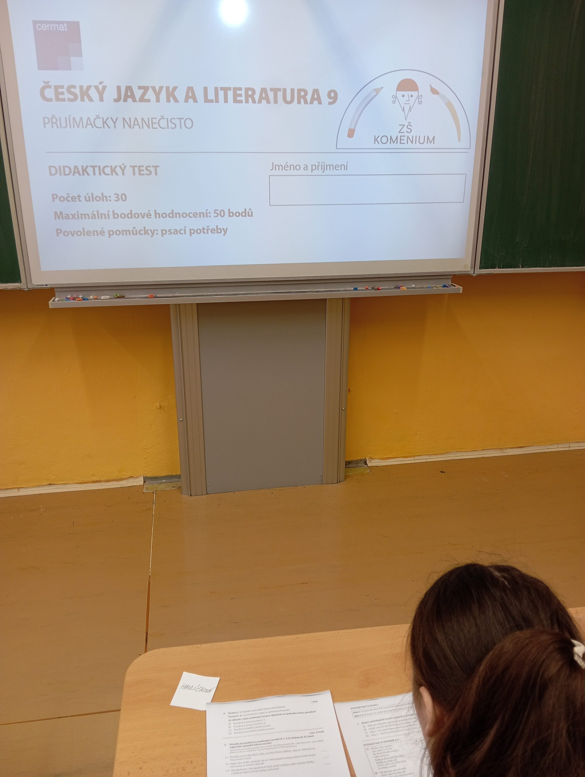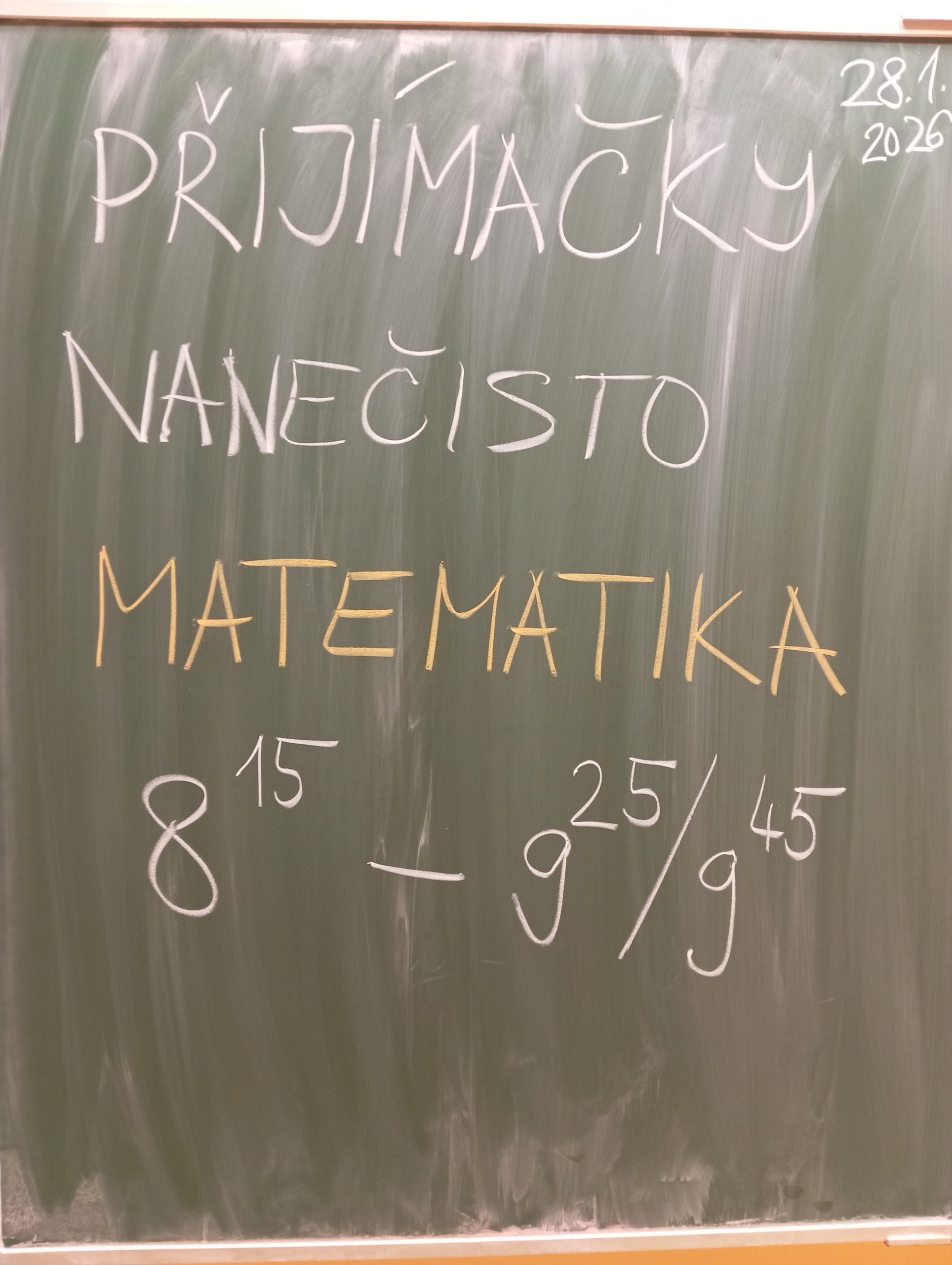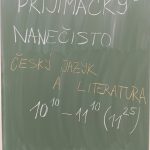 Žáci devátého ročníku si mohli ve středu 28. ledna vyzkoušet „Přijímačky nanečisto“ a zjistit svou aktuální úroveň při přípravě na jednotnou přijímací zkoušku. Všichni zájemci se aktivně zapojili, pro některé jsou výsledky obou testů motivací pro zlepšení. Žáci rozvinuli své dovednosti nabyté v hodinách, ale také v kroužcích „Cvičení z matematiky“ a „Cvičení z českého jazyka a literatury“. Děkujeme za tuto příležitost.