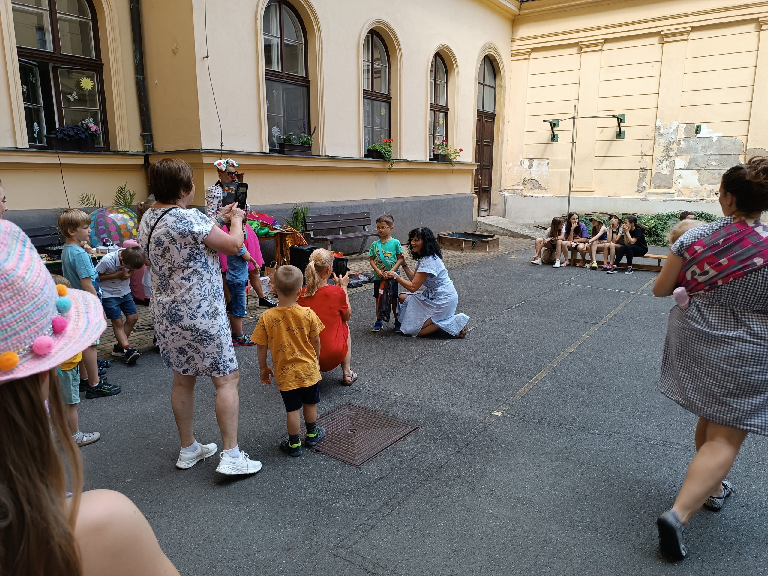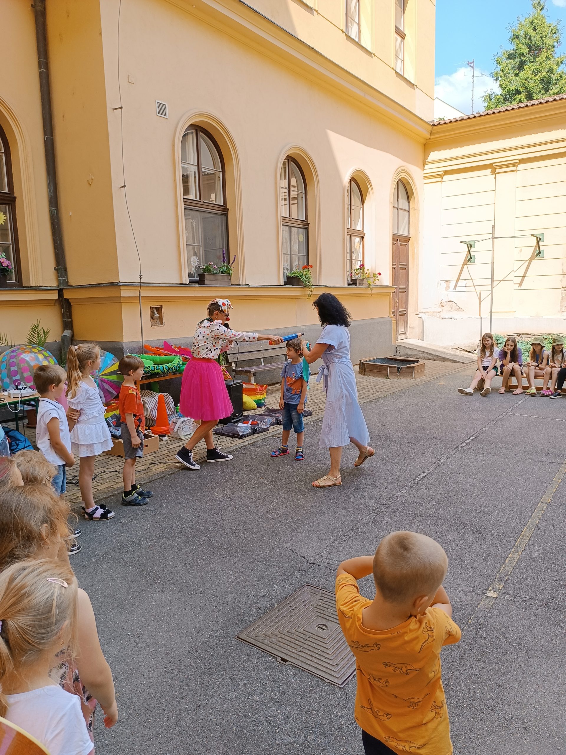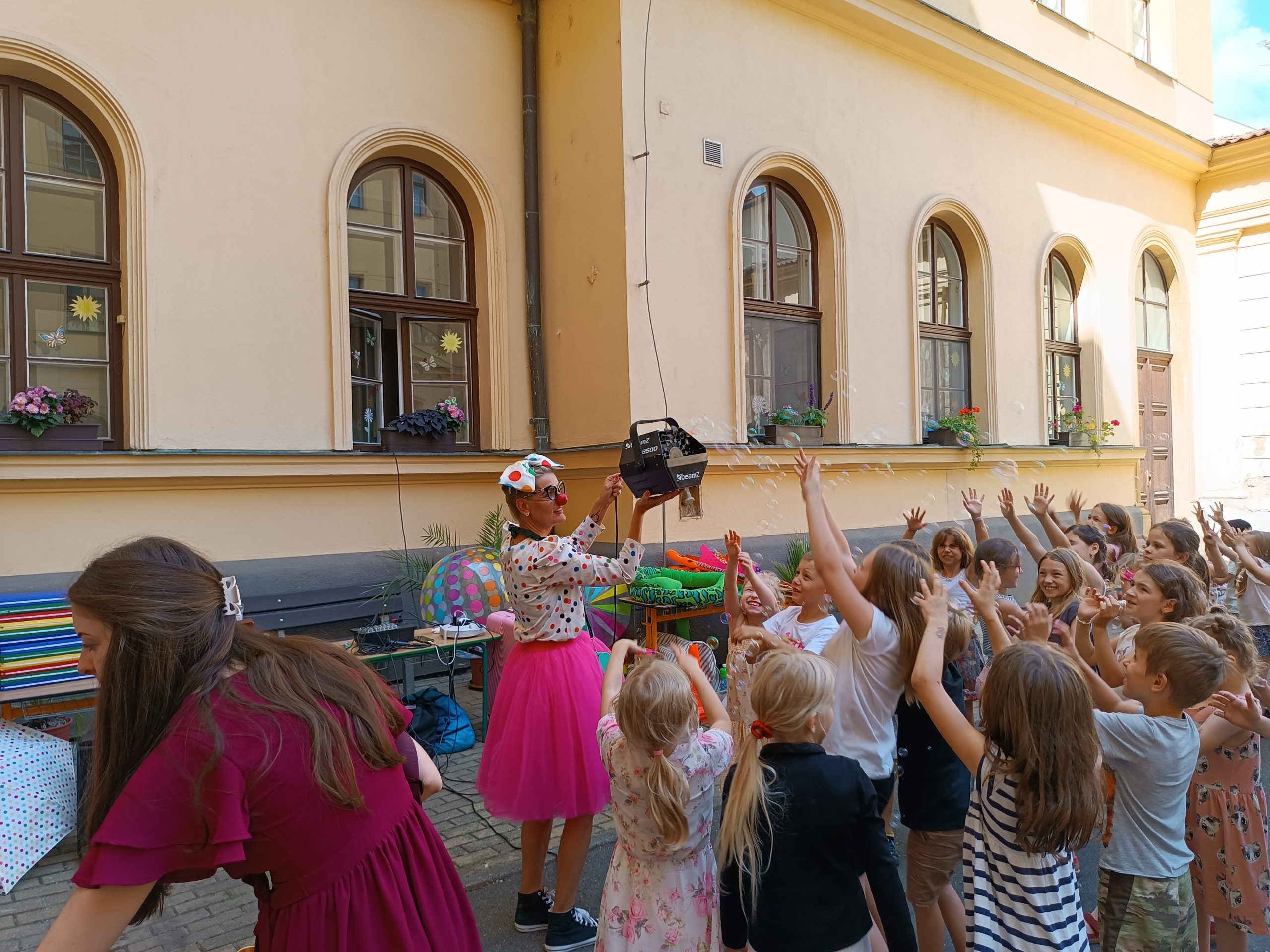 Zábavné odpoledne začalo krásnými písničkami našich školkáčků a pasováním předškoláků na školáky. Děti si veselé odpoledne s kamarády užily. Klaunka Olina pro děti vymýšlela vtipné úkoly a hry, tančila s nimi a dováděla. Všichni si užili spoustu legrace.