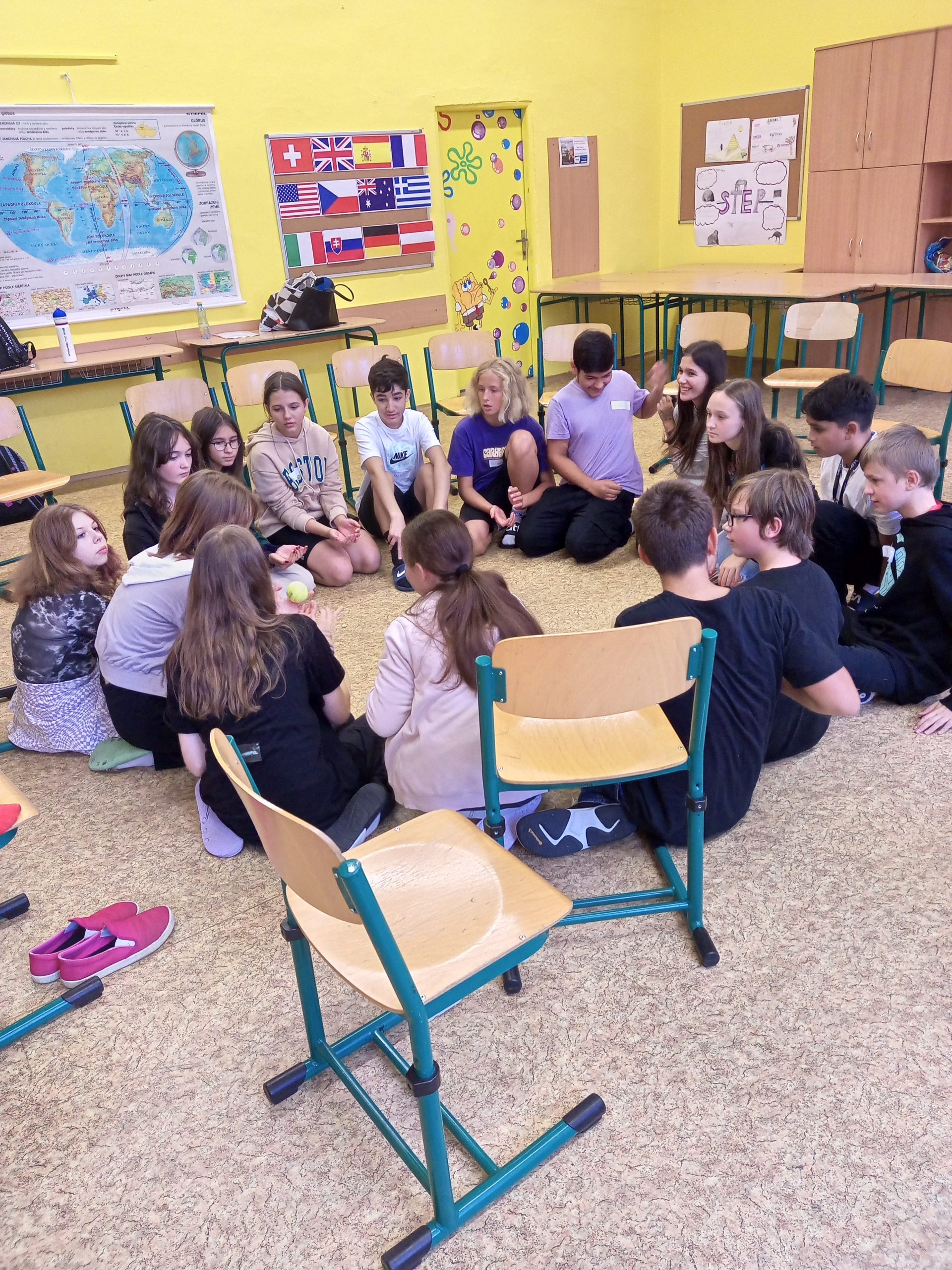 V pátek 22. 9. bylo pro třídu 7. B připraveno první setkání vícestupňového preventivního programu. Toto setkání bylo zaměřeno na interaktivní cvičení a hry. Lektorky se zaměřily na aktivity, které měly za cíl prolomit bariéry mezi žáky a lektory. Hry a cvičení upevňovaly skupinovou práci a komunikaci. Záměrem programu je zlepšit vztahy, komunikaci a vzájemnou toleranci v třídním kolektivu.