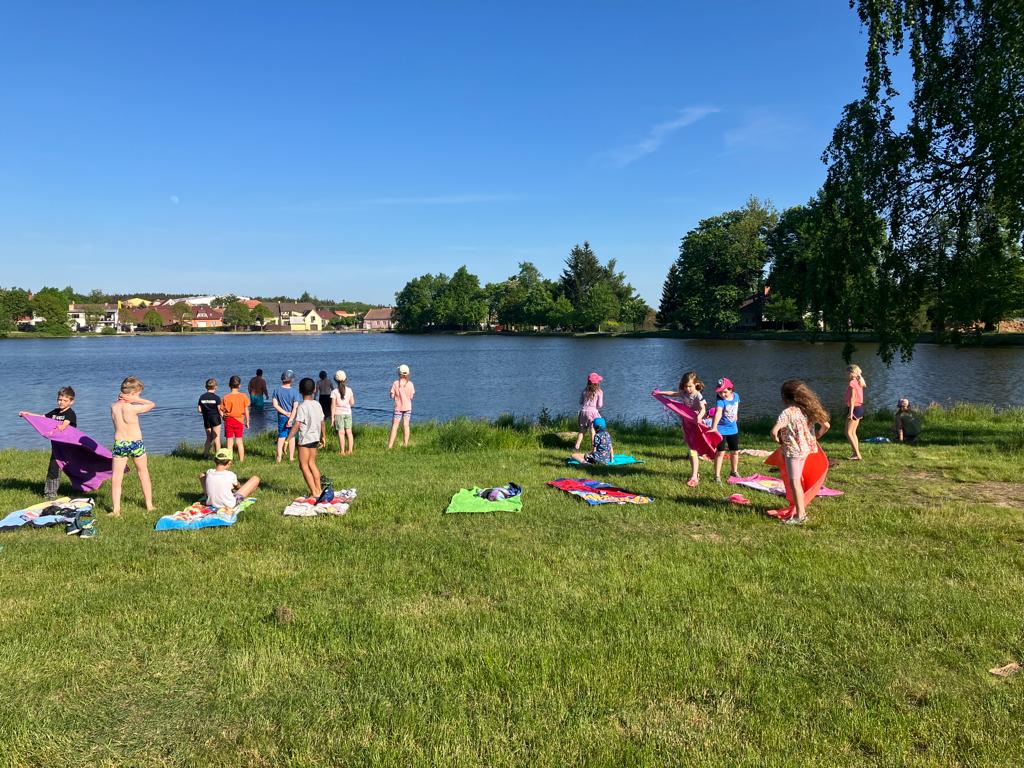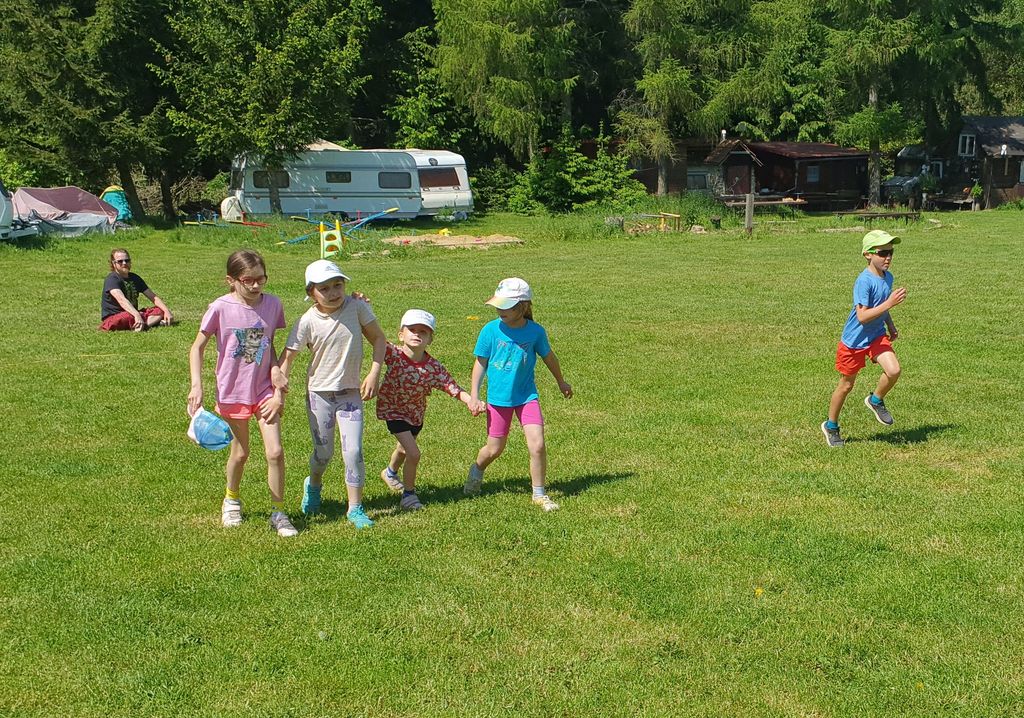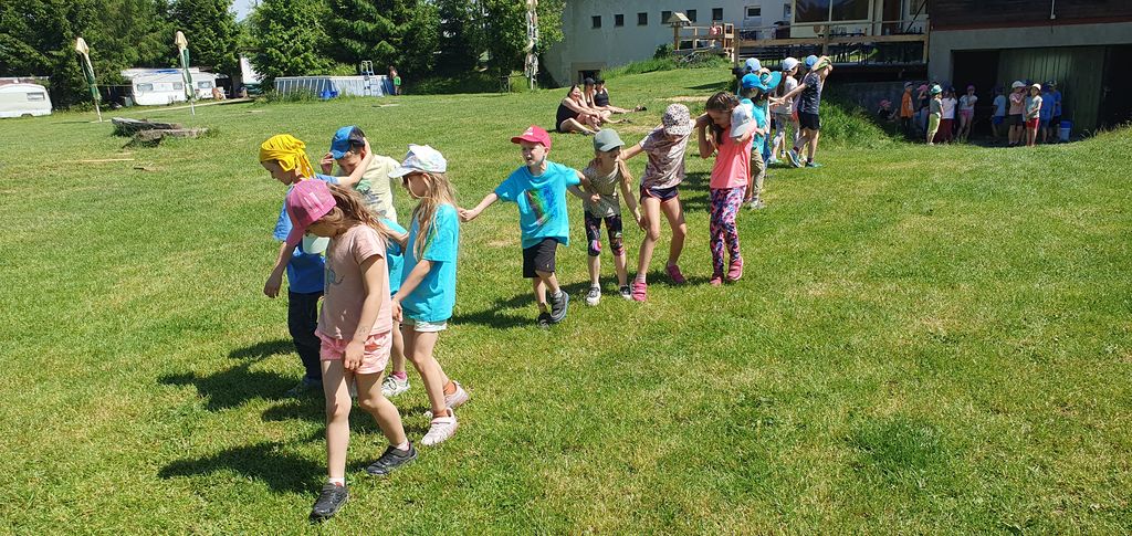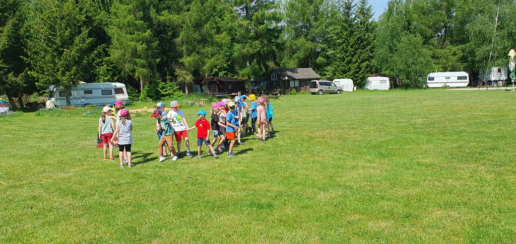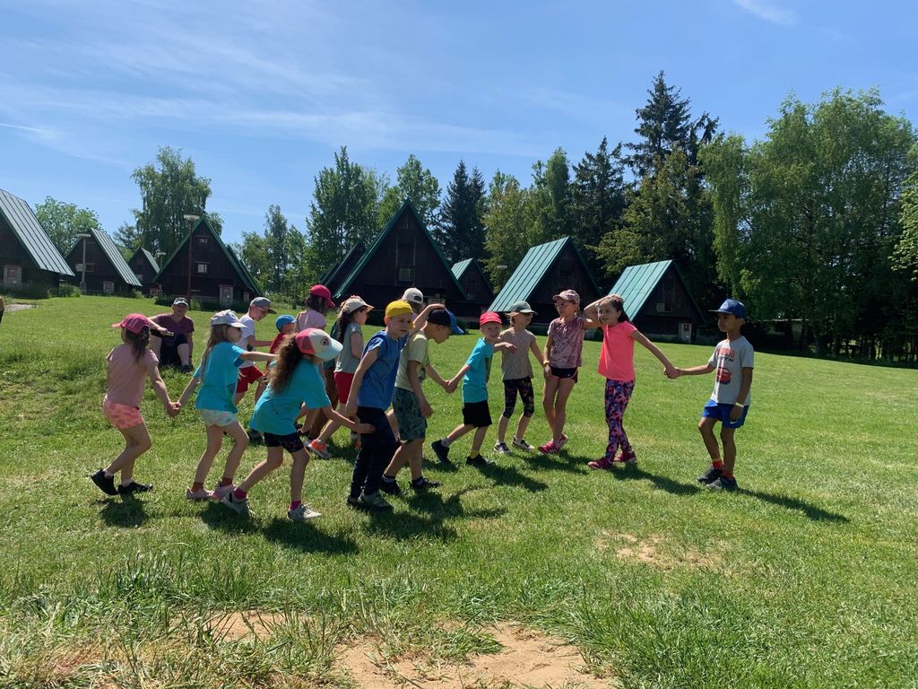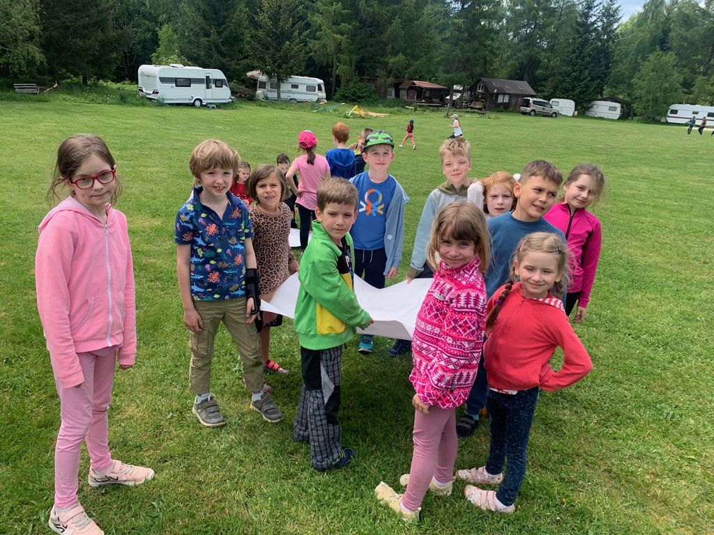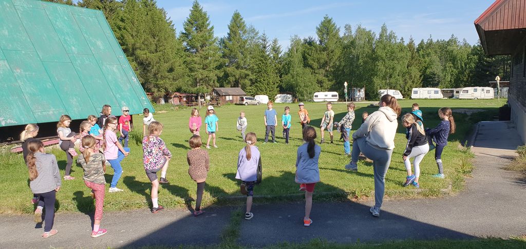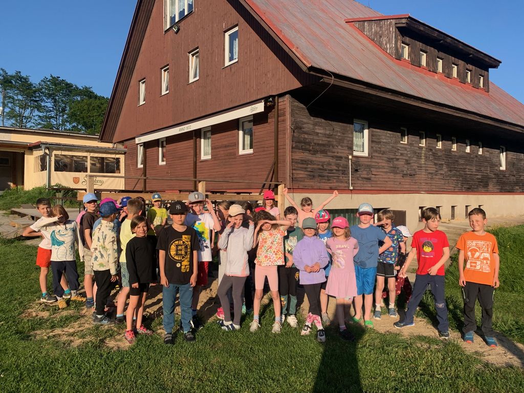 Děti z 1.B a 2.A vyrazily s paními učitelkami a vychovatelkami na 4 dny do Suchého, aby si užívaly sluníčka a přírody. Děti tu tvořily, hrály hry, každé ráno cvičily, a chodily po okolí (celkem nachodily a naběhaly asi 30 km).