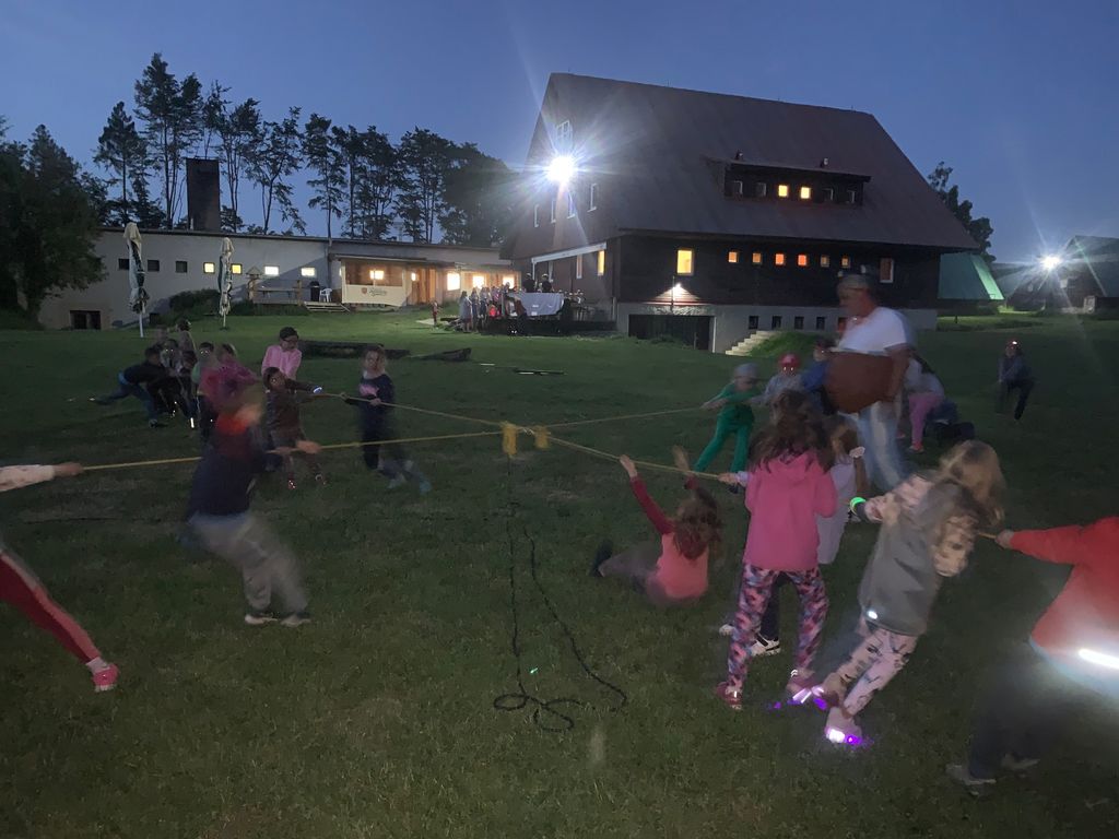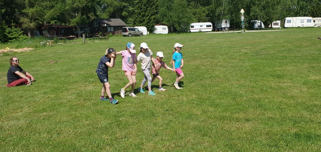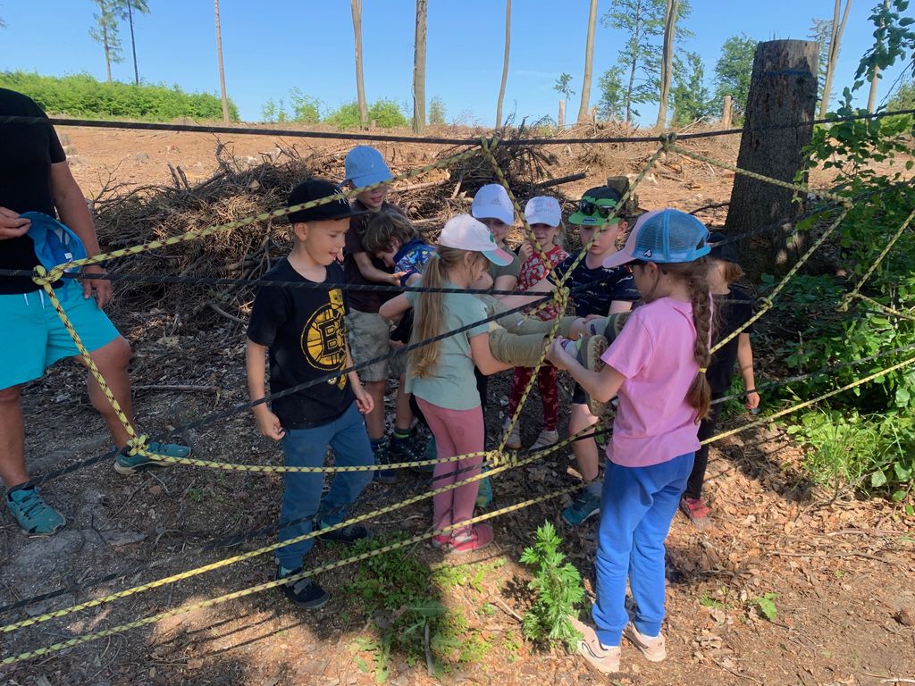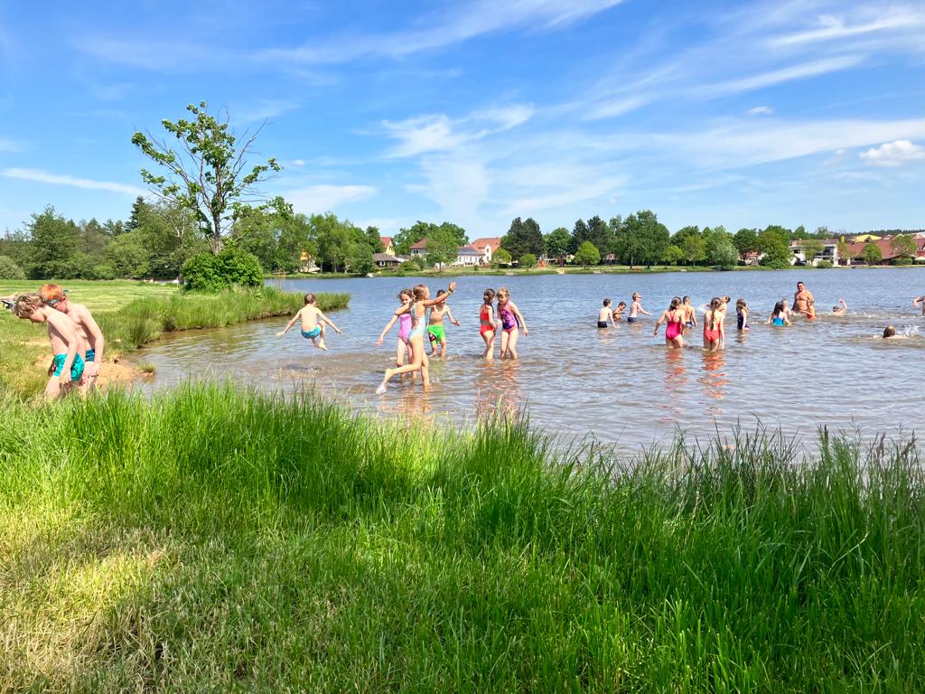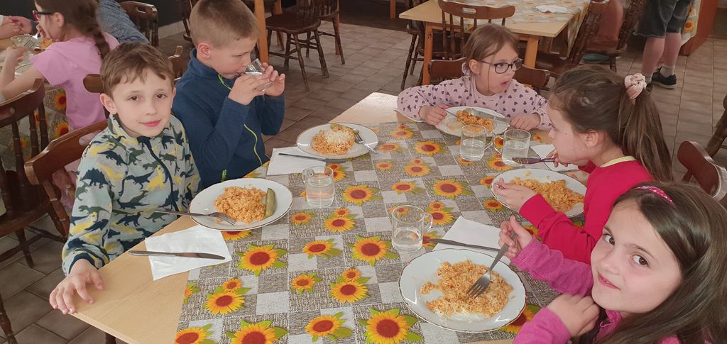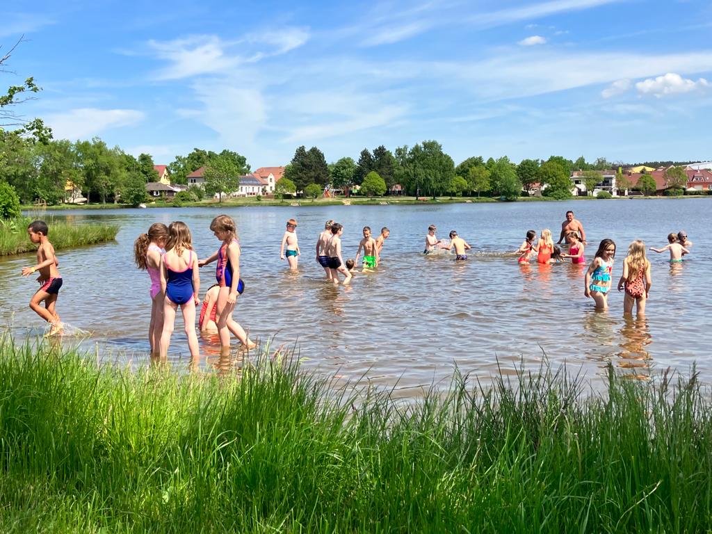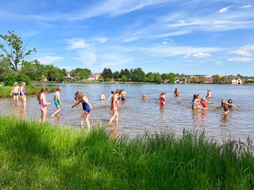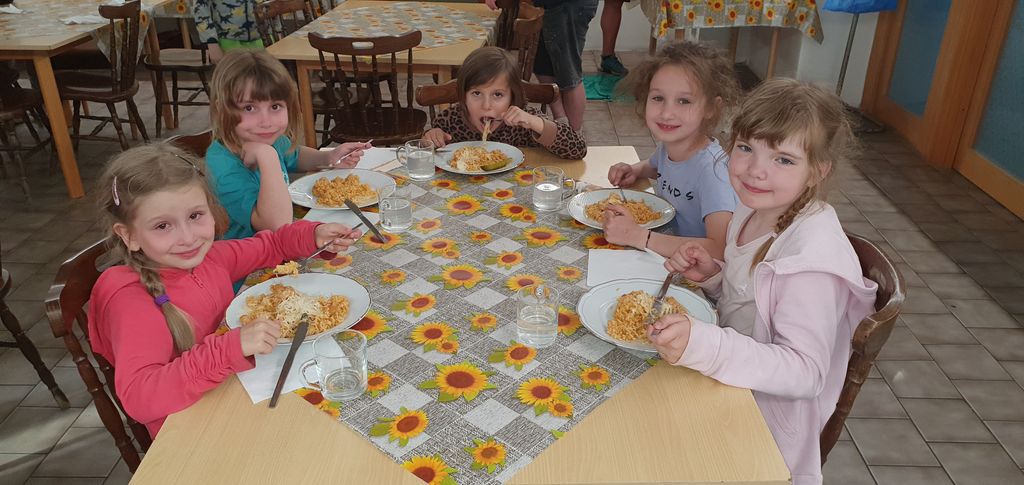 Děti z 1.B a 2.A vyrazily s paními učitelkami a vychovatelkami na 4 dny do Suchého, aby si užívaly sluníčka a přírody. Děti tu tvořily, hrály hry, každé ráno cvičily, a chodily po okolí (celkem nachodily a naběhaly asi 30 km).