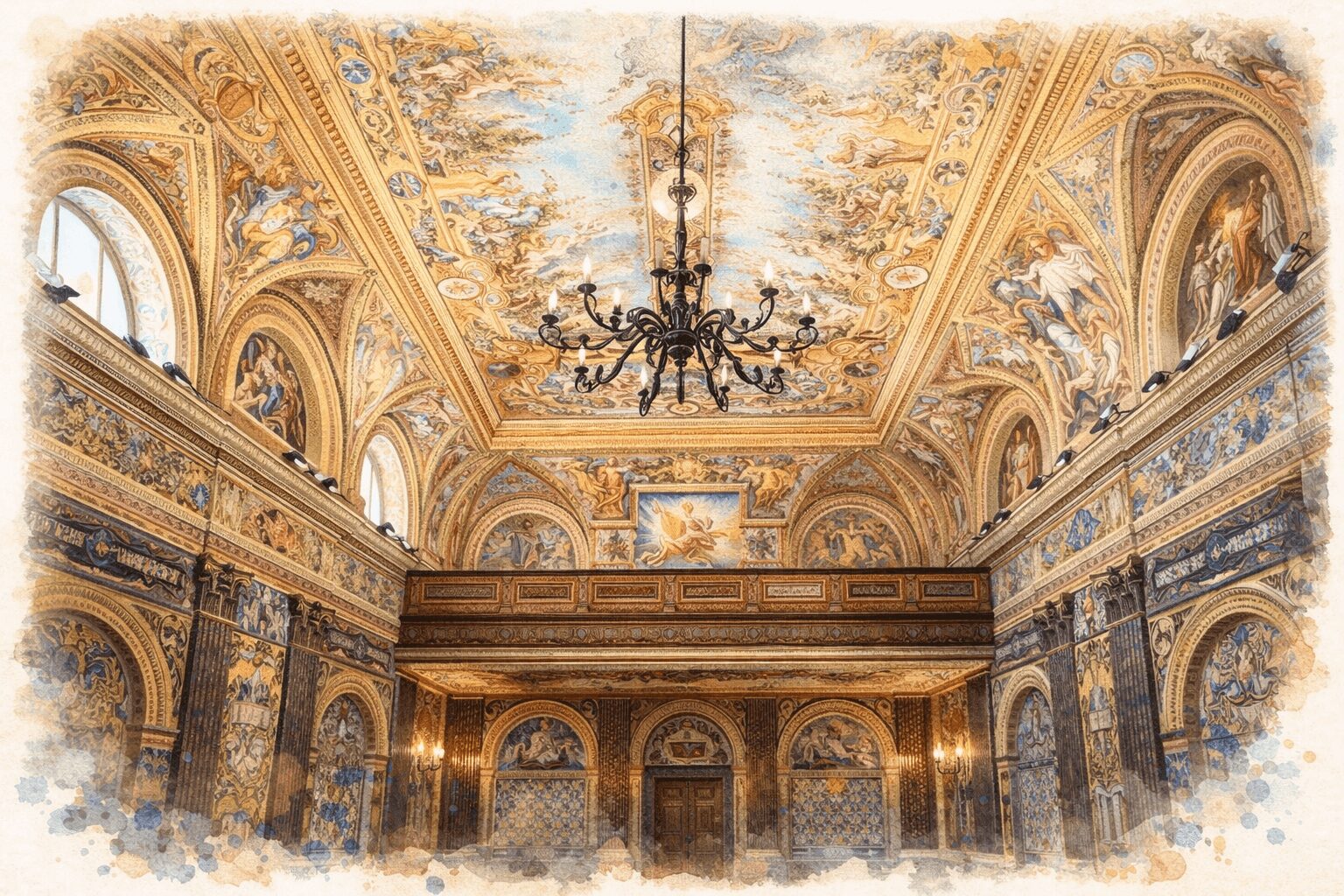 Hlavním autorem freskové výzdoby, na níž se podílelo více tvůrců, je pravděpodobně malíř José Hilber, a vznikla roku 1892.