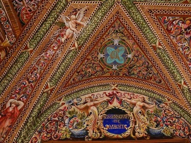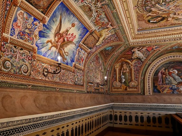 Slavnostní freskový sál je na všech stěnách i na stropě vyzdoben ve stylu neorenesančního dekorativismu s prvky barokního iluzionismu. Diváka při pohledu na výzdobu sálu fascinuje hustota a složitost výjevů i ornamentálních prvků. Obdobná malířská výzdoba v takovém rozsahu a provedení je unikátem, který nemá v tuzemsku srovnání.
