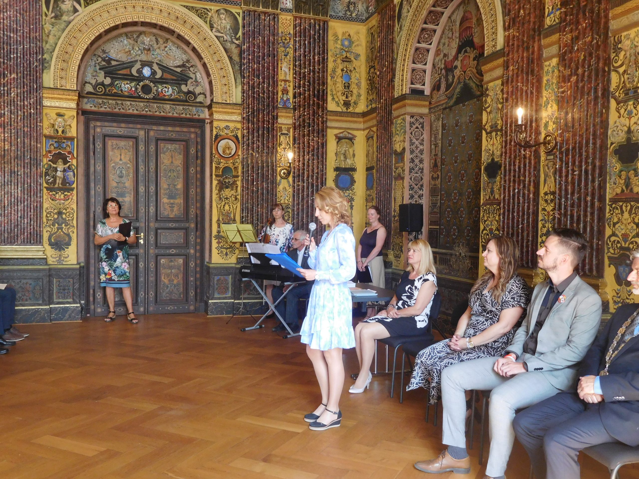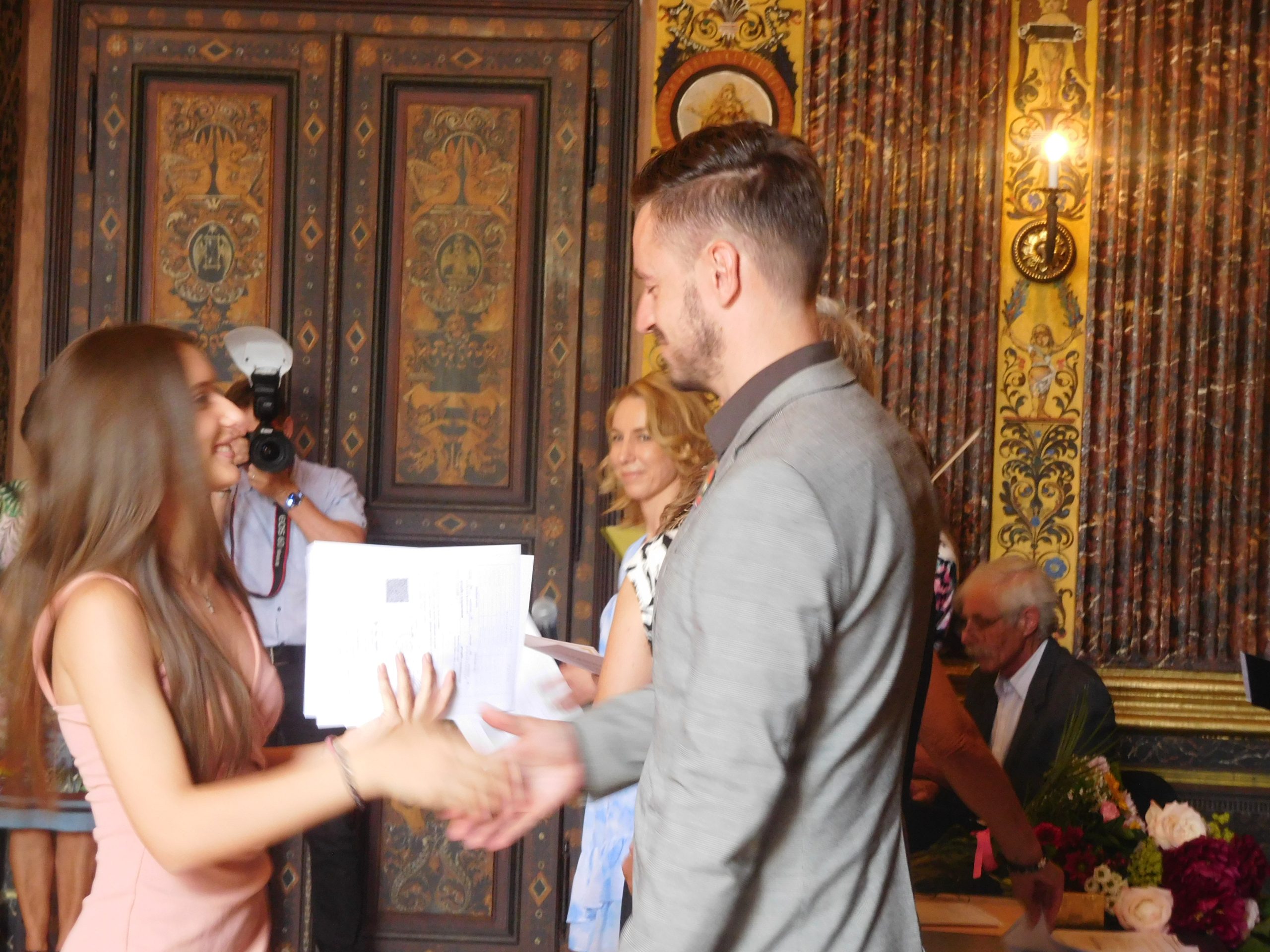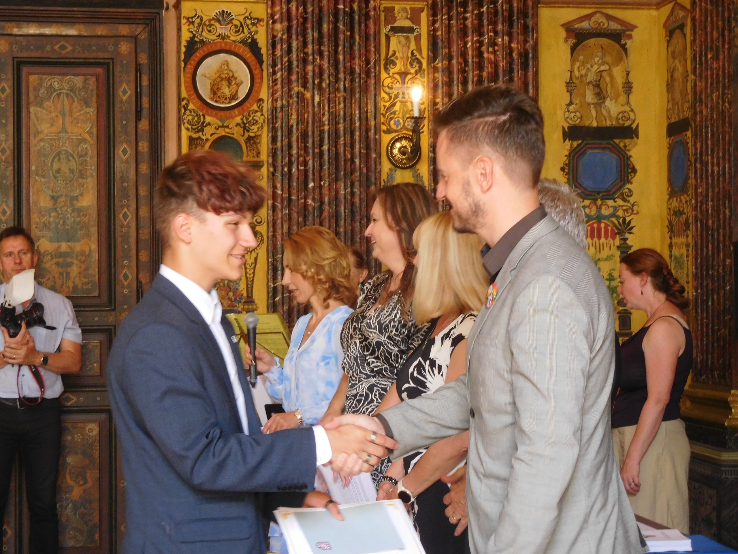 Ano, je to tady! Po devíti letech docházky nás opouštějí ti naši nejstarší. A my ostatní jsme se s nimi slavnostně rozloučili. A kde jinde než ve freskovém sále školy. Za účasti představitelů města Olomouce, vedení školy, všech učitelů, kteří je od první třídy učili, samozřejmě také rodičů si převzali své poslední vysvědčení na základní škole, pamětní list a knížku s přáními pedagogů. I oni si připravili pro své učitele poděkování a dárečky. Také díky hudebním vystoupením i české hymně byla atmosféra opravdu slavnostní a dojemná, objevila se i nejedna slzička. Vždyť jim začíná další etapa života – po zasloužených prázdninách nastoupí na střední školy. Všichni se na ně dostali a my jim přejeme, aby byli spokojení a úspěšní.
