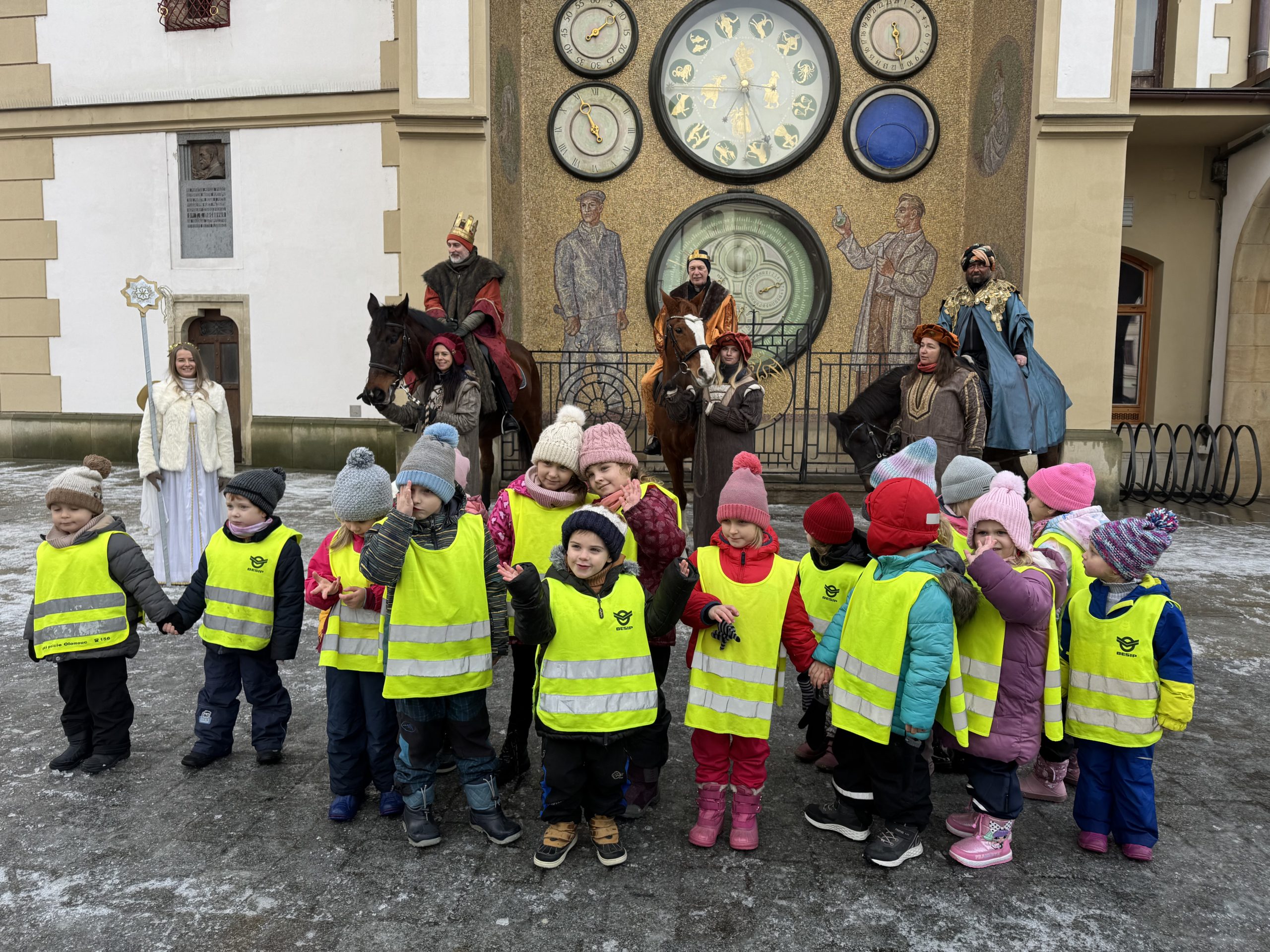 V pondělí dne 6. 1. si děti připomněly svátek Tří králů. Program se konal na Horním náměstí u radnice, kde proběhlo uvítání a průvod králů na koních, děti si poslechly vystoupení pěveckého sboru, a na závěr se se třemi králi mohly vyfotit.