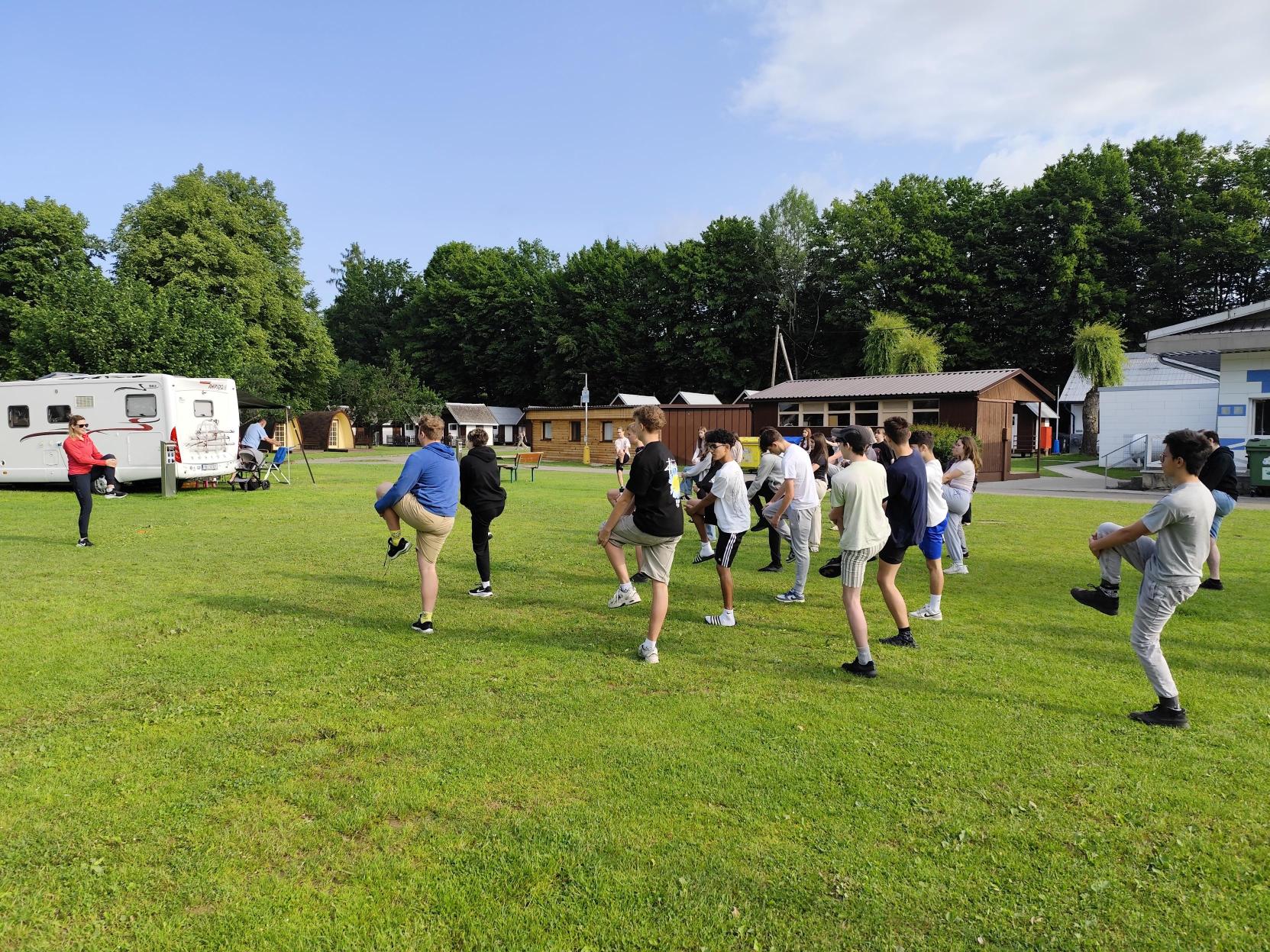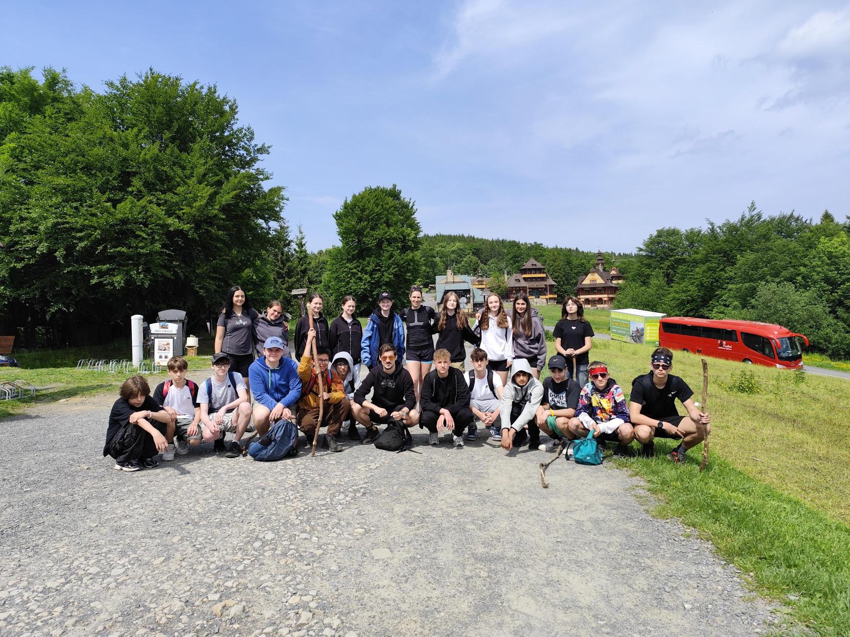 Ve dnech 9. – 12. června jsme se s našimi žáky vydali na čtyřdenní turistický kurz do malebného Rožnova pod Radhoštěm. Ubytovali jsme se v kempu nedaleko centra a společně jsme si užili aktivní i pohodový program v krásné přírodě Beskyd. První den jsme po příjezdu vlakem vyrazili pěšky do kempu a po obědě nás čekala příjemná procházka ke zřícenině hradu Rožnov. Hned od začátku panovala skvělá nálada a všichni si užívali společný čas venku. Druhý den patřil výšlapu na Radhošť a Pustevny. Žáci byli rozděleni do skupin podle náročnosti trasy – od pohodových procházek po náročnější výstup. Každý si tak mohl zvolit tempo, které mu vyhovovalo. Celý den jsme strávili na čerstvém vzduchu a žáci si odnesli nejen zážitky, ale i pocit, že něco zvládli. Ve středu jsme dopoledne odpočívali nebo sportovali v areálu kempu. Odpoledne jsme navštívili Valašské muzeum v přírodě, kde se žáci blíže seznámili s tradicemi, řemesly i historií valašského kraje. Den jsme zakončili společným táborákem s opékáním špekáčků a marshmallows. Ve čtvrtek jsme po snídani sbalili batohy, uklidili chatky a vydali se na cestu domů. Všichni dorazili unavení, ale spokojení a plní zážitků. Velké poděkování patří všem žákům za skvělou spolupráci a zodpovědný přístup. Byl to vydařený kurz a věříme, že na něj budou ještě dlouho vzpomínat.