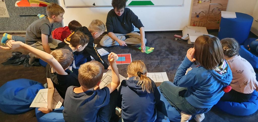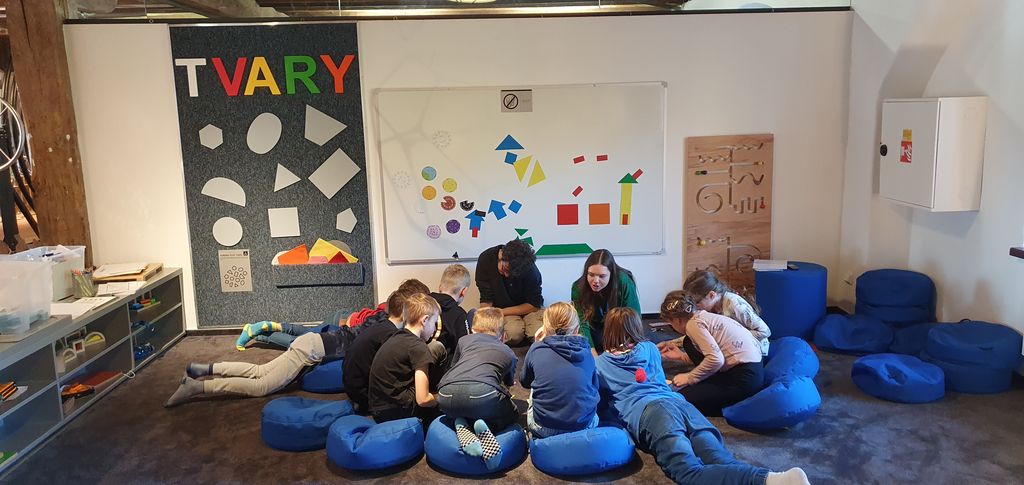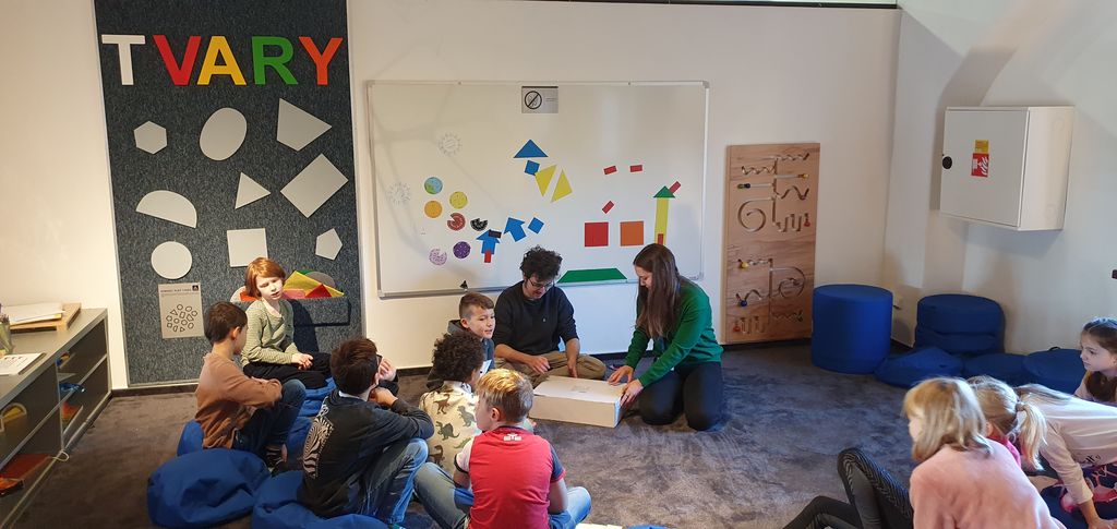 Úterní dopoledne, 7.11, si děti ze 3.A užily v Pevnosti poznání. Ve vzdělávacím programu Tvary světa děti odhalovaly kouzlo matematiky v podobě geometrie. Prostřednictvím zajímavých úkolů a pohybových aktivit si hravě zopakovaly základní rovinné a prostorové geometrické útvary. Zároveň si tak procvičily geometrickou představivost, díky které dokáží vnímat svět kolem sebe jako geometrické obrazce a tělesa.