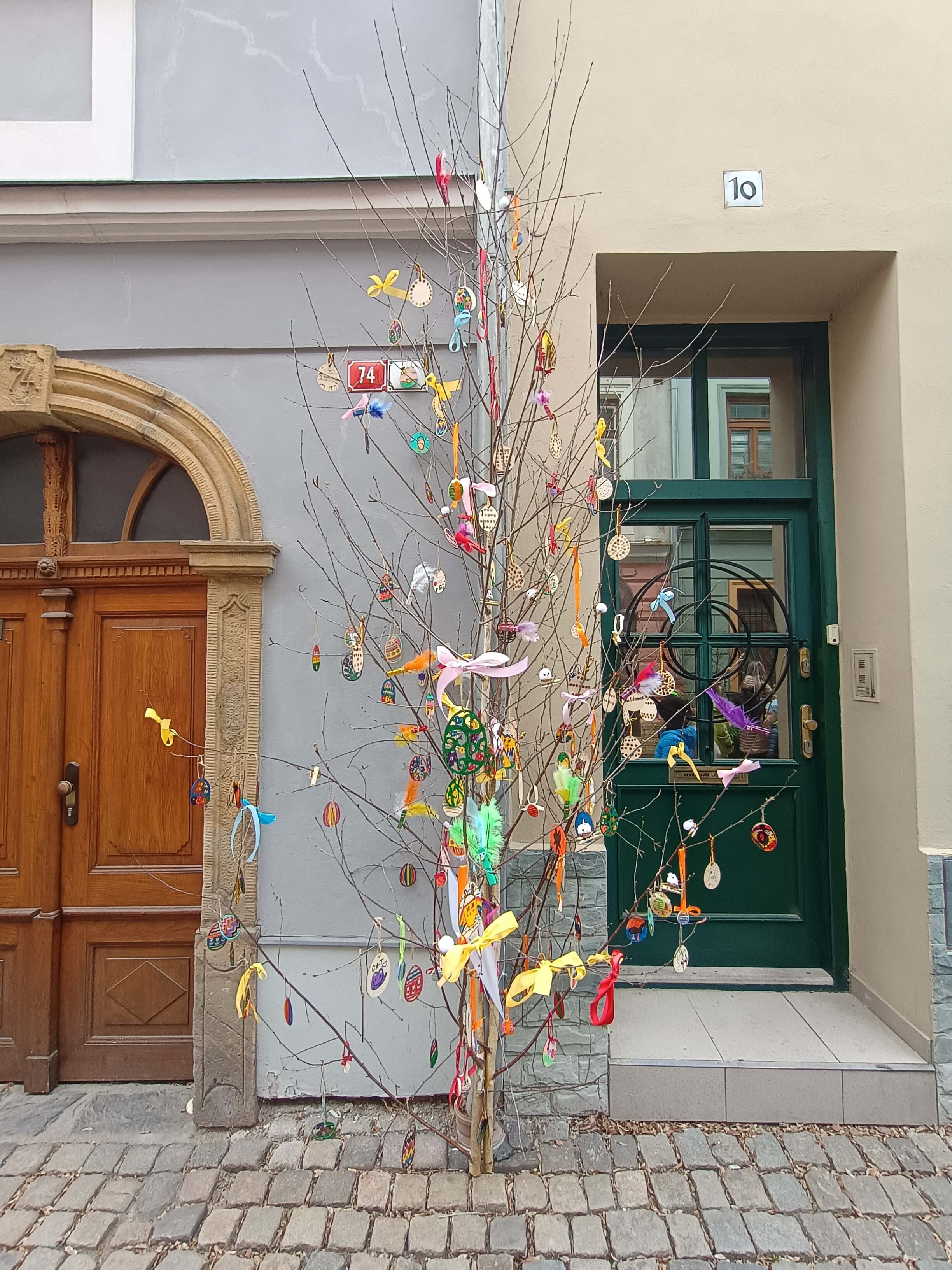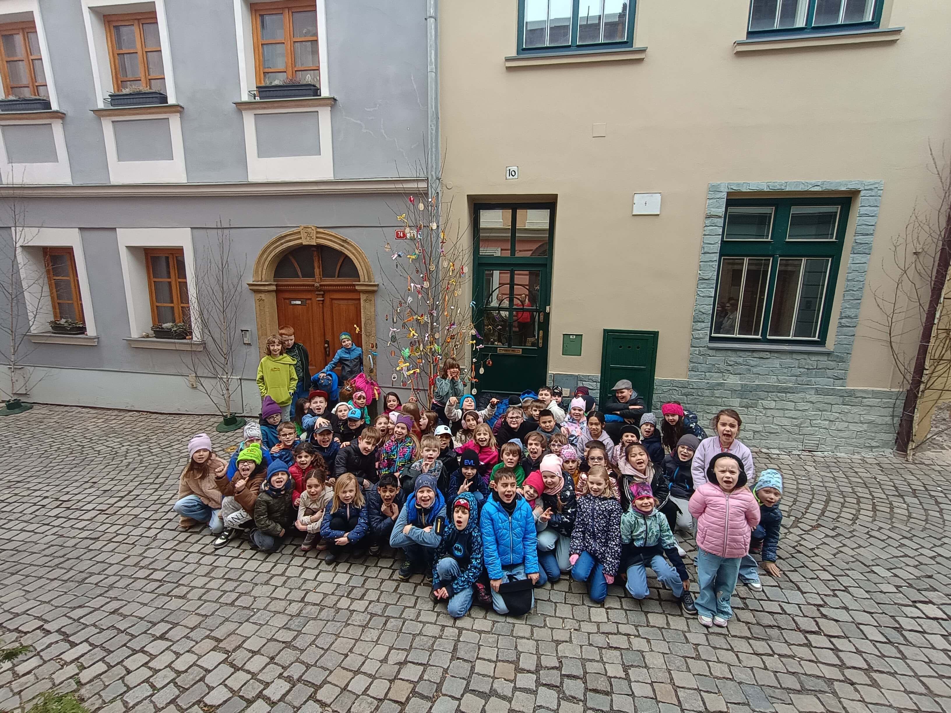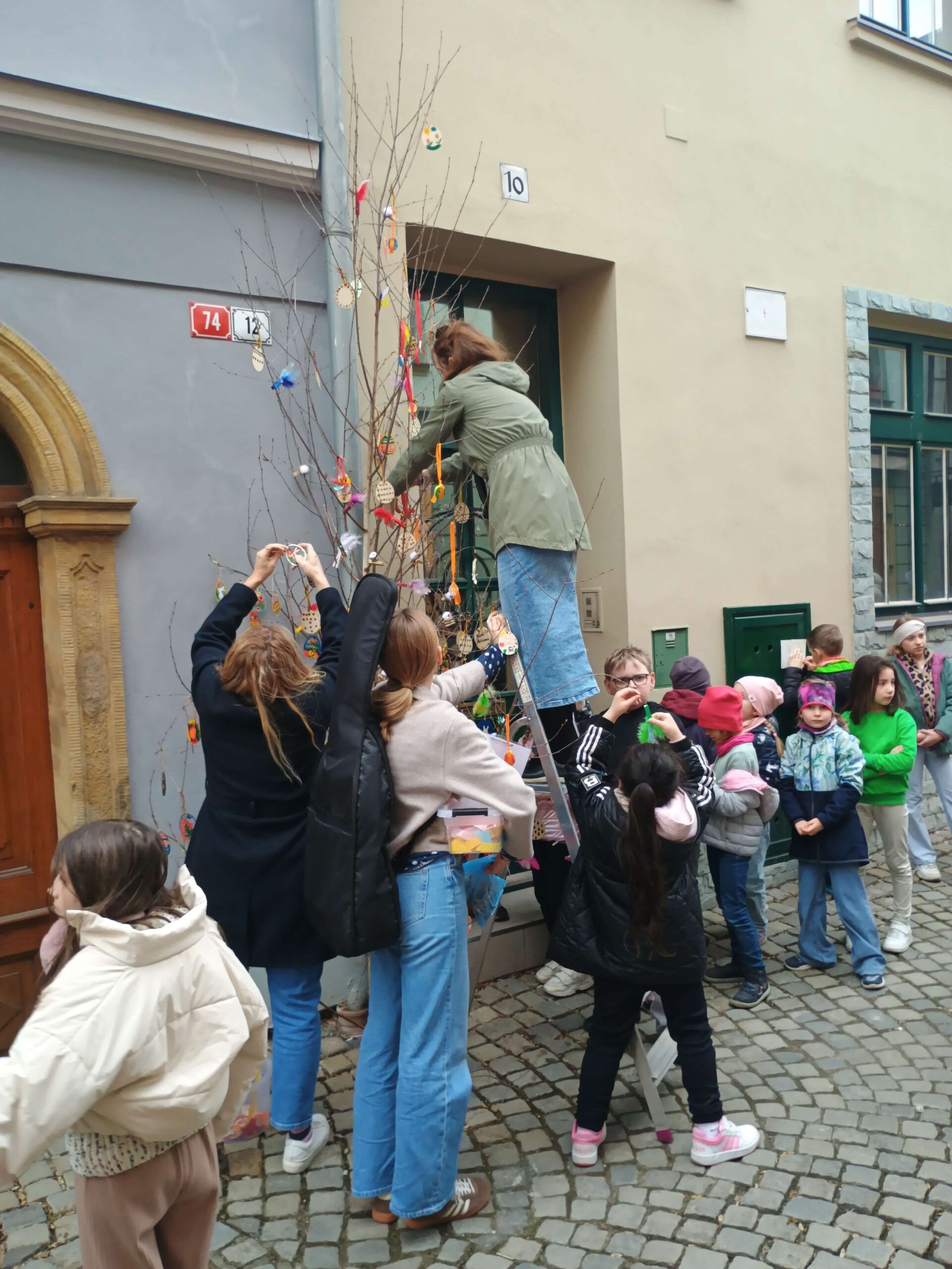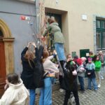 Na Velikonoce jsme společně všechny oddělení družiny připravily a vyrobily spoustu dřevěných vajíček a jiných ozdob a za doprovodu kytary a zpěvu, ozdobily naši břízku v Šemberové ulici.
