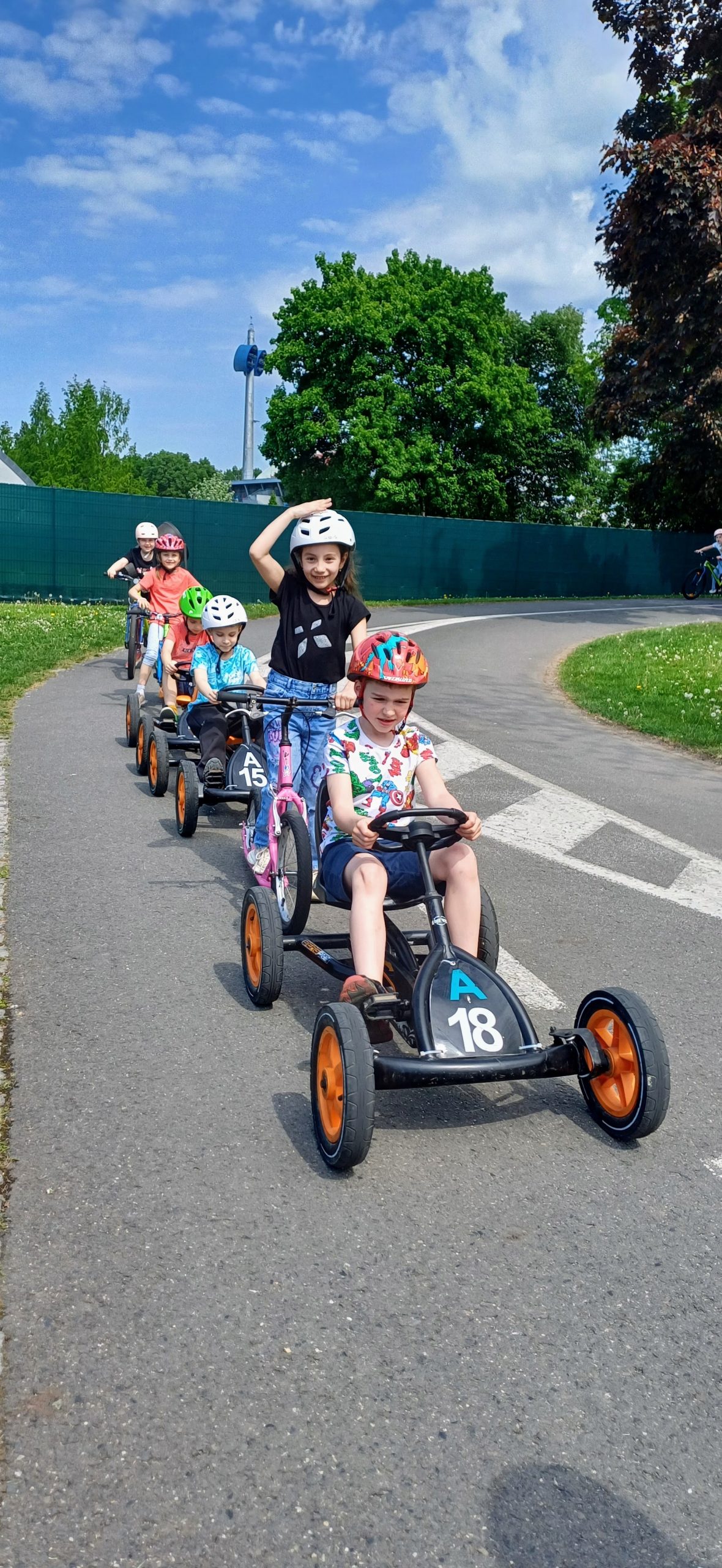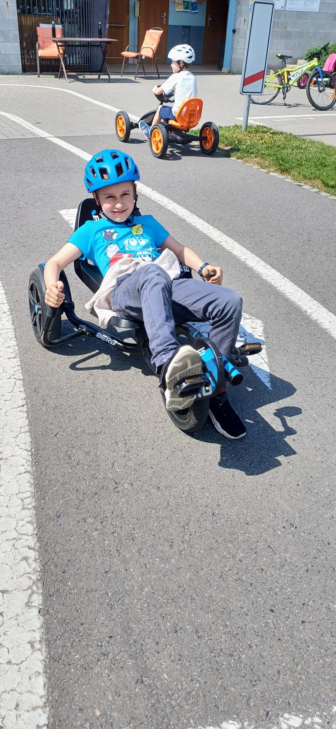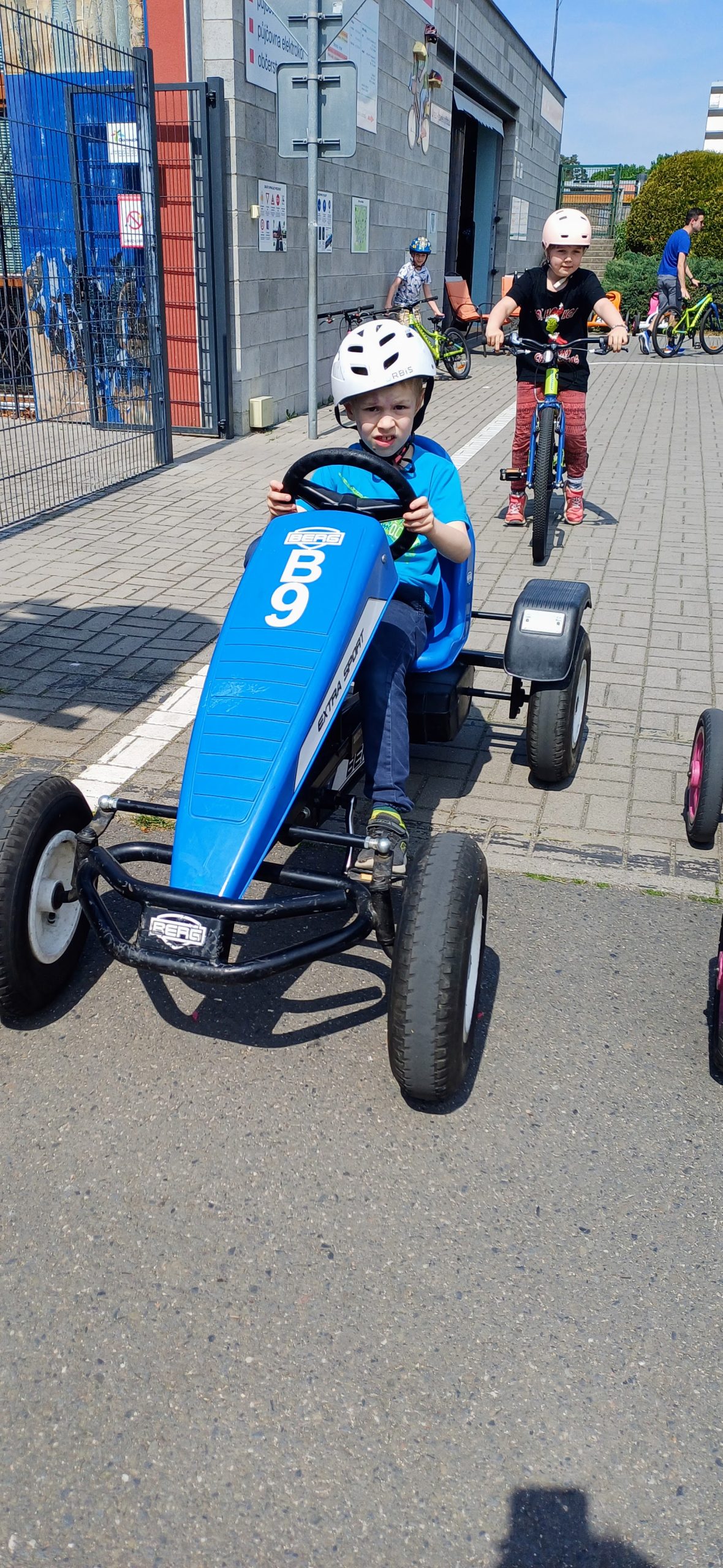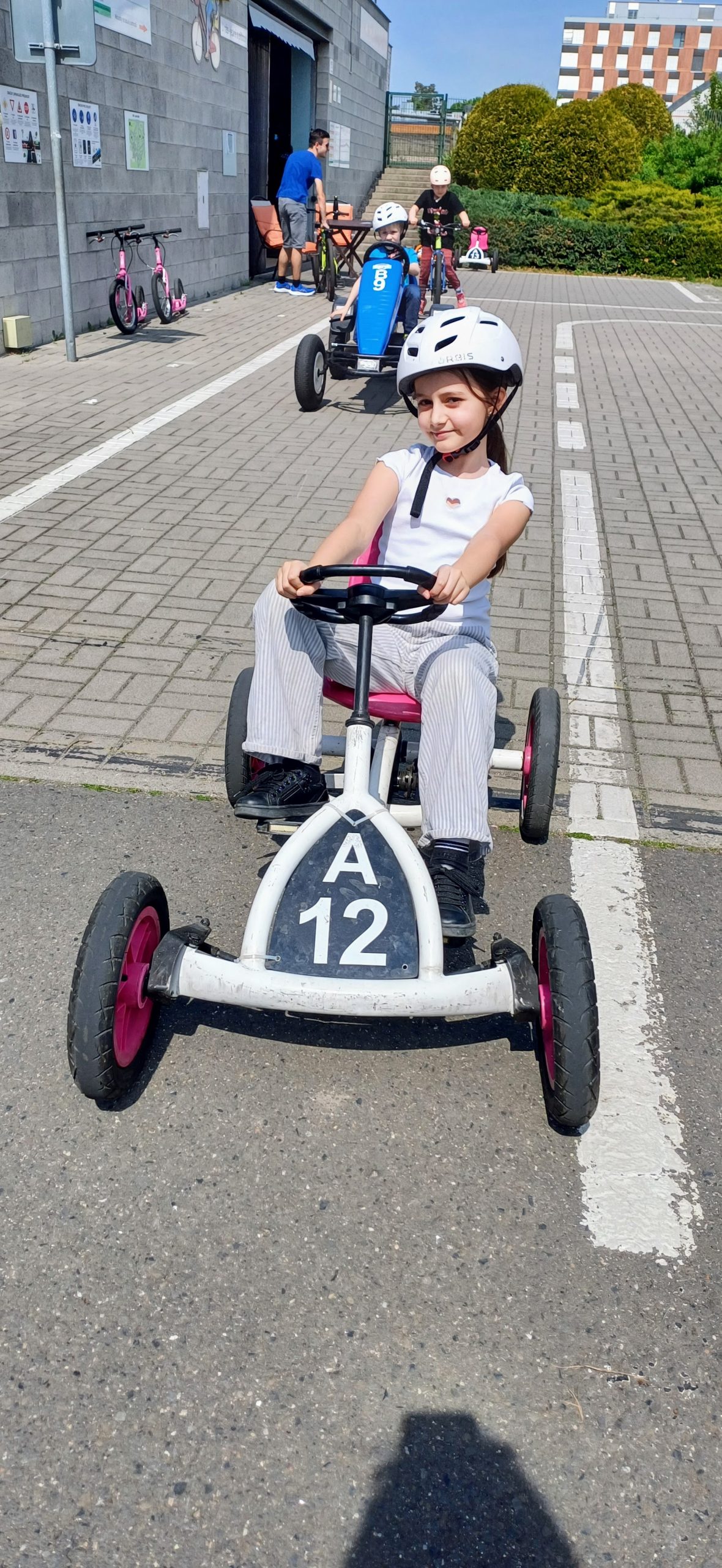 Hned poté se děti s nadšením rozběhly k zapůjčeným koloběžkám a šlapacím autíčkům. S úsměvem na tváři projížděly křižovatky, dávaly přednost v jízdě a učily se správně reagovat na dopravní značky. Bylo skvělé sledovat, s jakou zodpovědností se k plnění úkolů postavily.