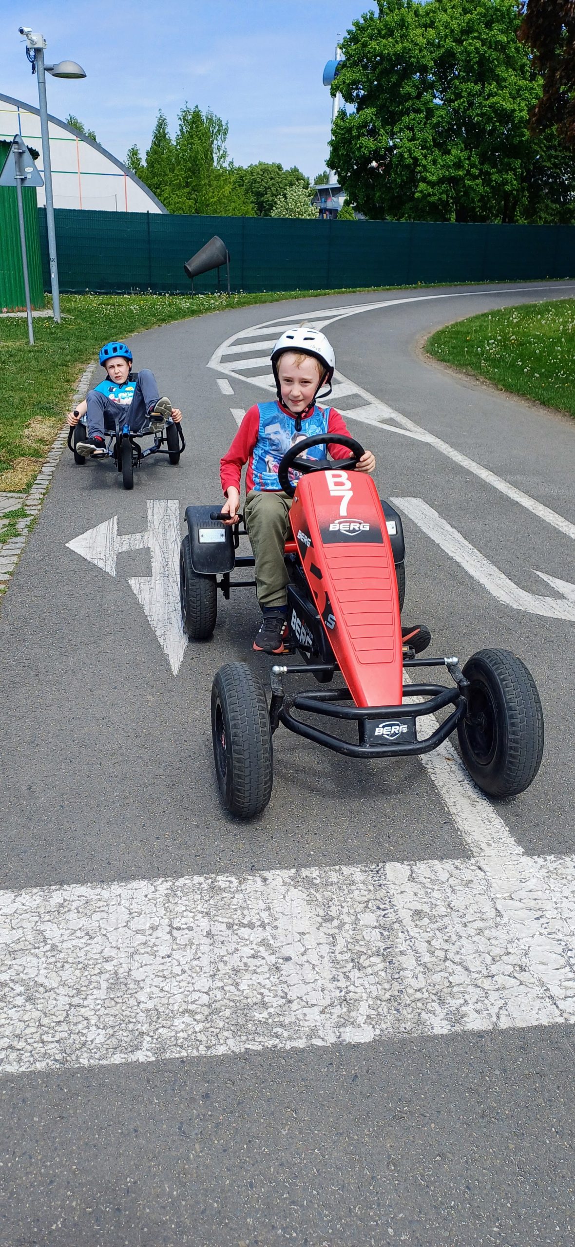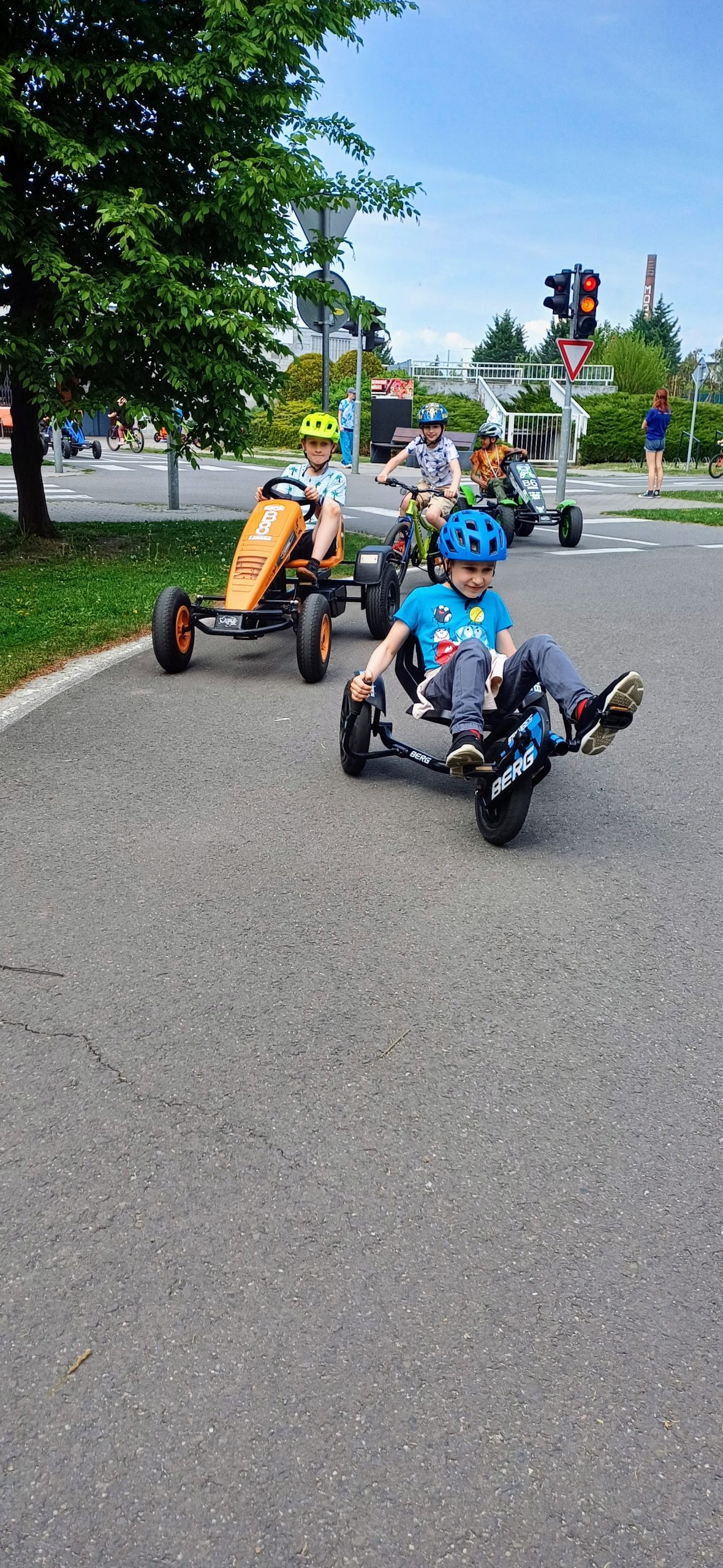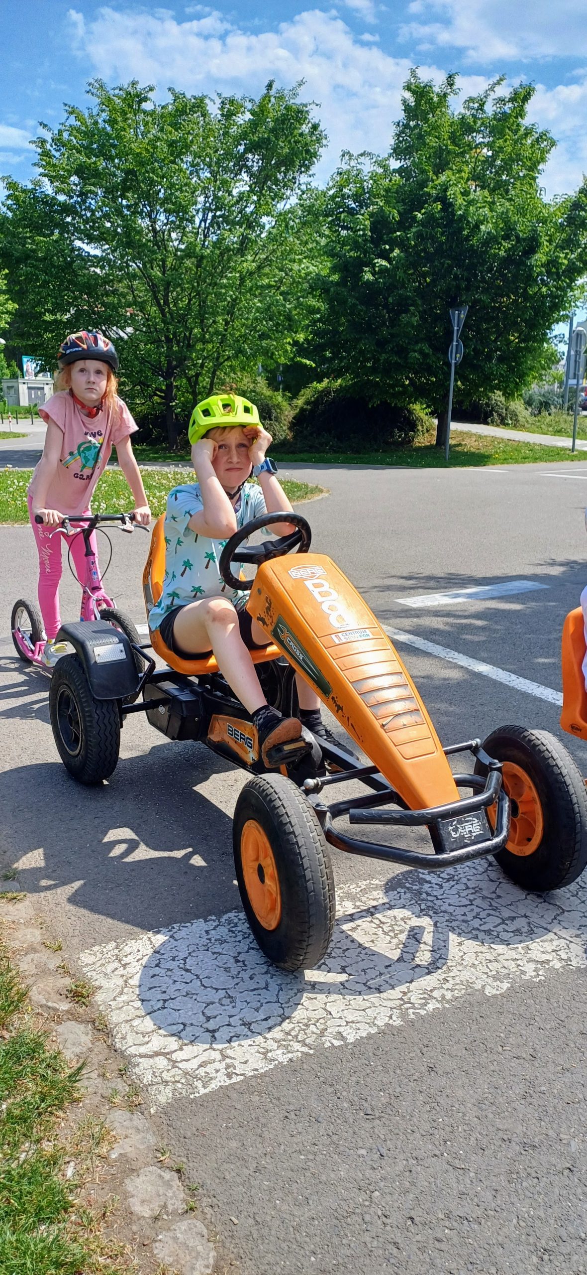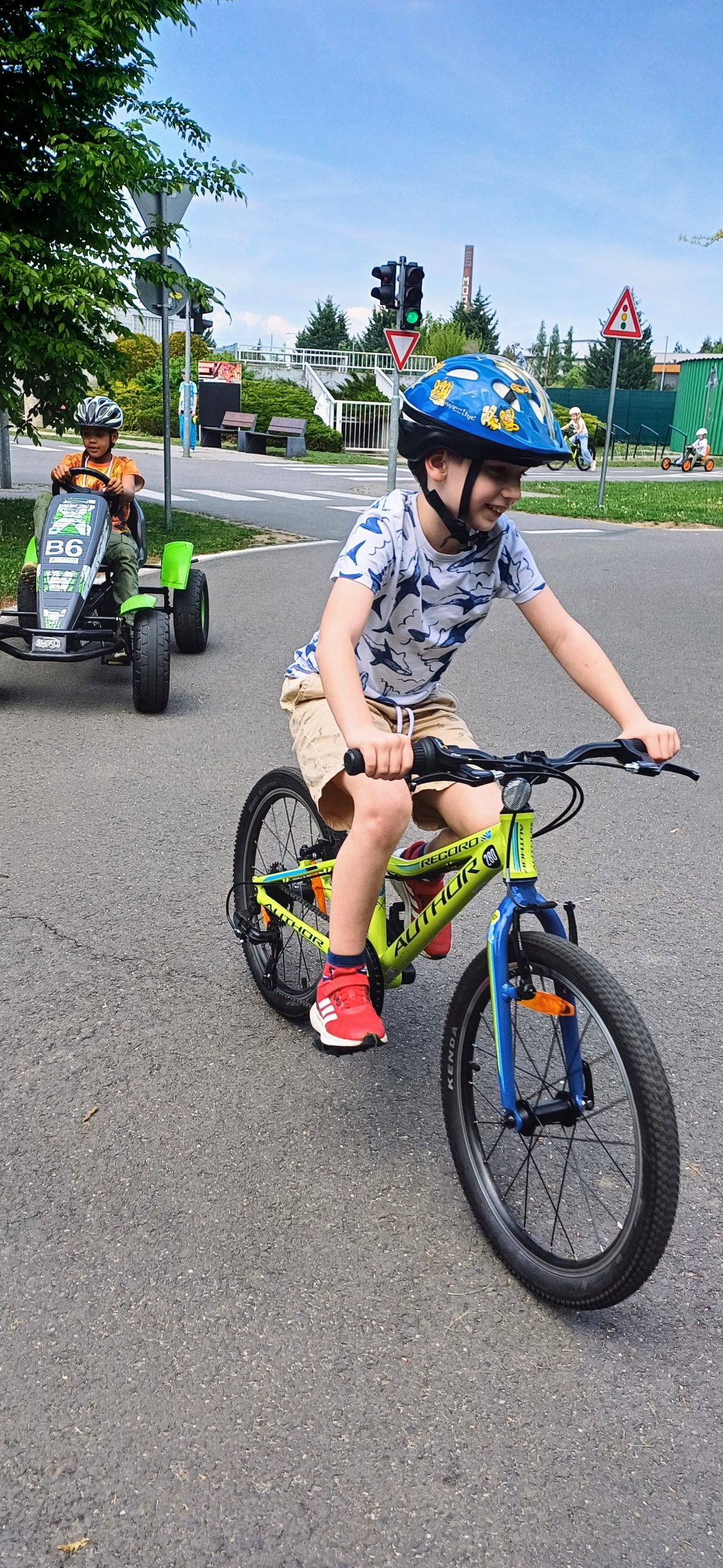 Hned poté se děti s nadšením rozběhly k zapůjčeným koloběžkám a šlapacím autíčkům. S úsměvem na tváři projížděly křižovatky, dávaly přednost v jízdě a učily se správně reagovat na dopravní značky. Bylo skvělé sledovat, s jakou zodpovědností se k plnění úkolů postavily.