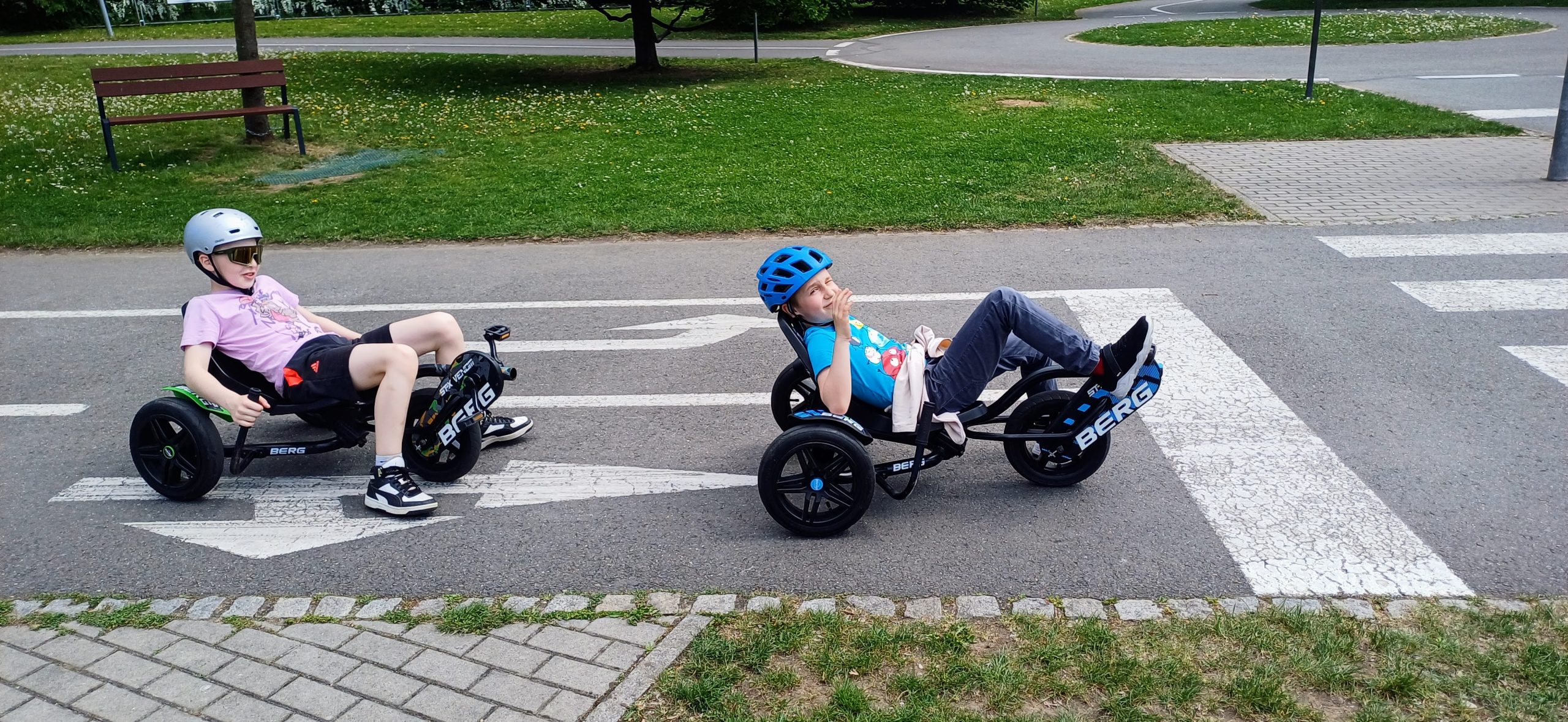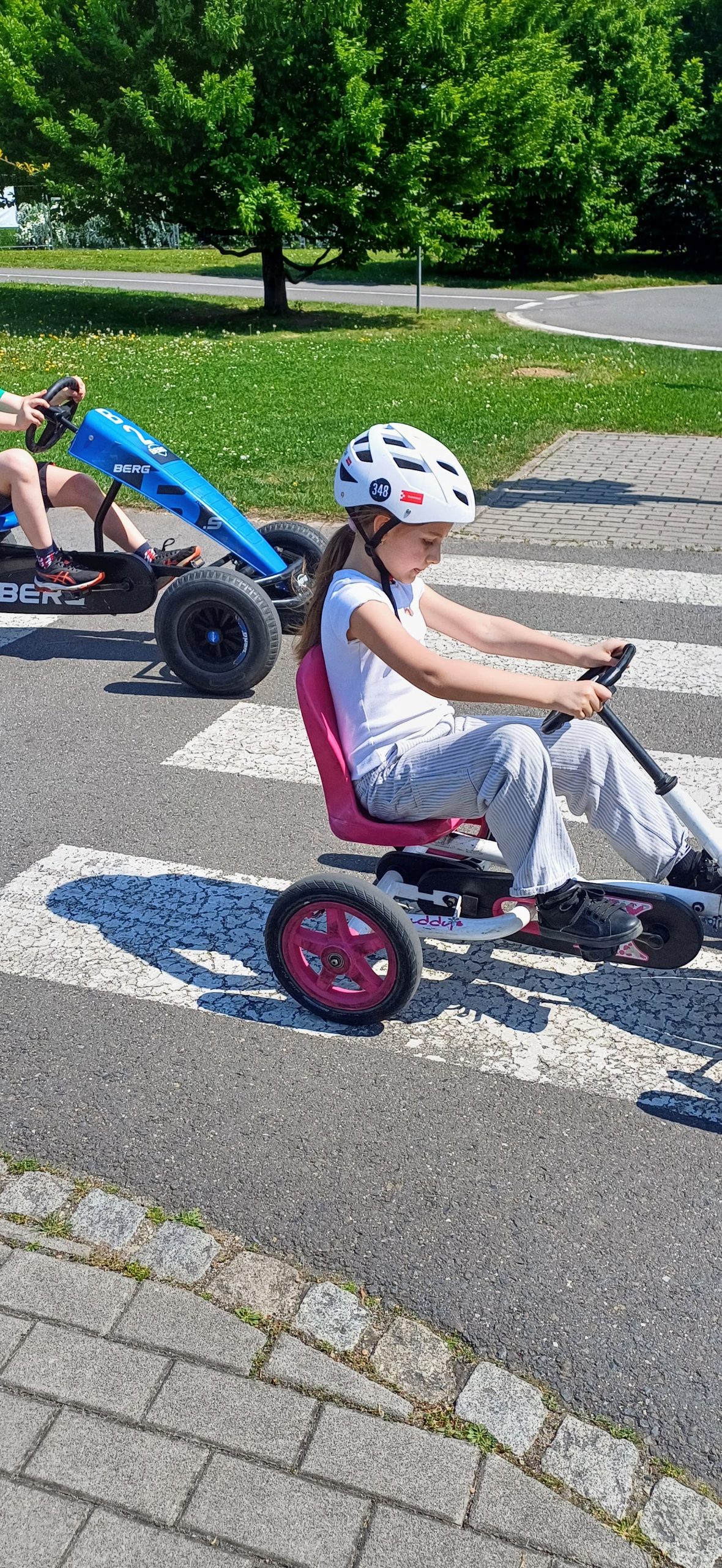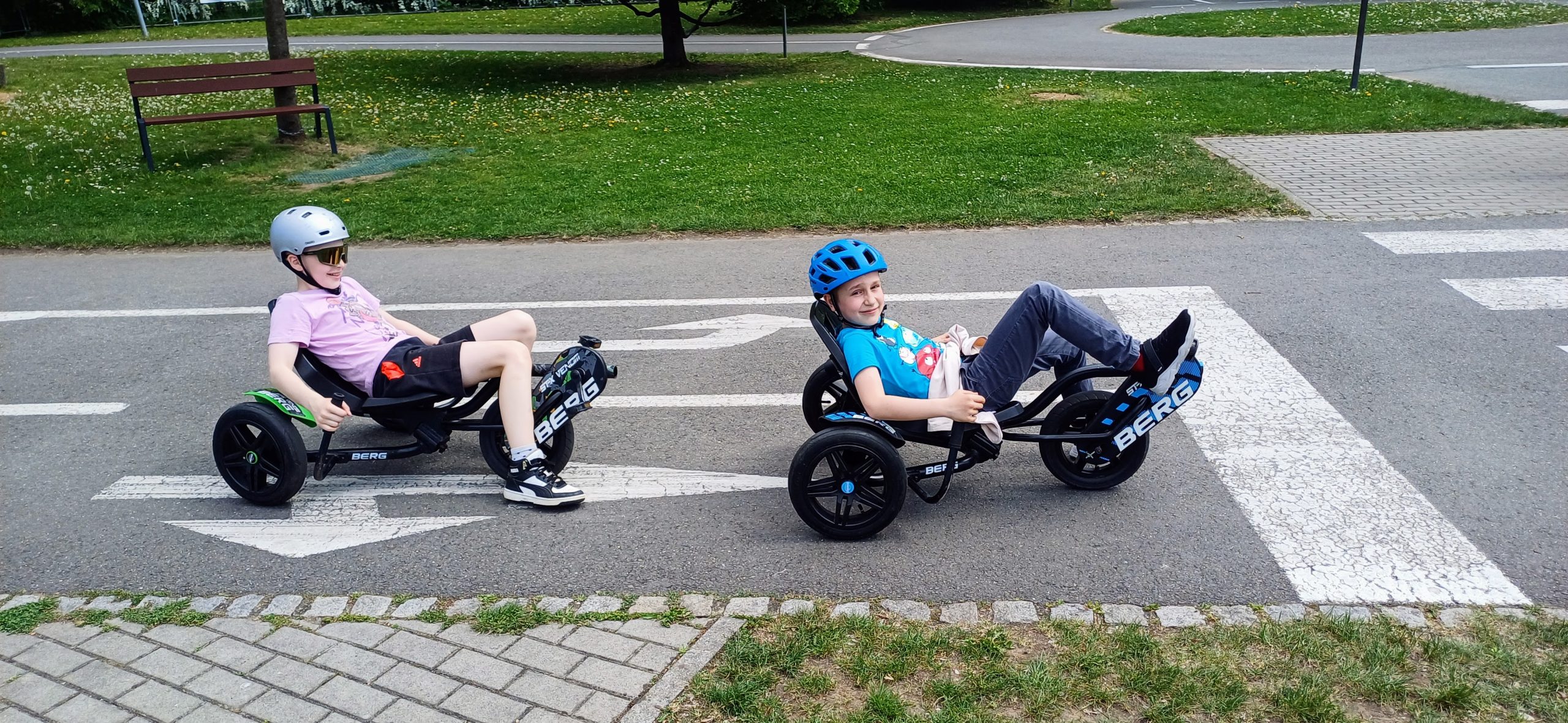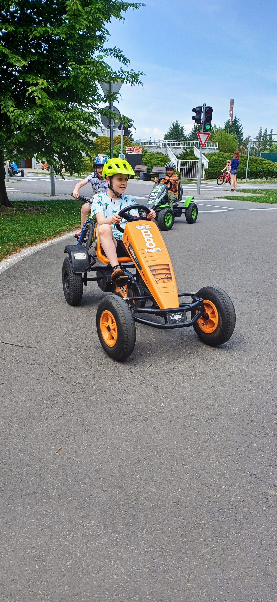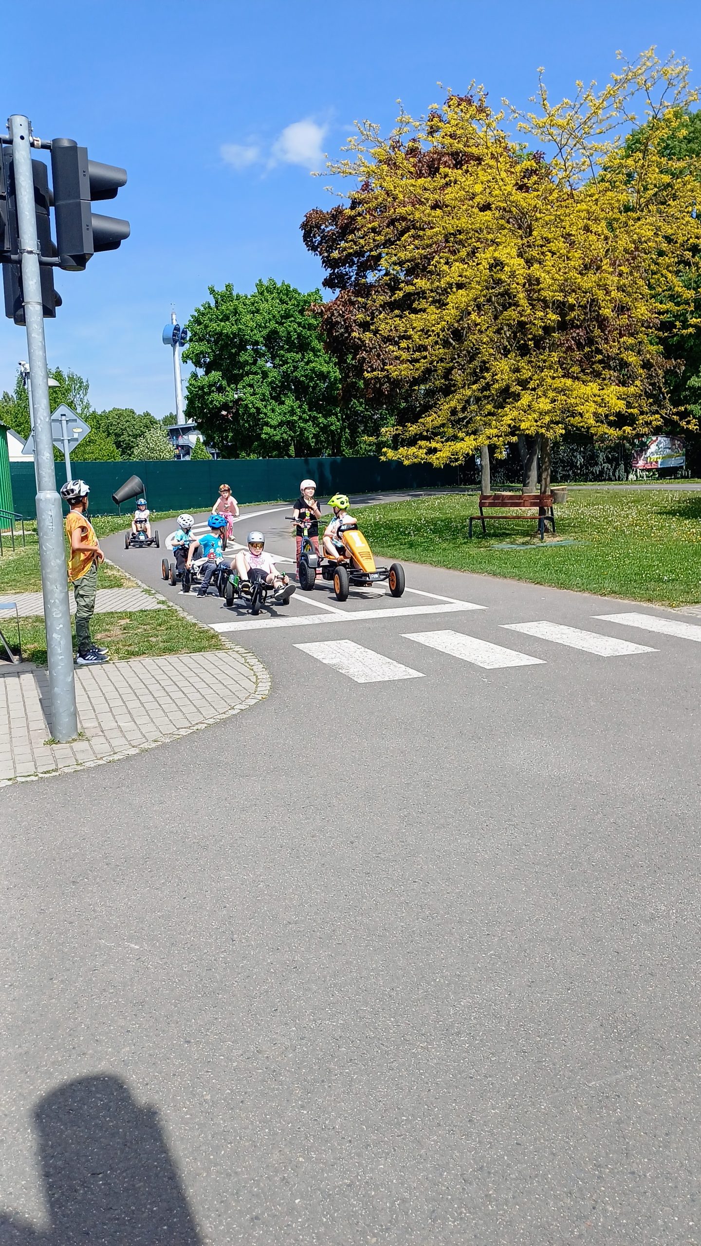 Hned poté se děti s nadšením rozběhly k zapůjčeným koloběžkám a šlapacím autíčkům. S úsměvem na tváři projížděly křižovatky, dávaly přednost v jízdě a učily se správně reagovat na dopravní značky. Bylo skvělé sledovat, s jakou zodpovědností se k plnění úkolů postavily.
