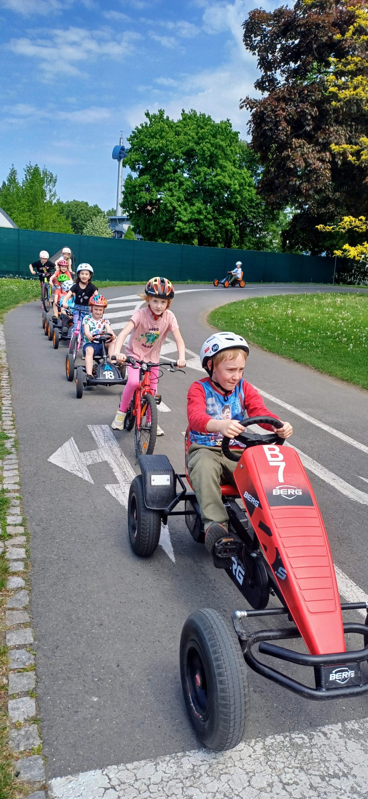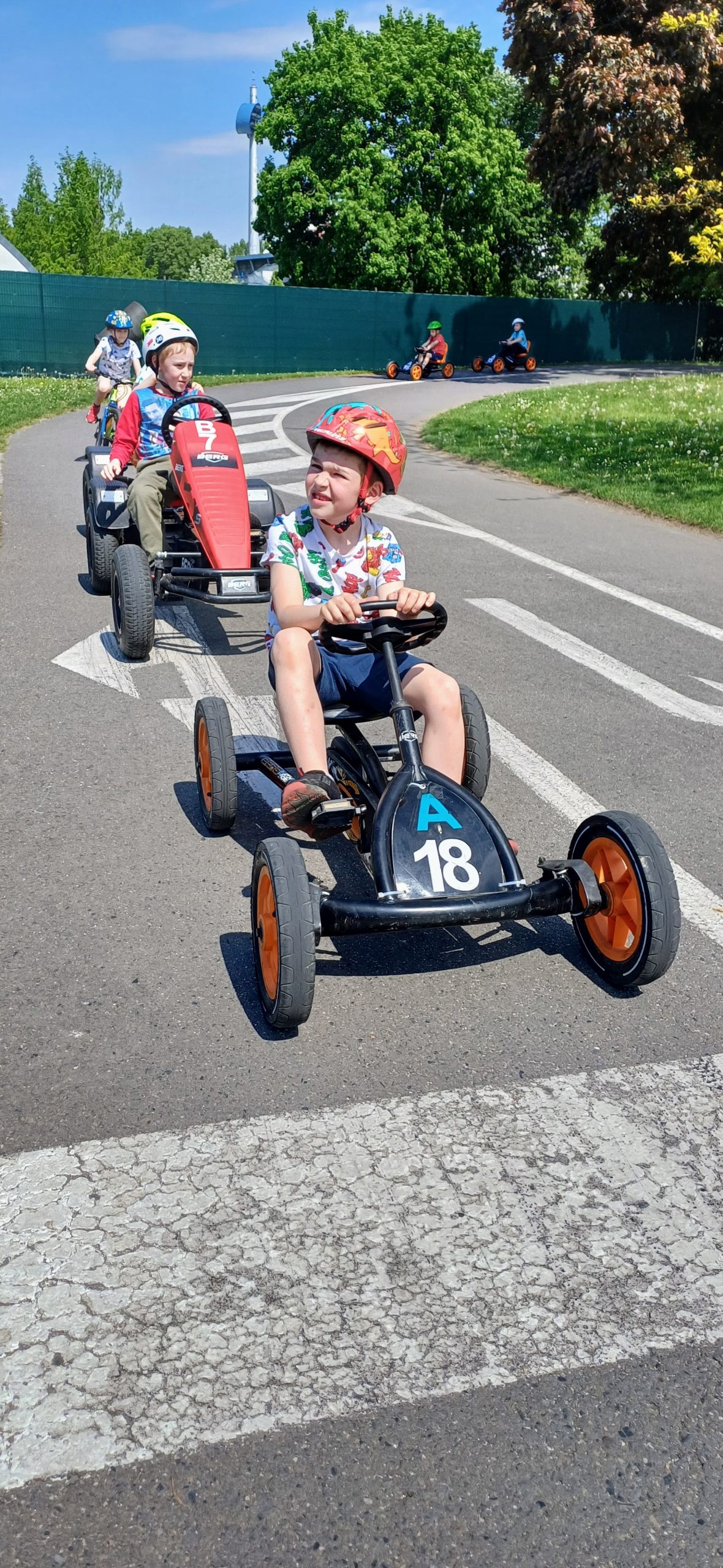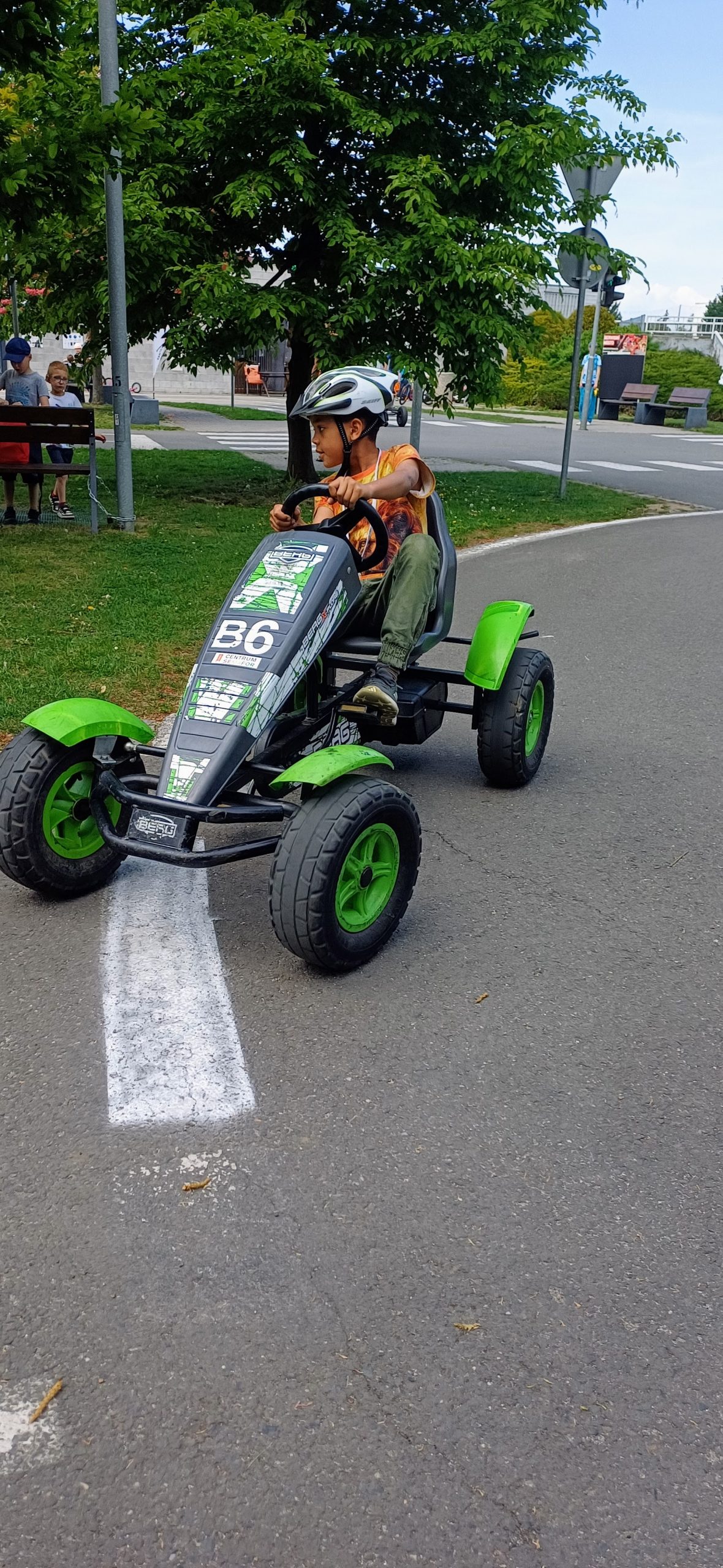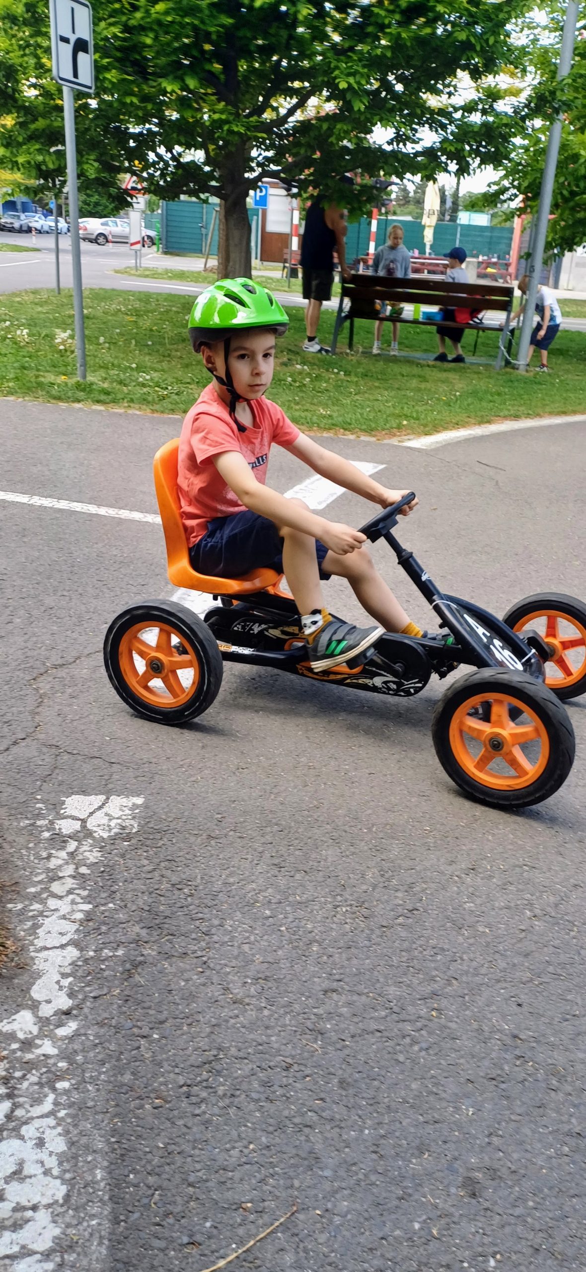 Hned poté se děti s nadšením rozběhly k zapůjčeným koloběžkám a šlapacím autíčkům. S úsměvem na tváři projížděly křižovatky, dávaly přednost v jízdě a učily se správně reagovat na dopravní značky. Bylo skvělé sledovat, s jakou zodpovědností se k plnění úkolů postavily.