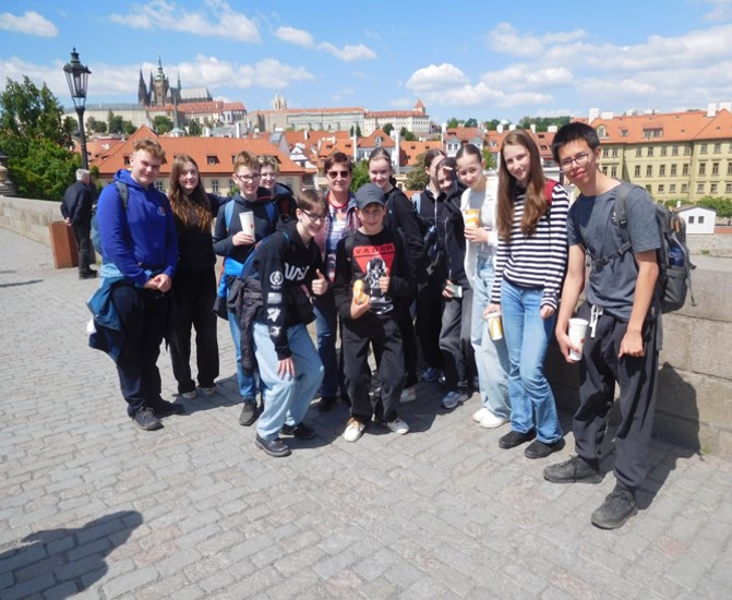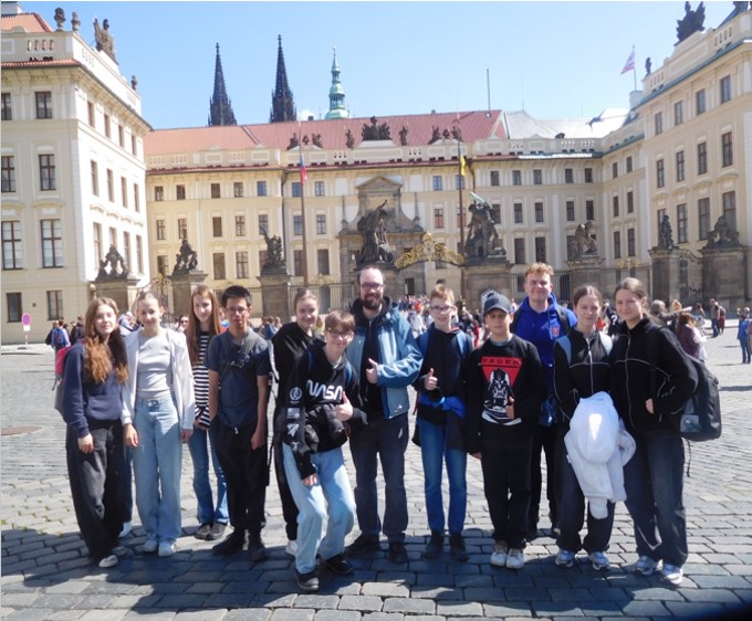 Podruhé už to vyšlo! První termín – září 2024 – jsme museli kvůli tehdejším povodním zrušit. O to více jsme si to teď užili. 9. květen 2025. Byl nádherný slunečný den, nálada výborná, co víc si přát! Bylo nás dvanáct (deset z 8. A a dva šesťáci, doprovod tvořili p. uč. Radka Kašparová a p.uč. Miroslav Mlynář). Nohy nás pořádně bolely, vždyť jsme nachodili téměř 14 km. Z Václavského náměstí jsme metrem vyjeli na Pražský hrad, který jsme si celý prohlédli, potom jsem prošli celou královskou cestu od Nerudovy ulice, přes Malostranské náměstí s chrámem sv. Mikuláše, nezapomněli jsme ani na Pražské jezulátko, prodírali se mezi množstvím turistů na Karlově mostě, zastavili se na Staroměstském náměstí, pokračovali kolem Karlovy univerzity až k Prašné bráně. Všichni jsme se shodli, že jsme si tento výlet opravdu užili!