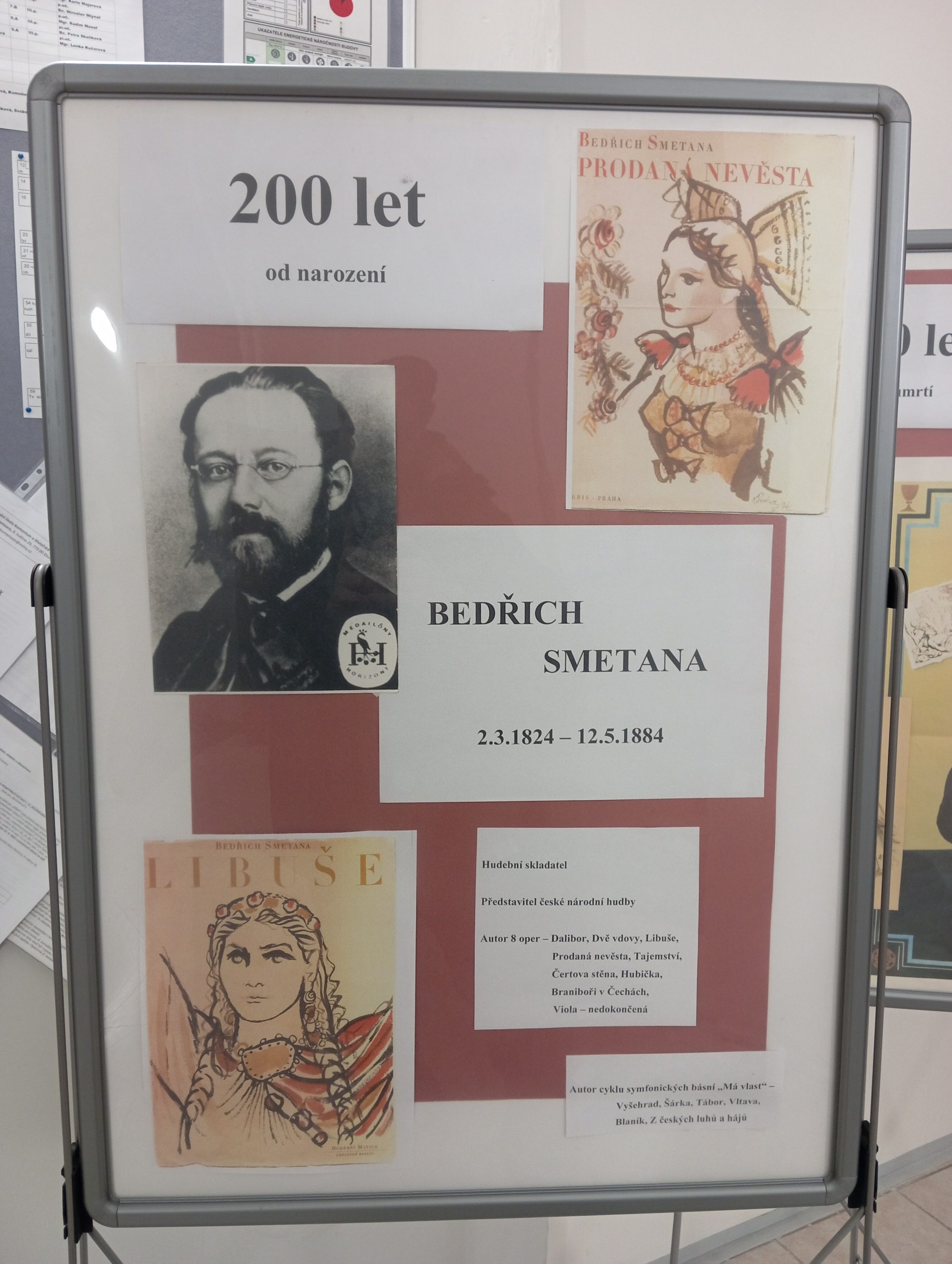 V únoru připravila Mgr. Radomila Kašparová pro naše žáky unikátní výstavu. Ta se týkala připomínky výročí spojených s významnými českými osobnostmi. Zmiňme si například Jana Žižku z Trocnova (letos 600 let od úmrtí), Bedřicha Smetanu (200 let od narození), Jiřího Wolkera (100 let od úmrtí) nebo Eduarda Petišku (100 let od narození).