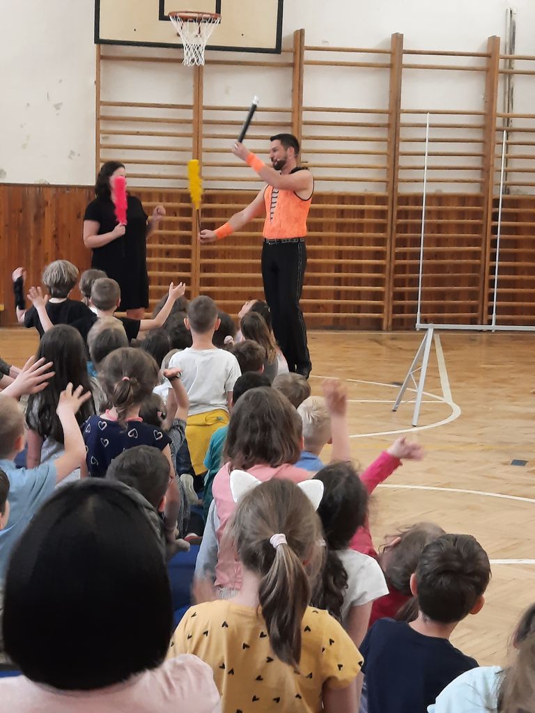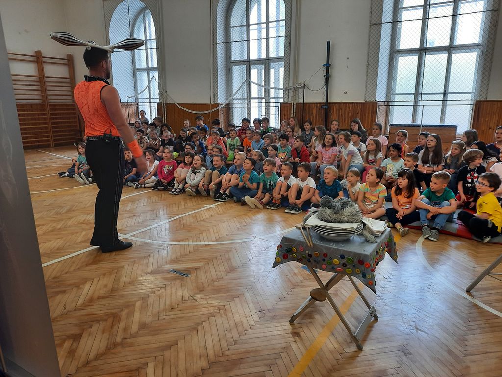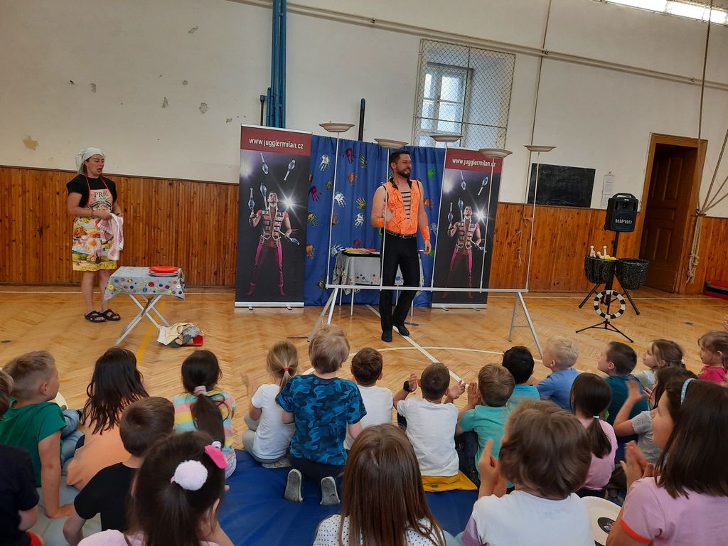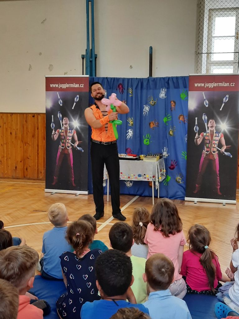 V tělocvičně nás 13. 6. již po třetí navštívil žonglér Milan Ošmera. Jeho vystoupení bylo opět velmi zábavné a originální, nechyběla v něm kouzla a ruční manipulace. Děti byly také zapojeny do programu a po celou dobu se výborně bavily.